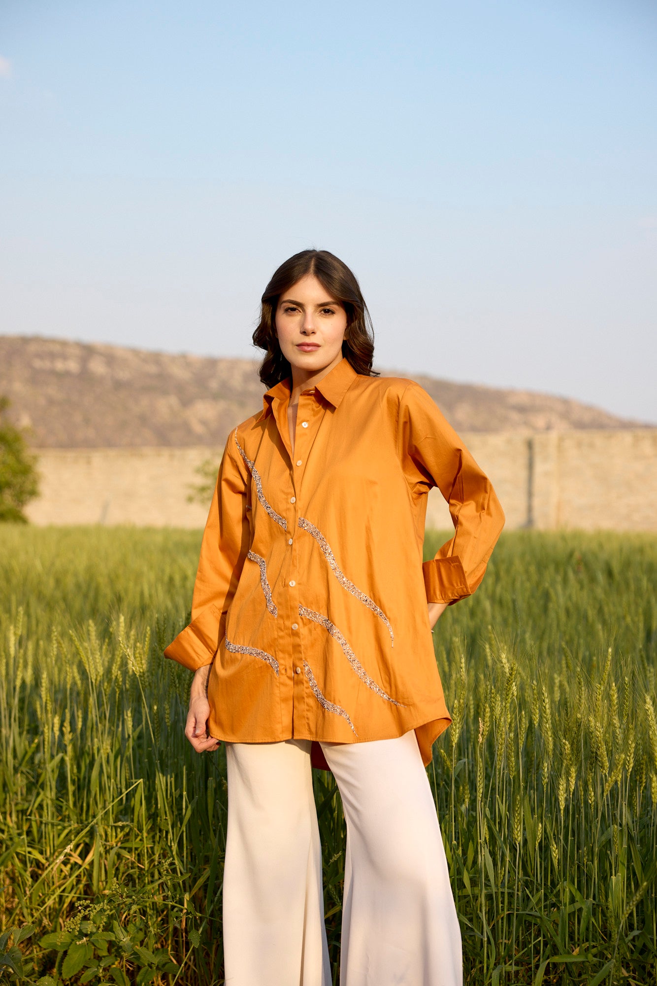 MUSTARD SHIRT WITH ABSTRACT BEADWORK