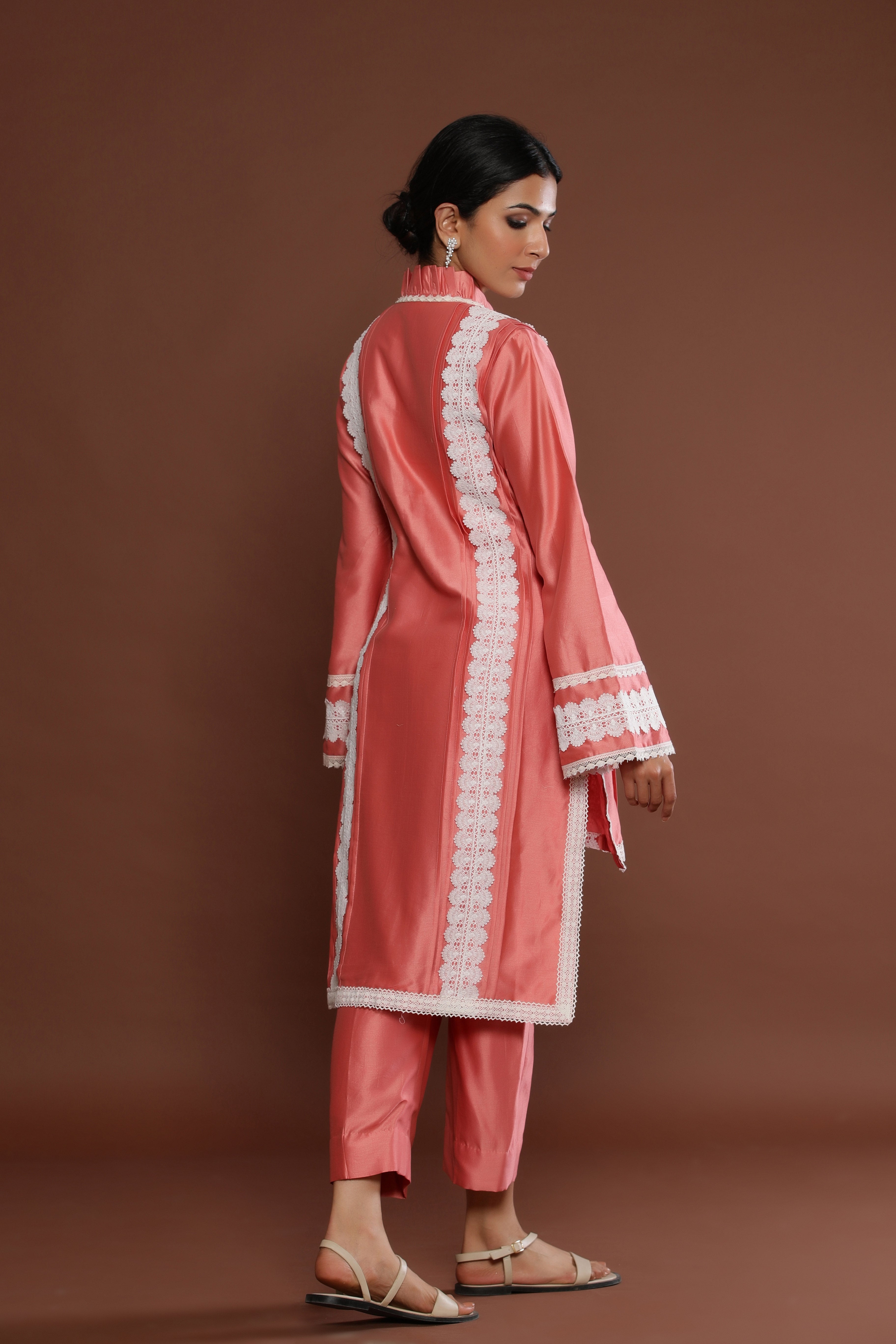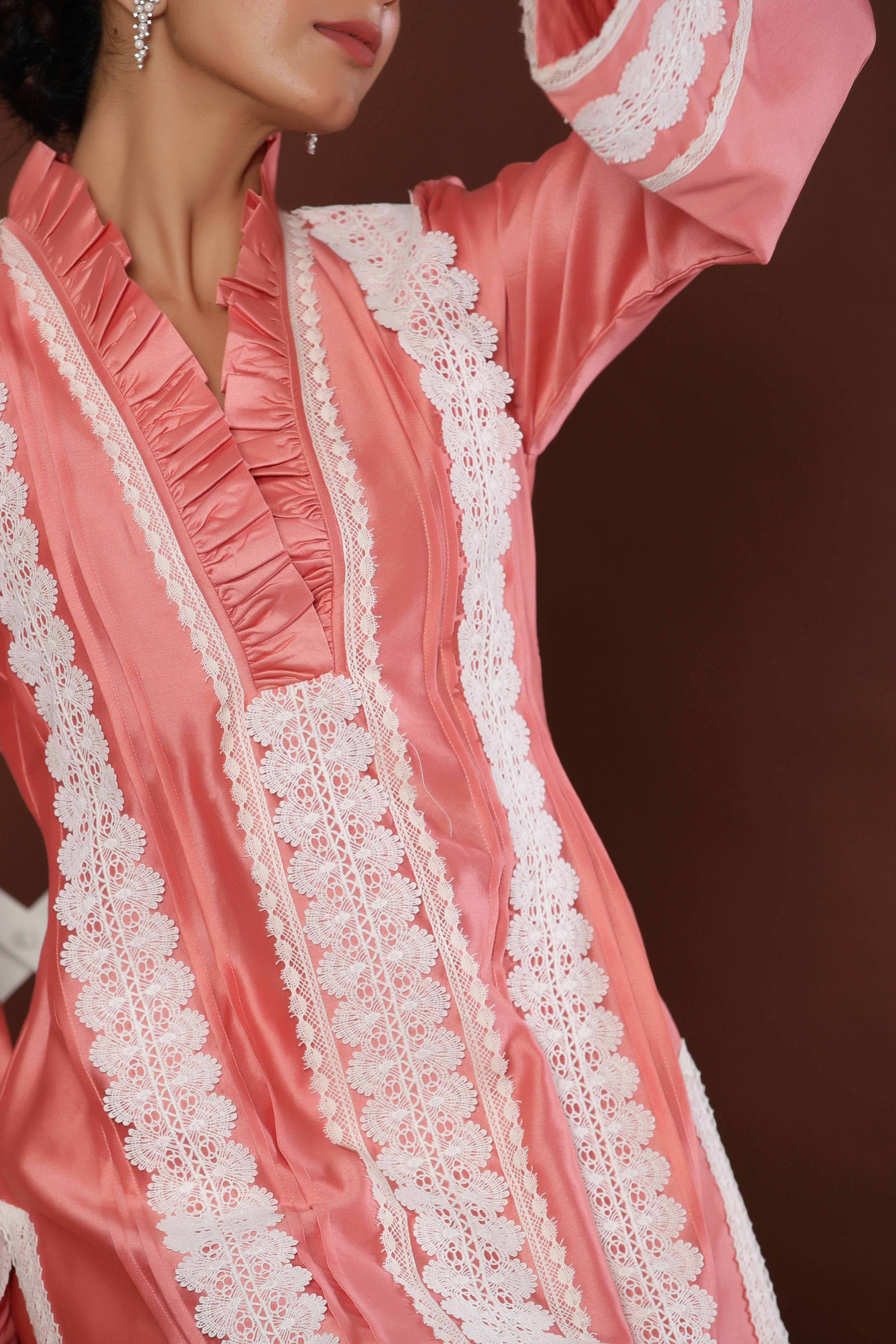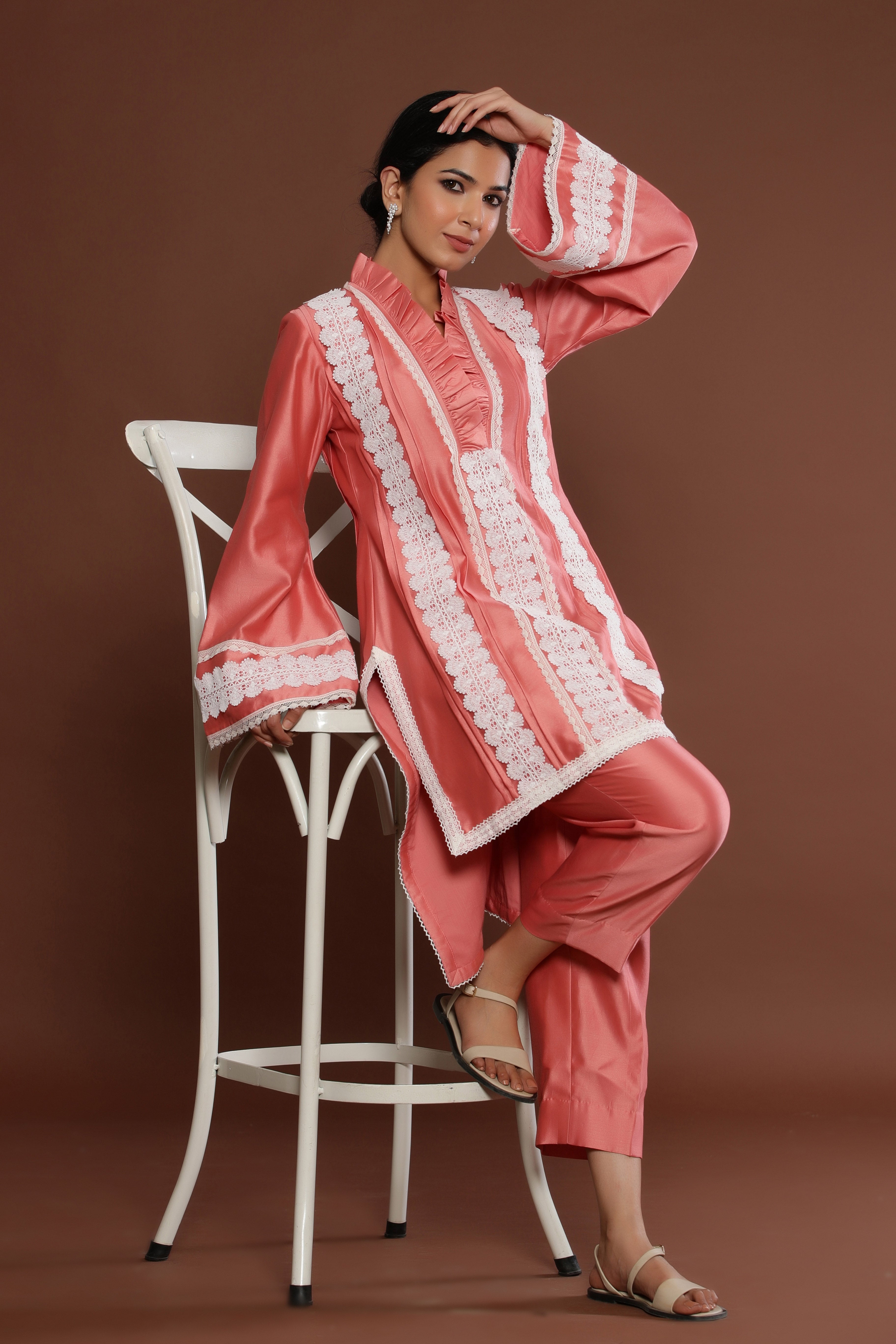 KURTA WITH WHITE FLORAL LACE DETAIL