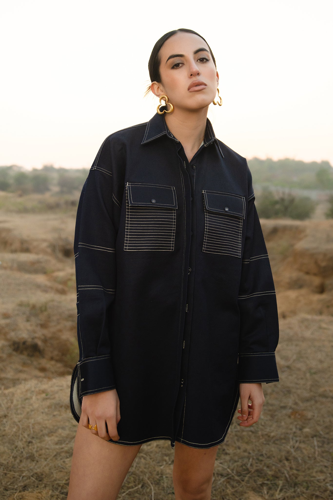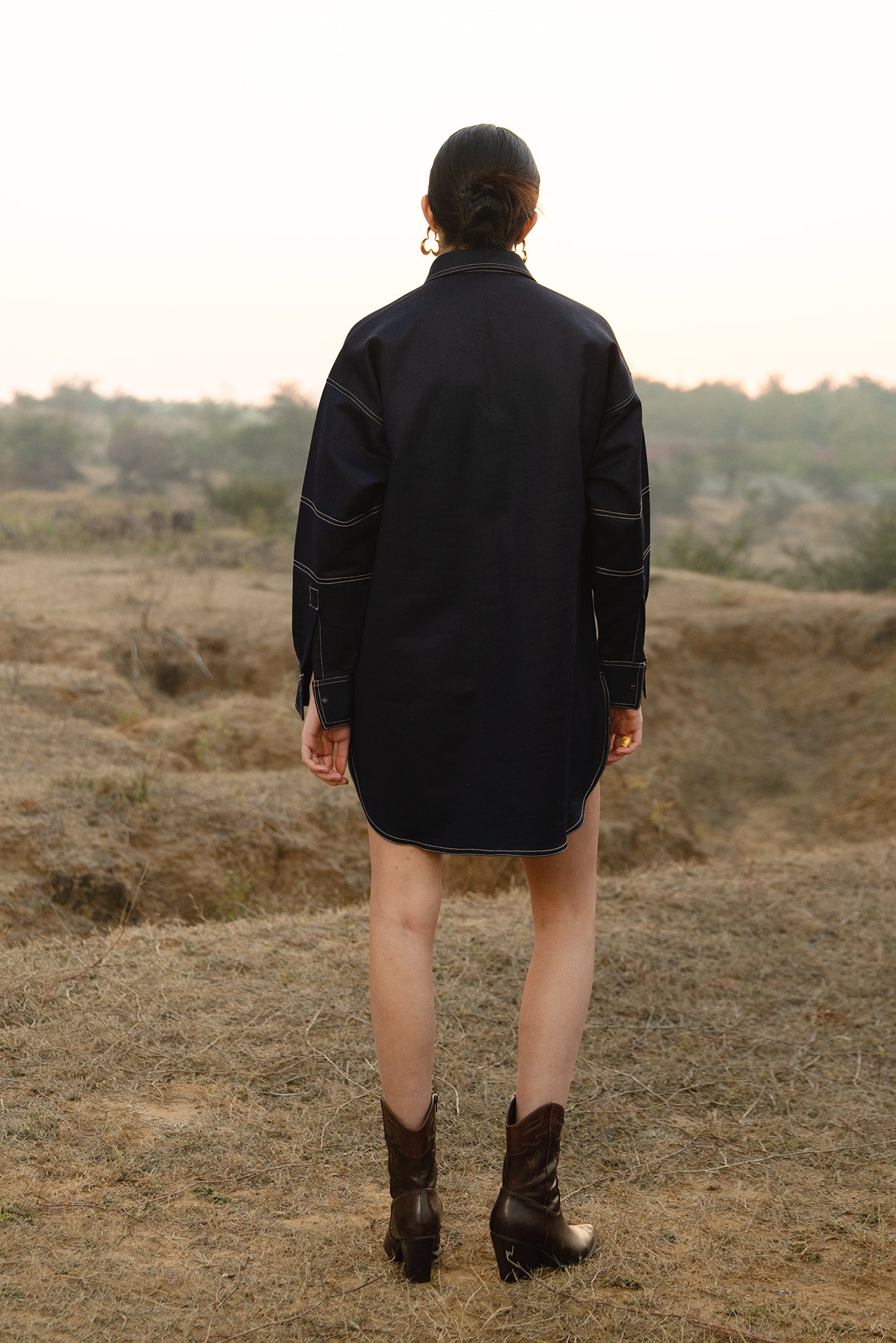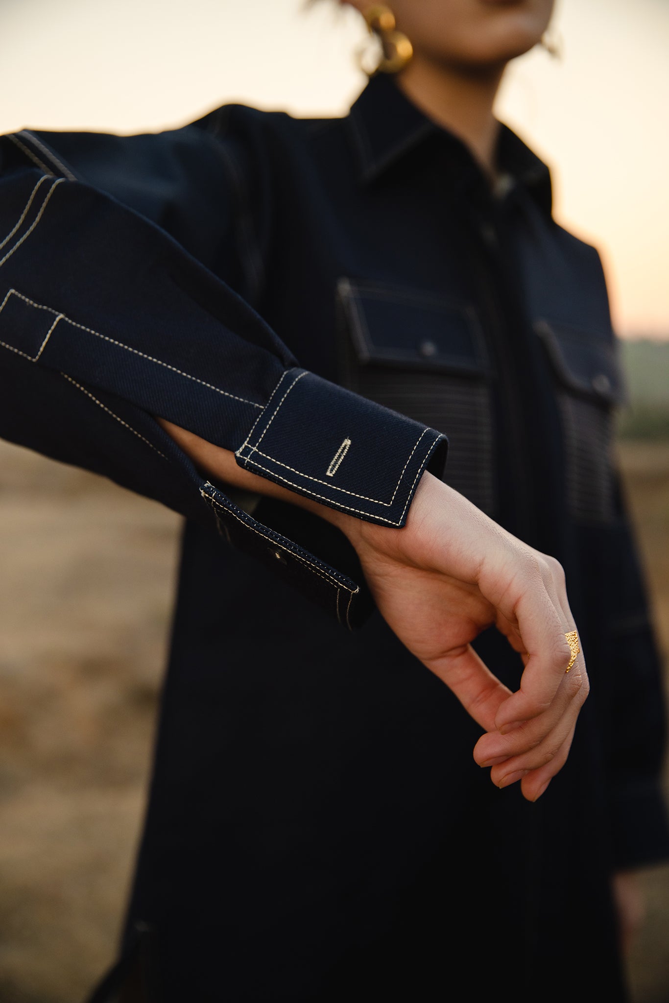 DENIM SHIRT DRESS ( TOP STITCH DETAILING)