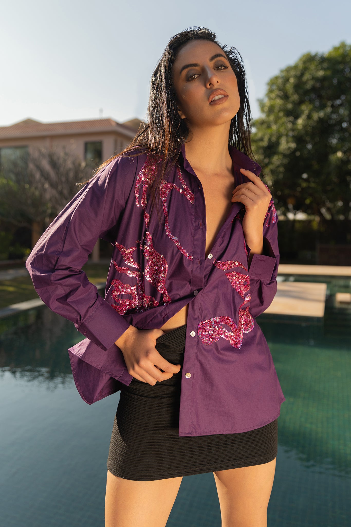 PURPLE SHIRT WITH TONE ON TONE EMBROIDERY