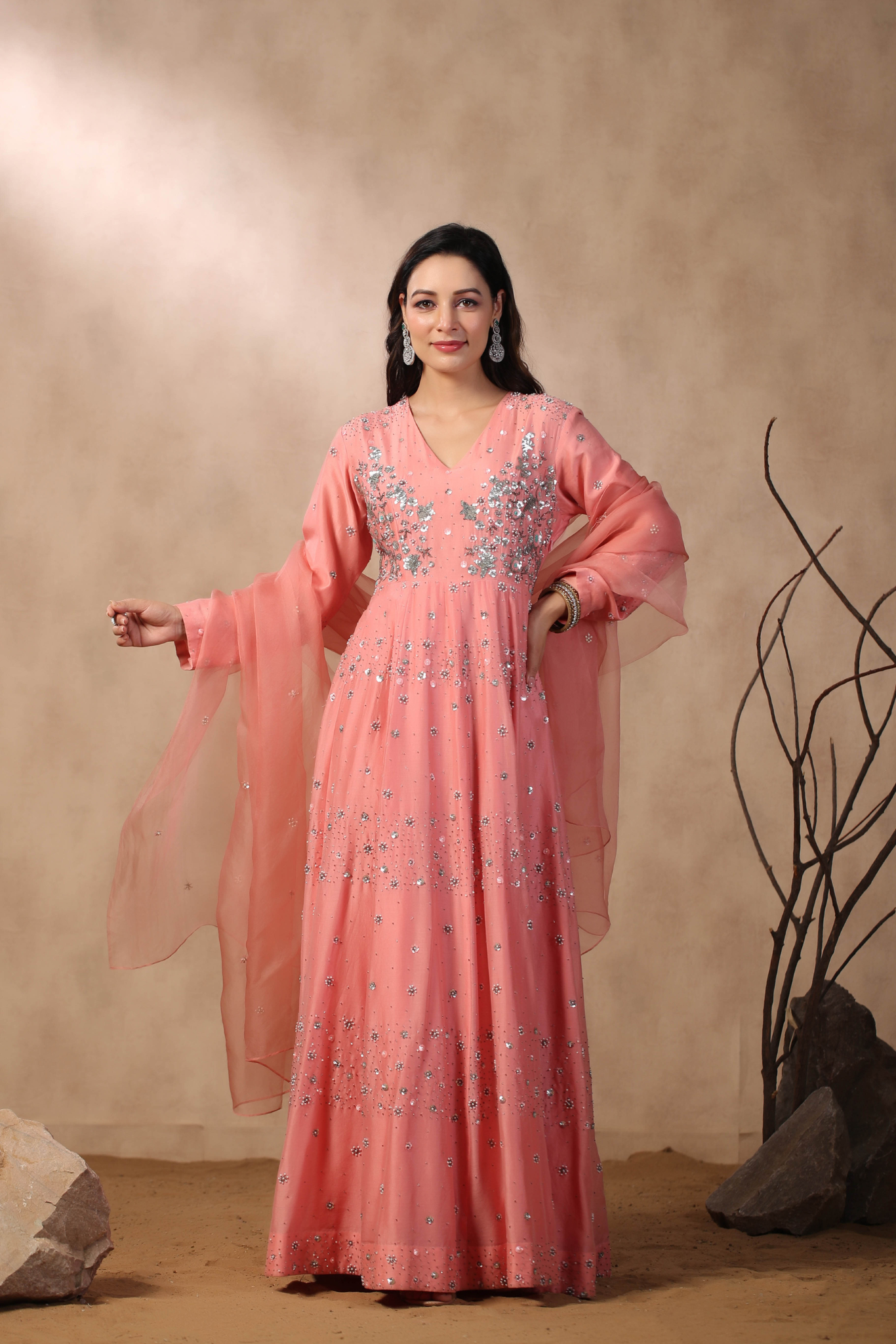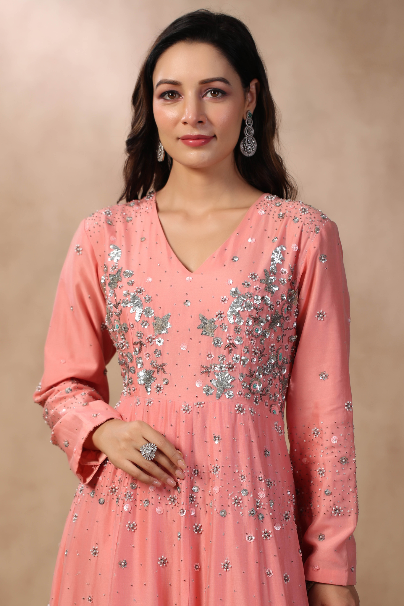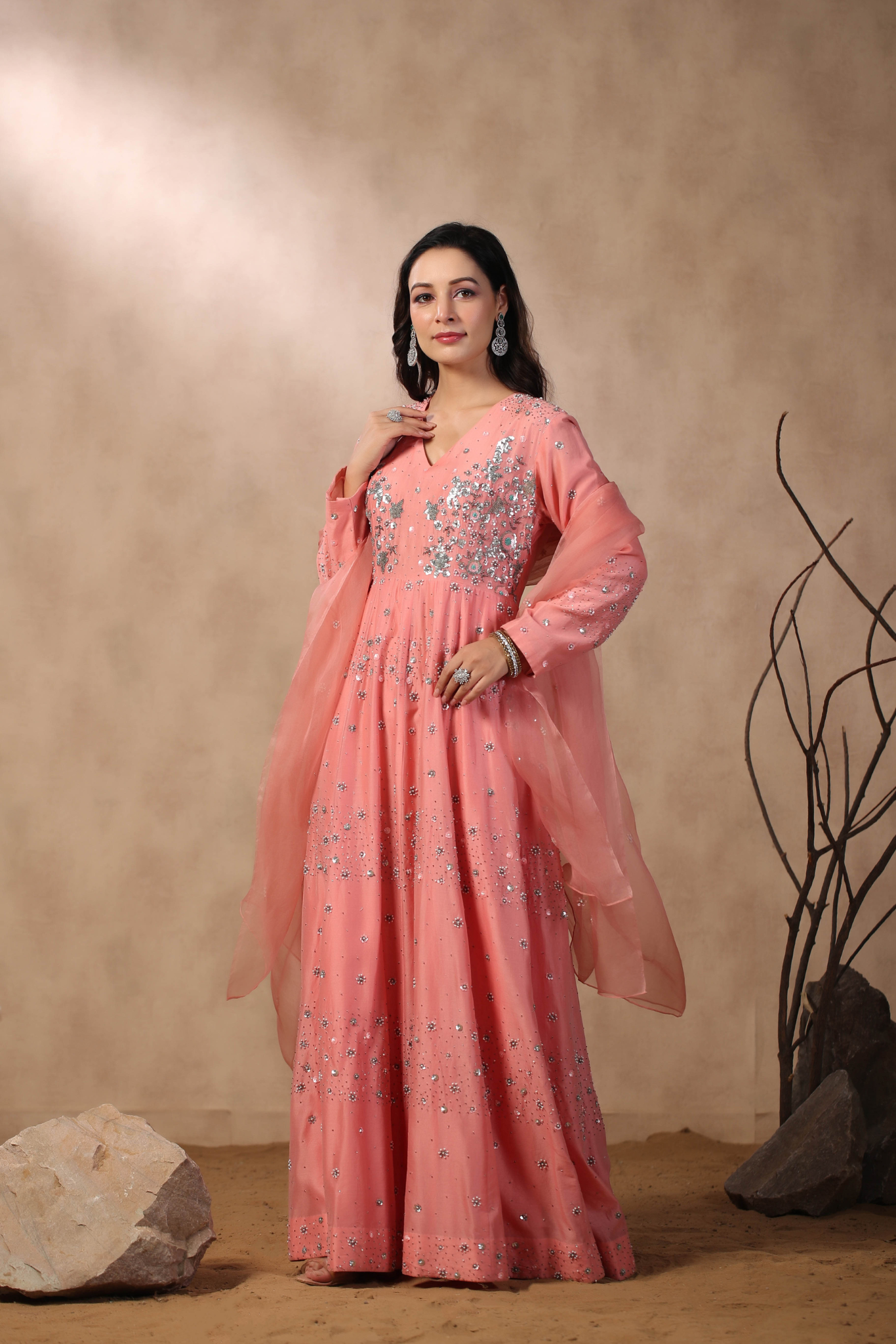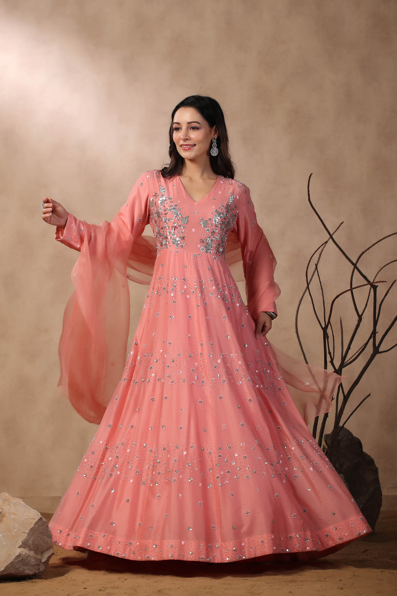 PINK ANARKALI WITH HAND EMBROIDERED ON BODICE...