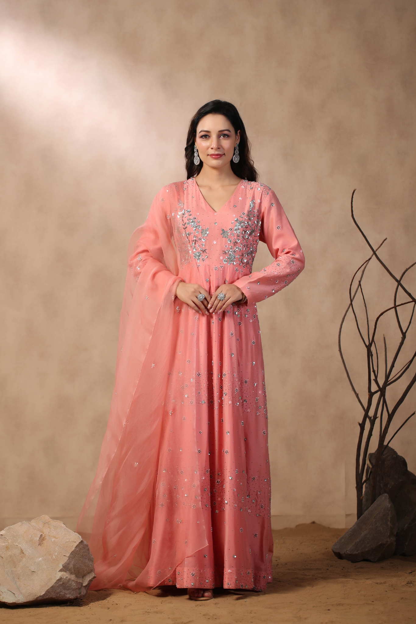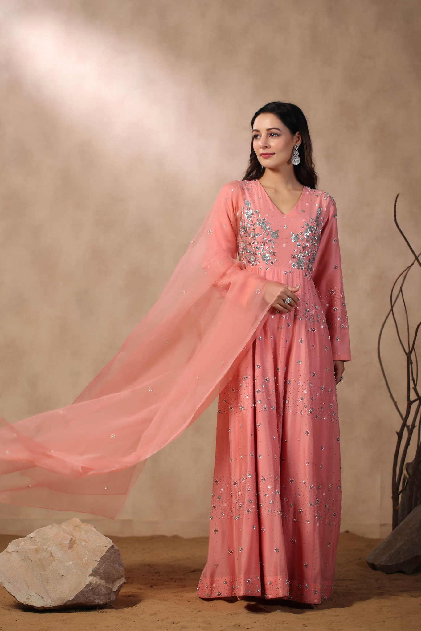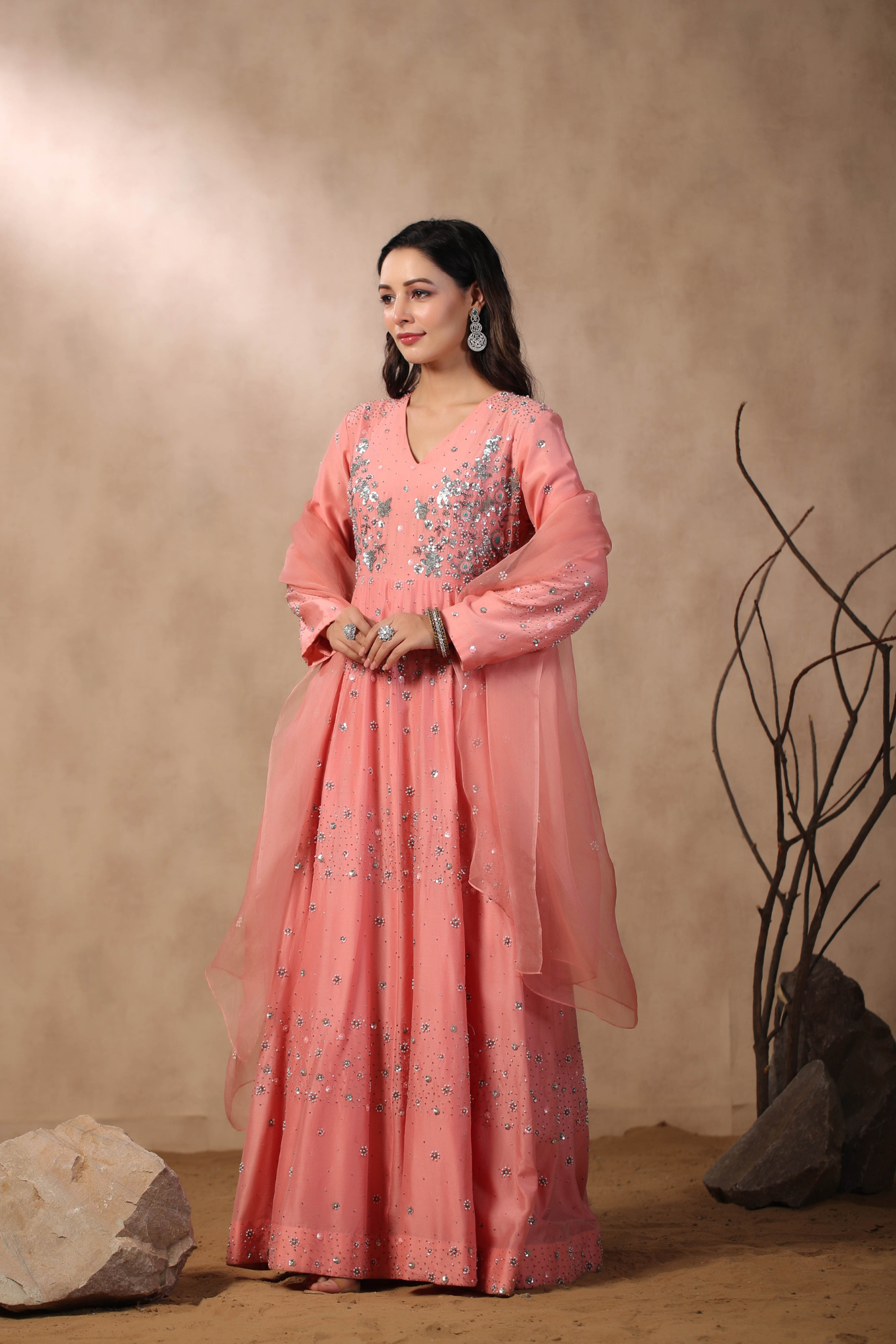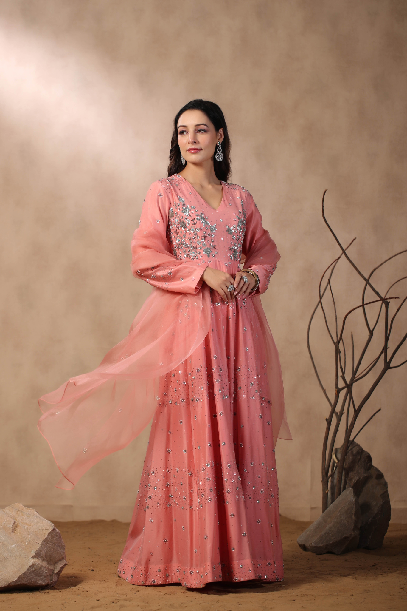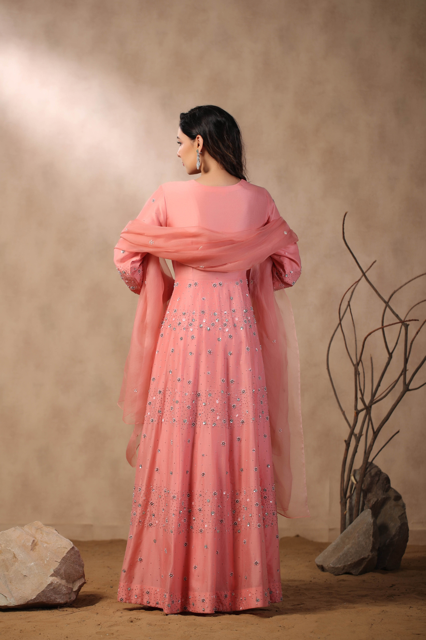 PINK ANARKALI WITH HAND EMBROIDERED ON BODICE...