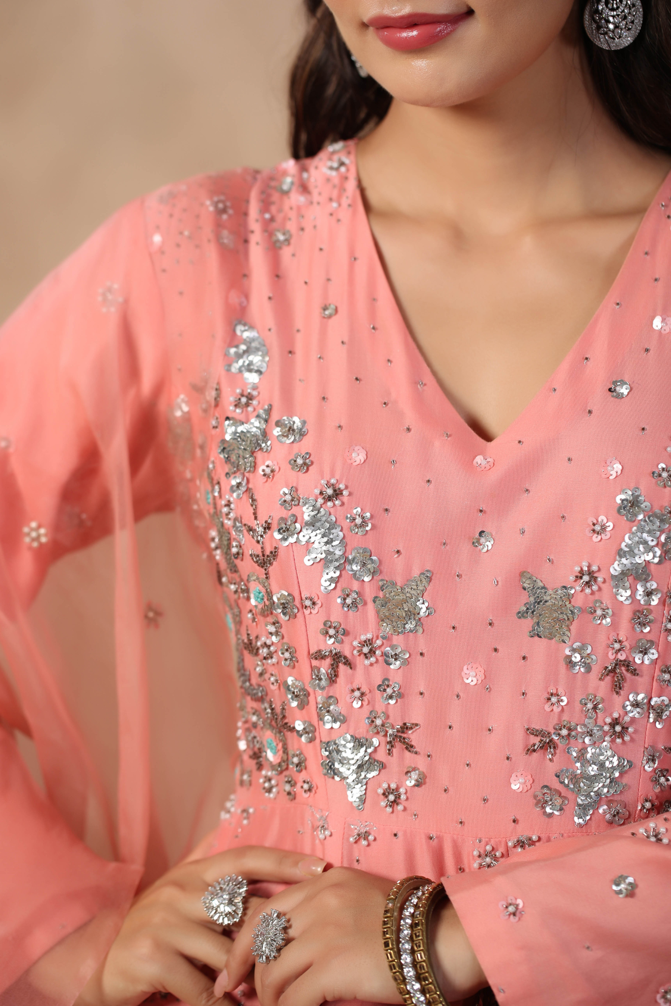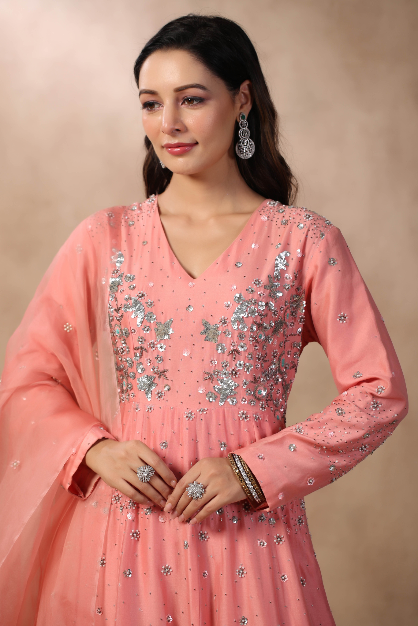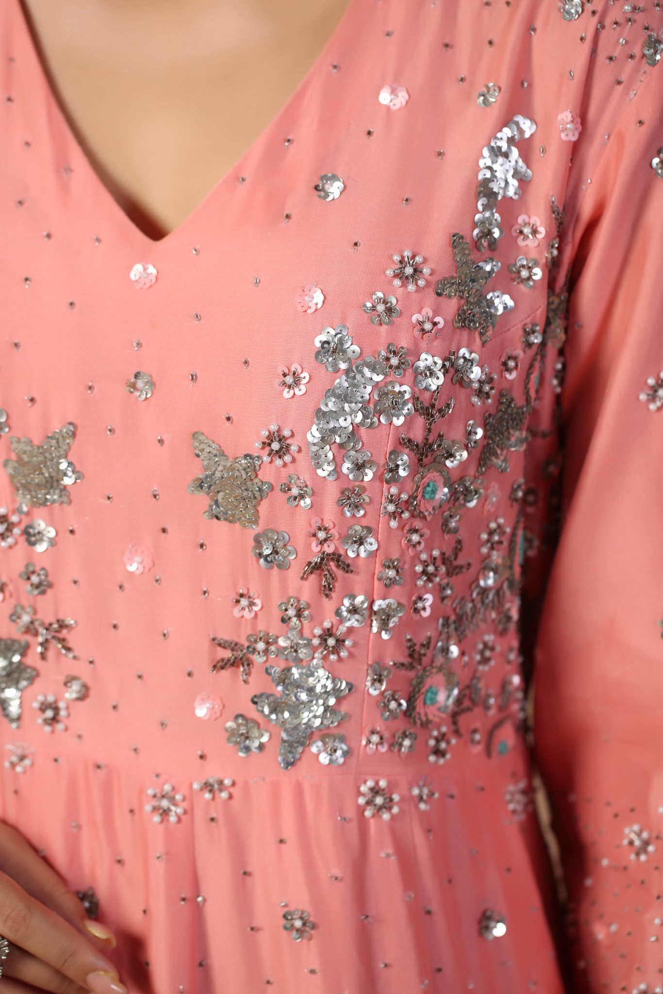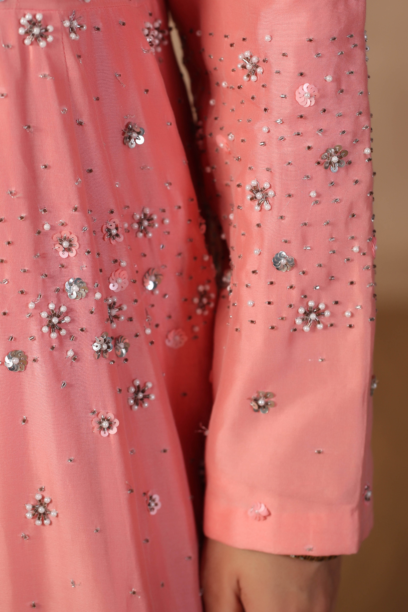 PINK ANARKALI WITH HAND EMBROIDERED ON BODICE...