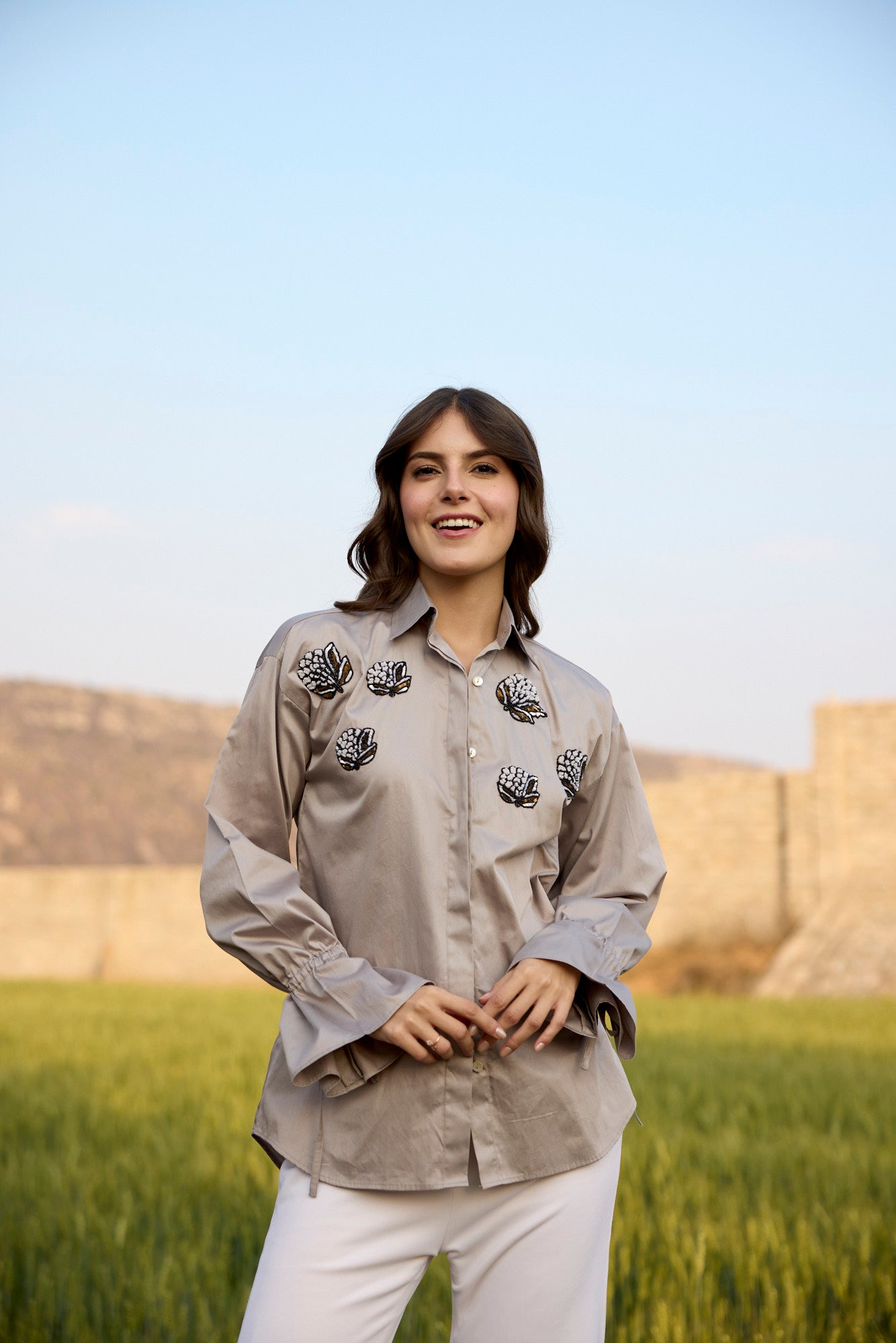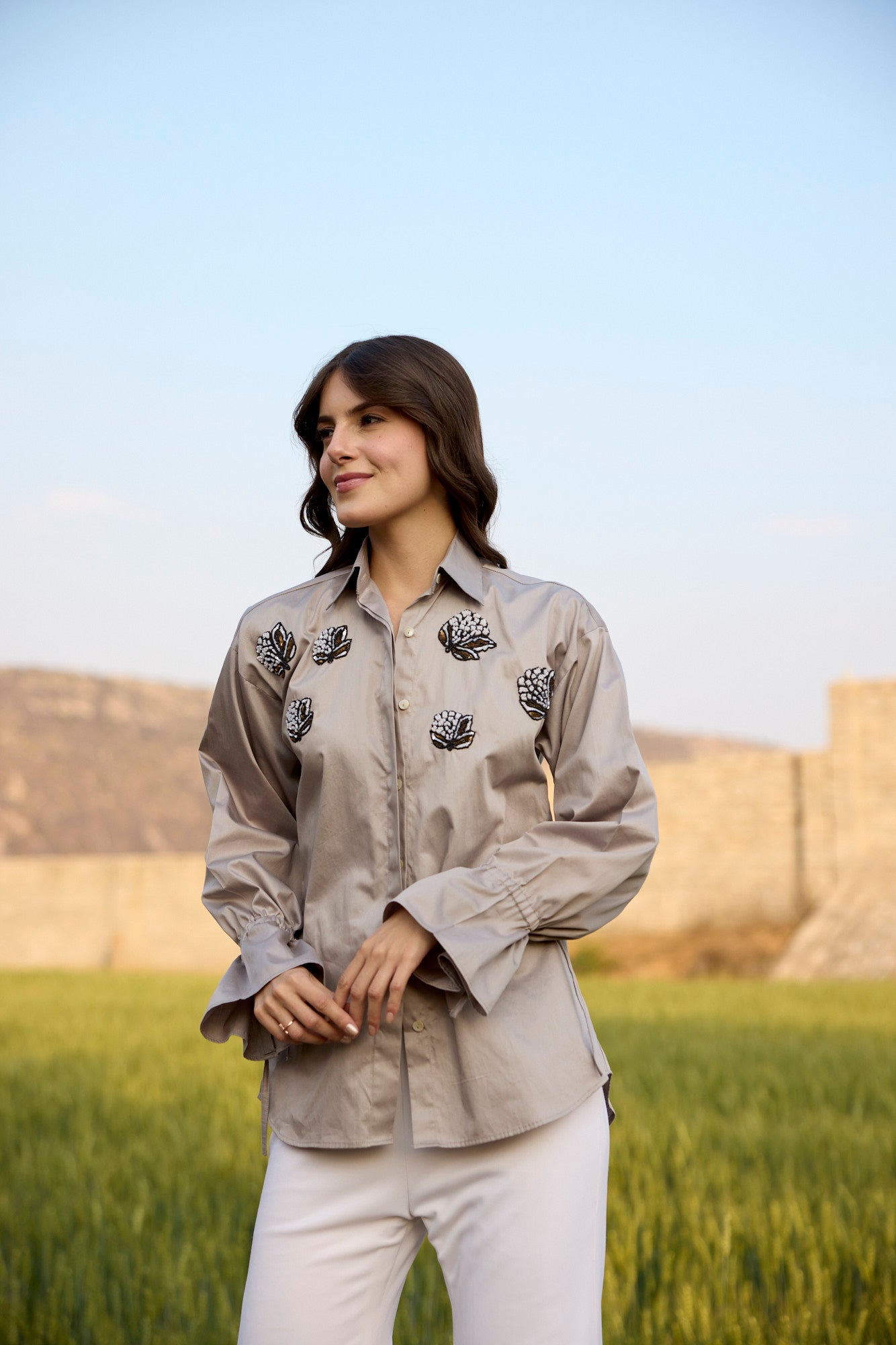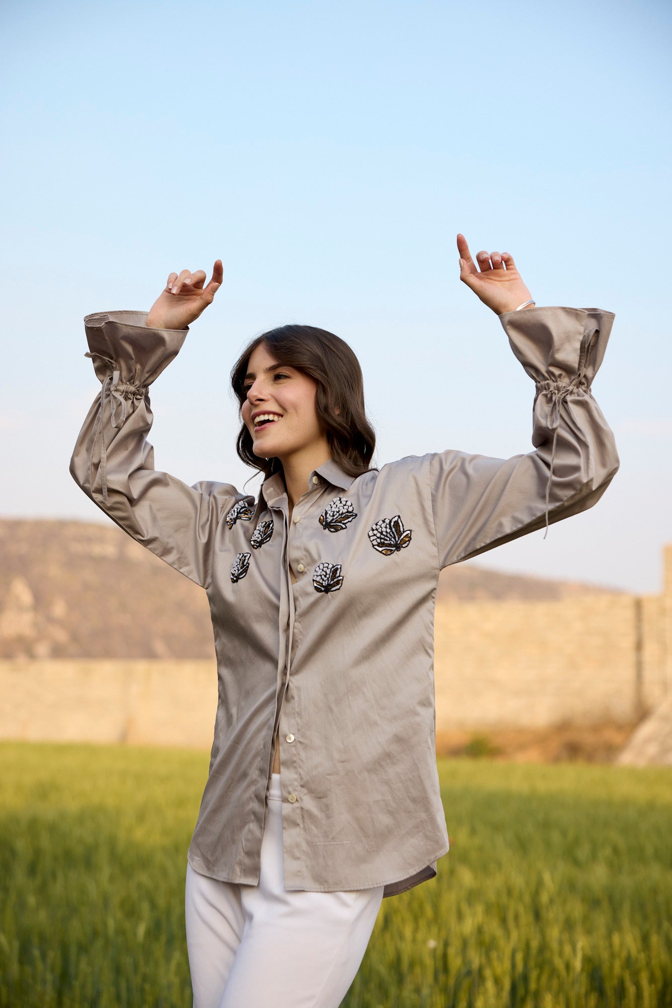 FOSSIL GREY SAND COLOUR SHIRT WITH SEQUENCE...