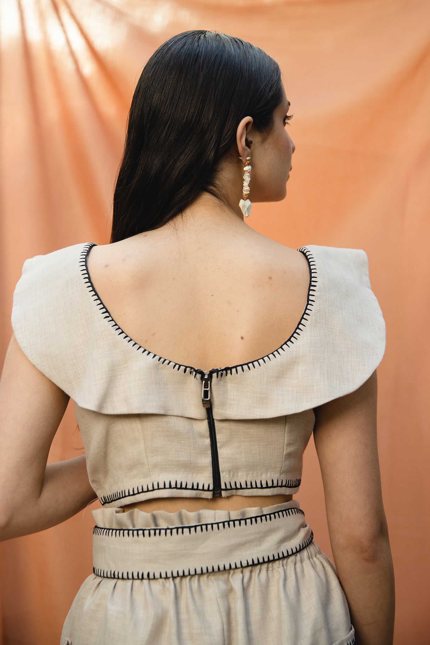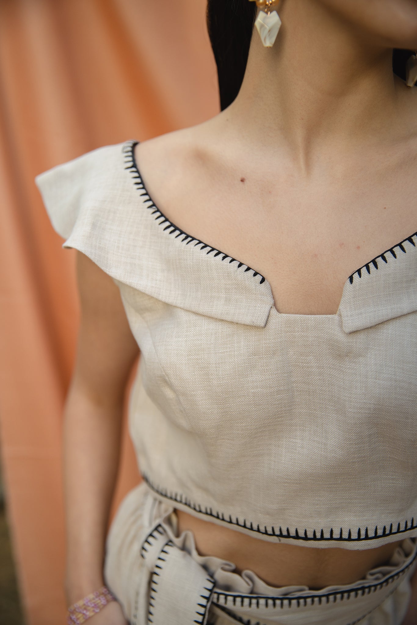 OFF SHOULDER LINEN TOP PAIRED WITH SHORTS...