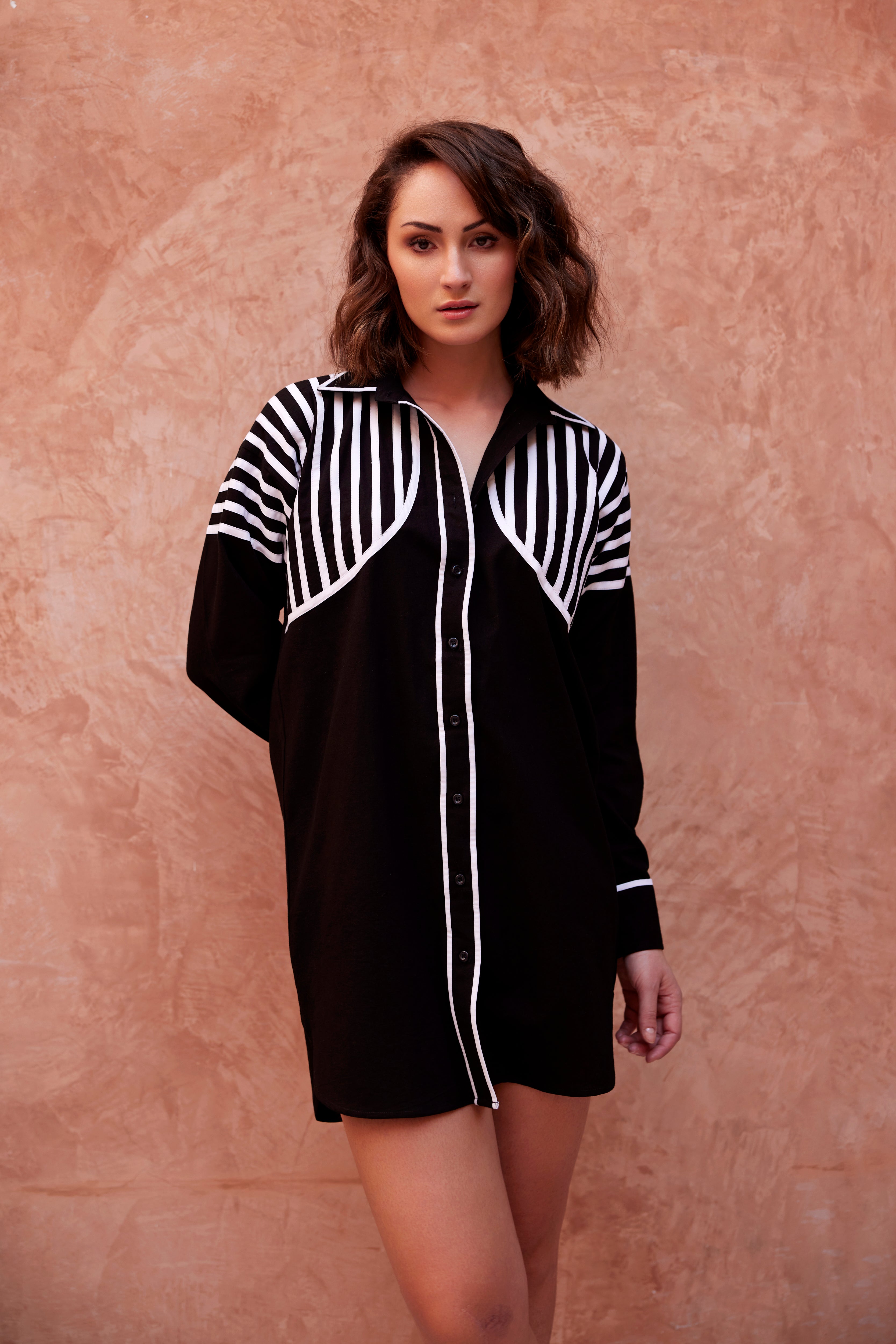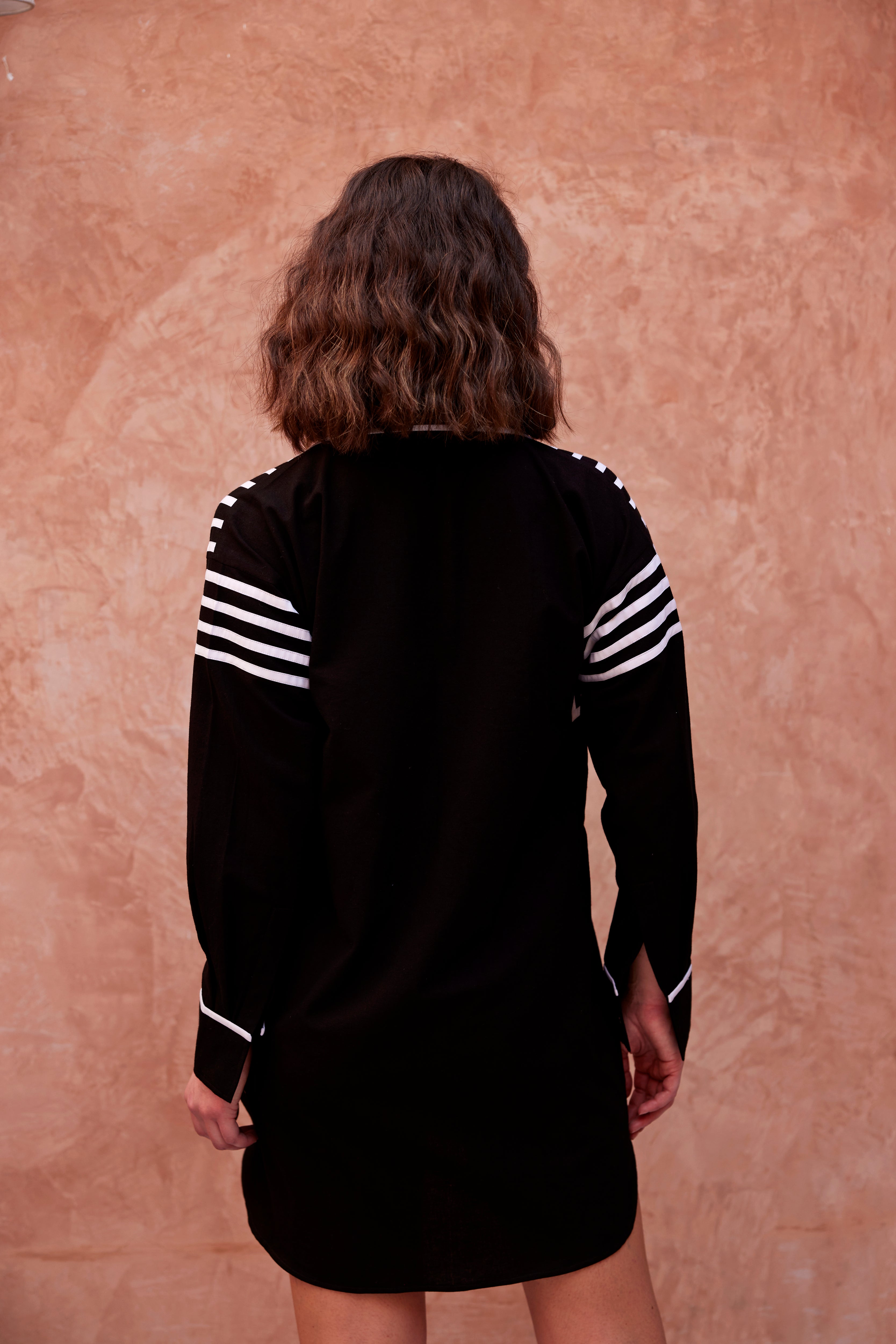 BLACK LONG SHIRT WITH WHITE STRIPES