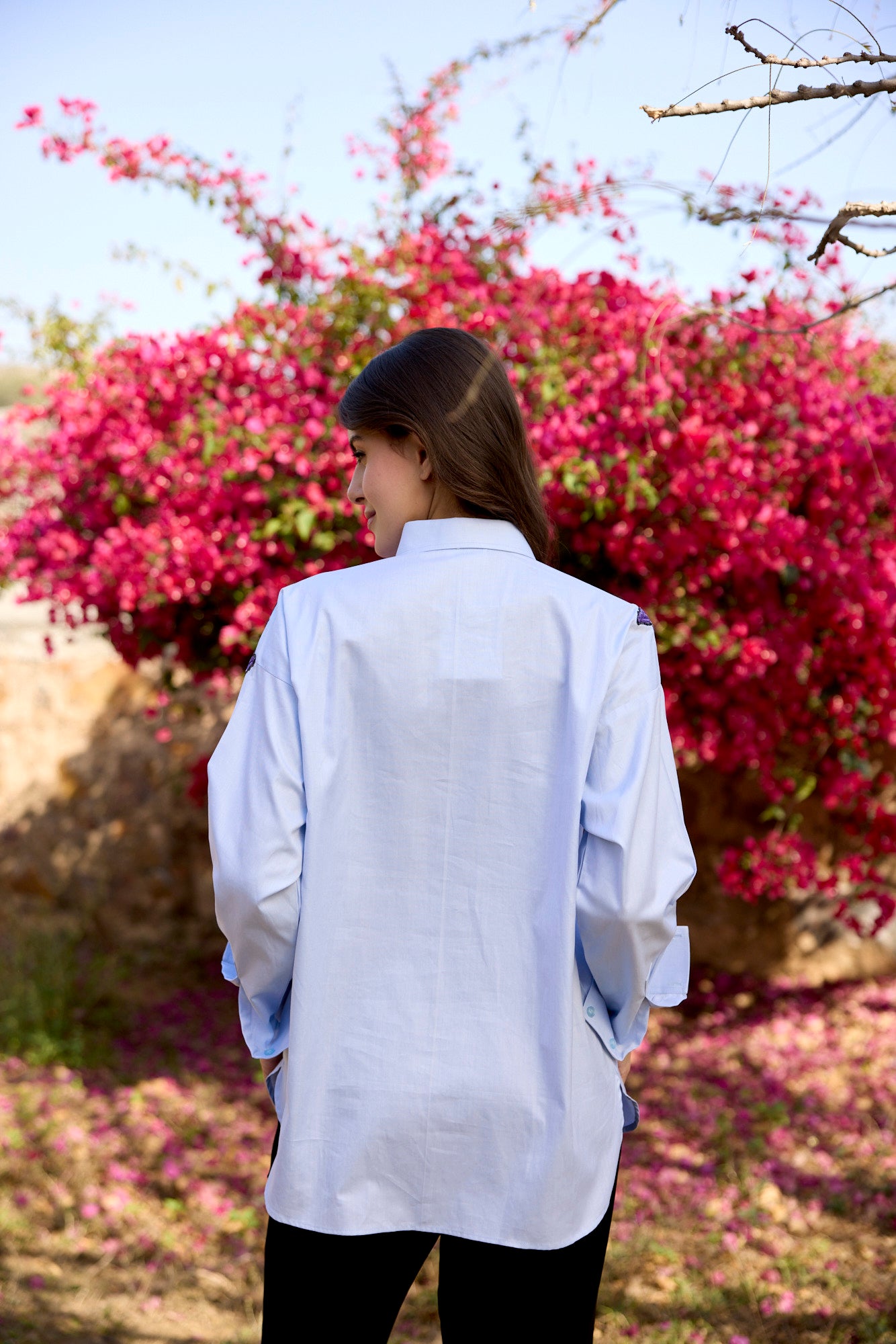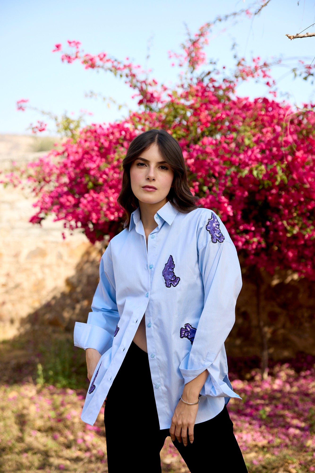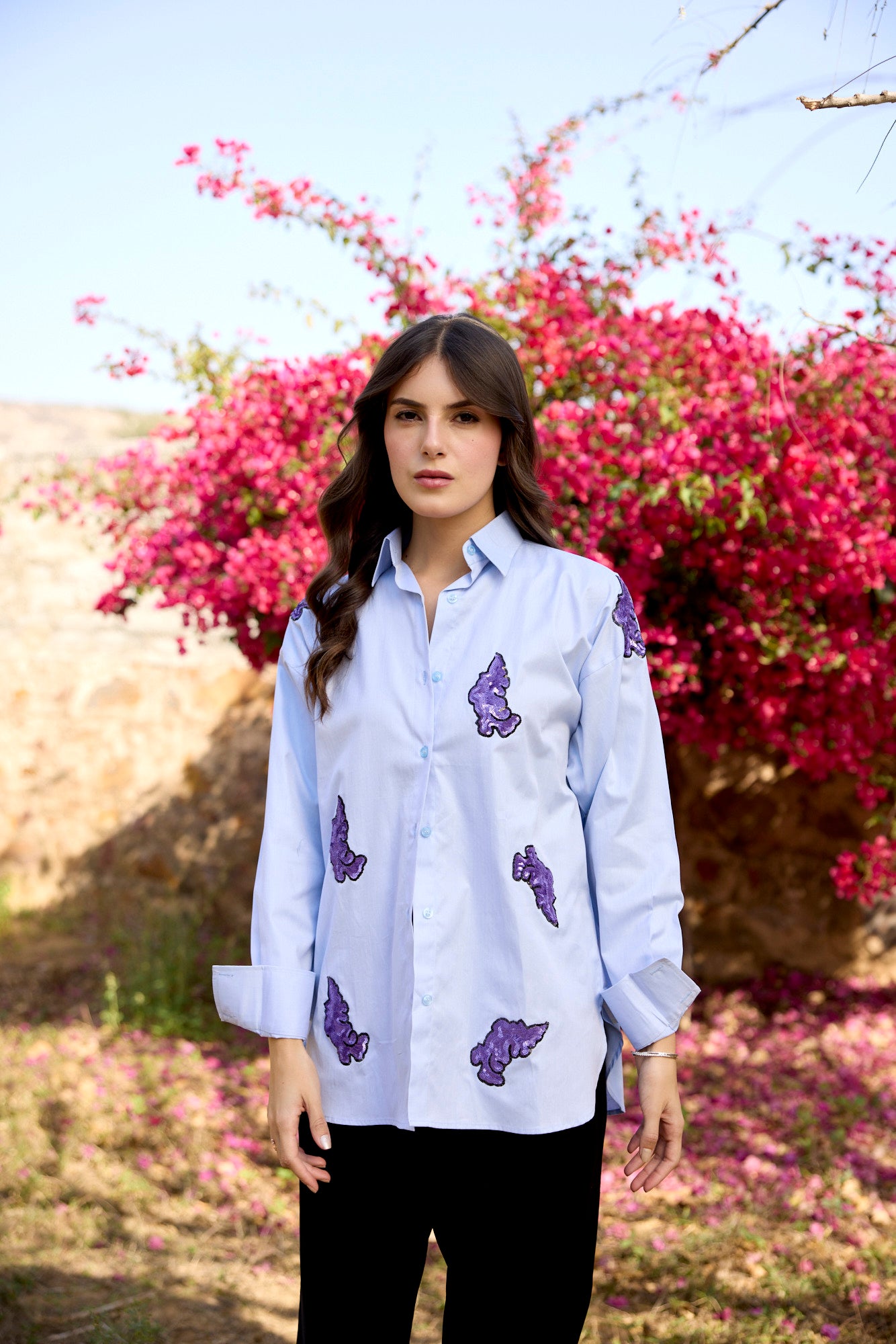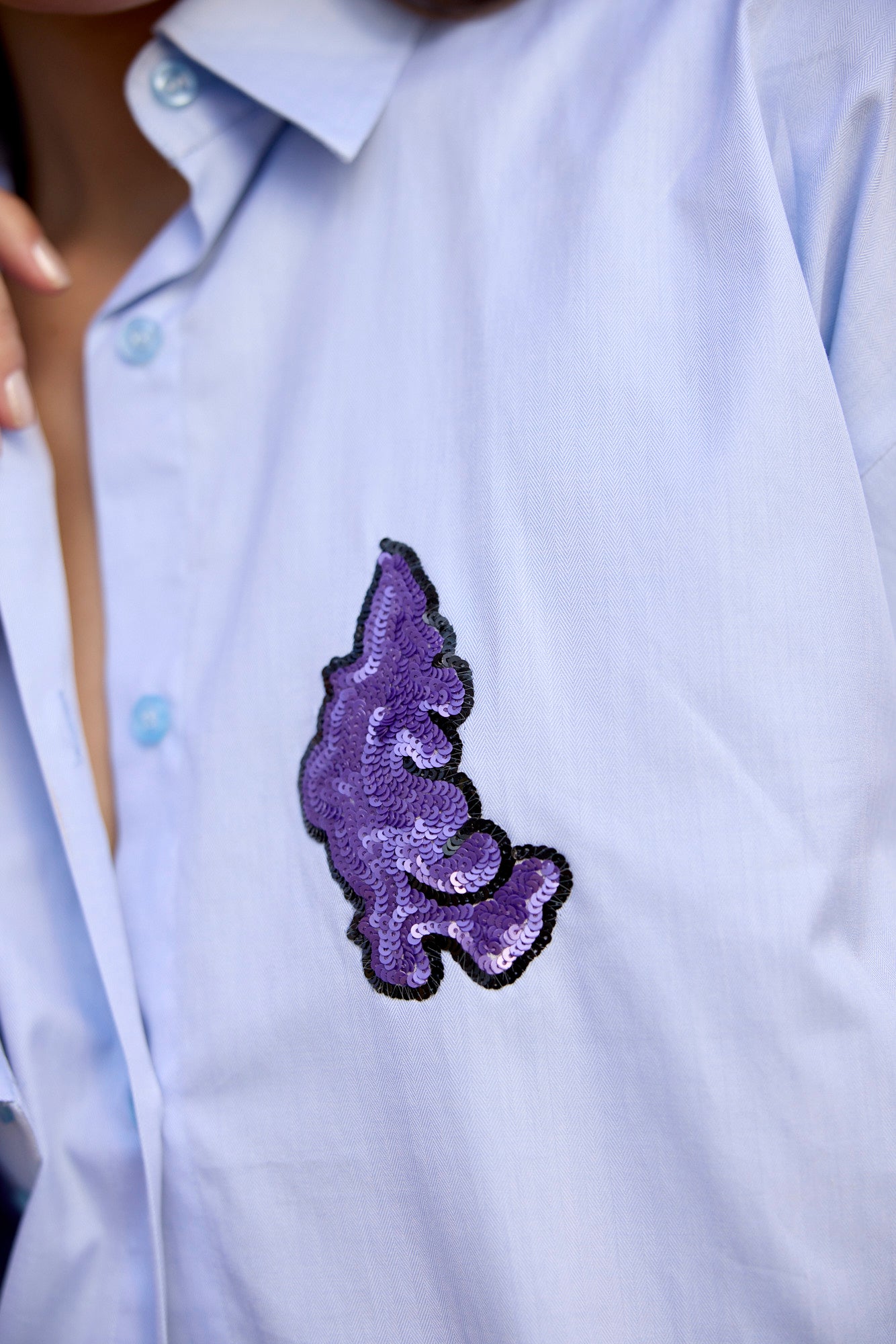 LIGHT BLUE SHIRT WITH PURPLE COLOUR CLOUD EMBROIDERY PATCH