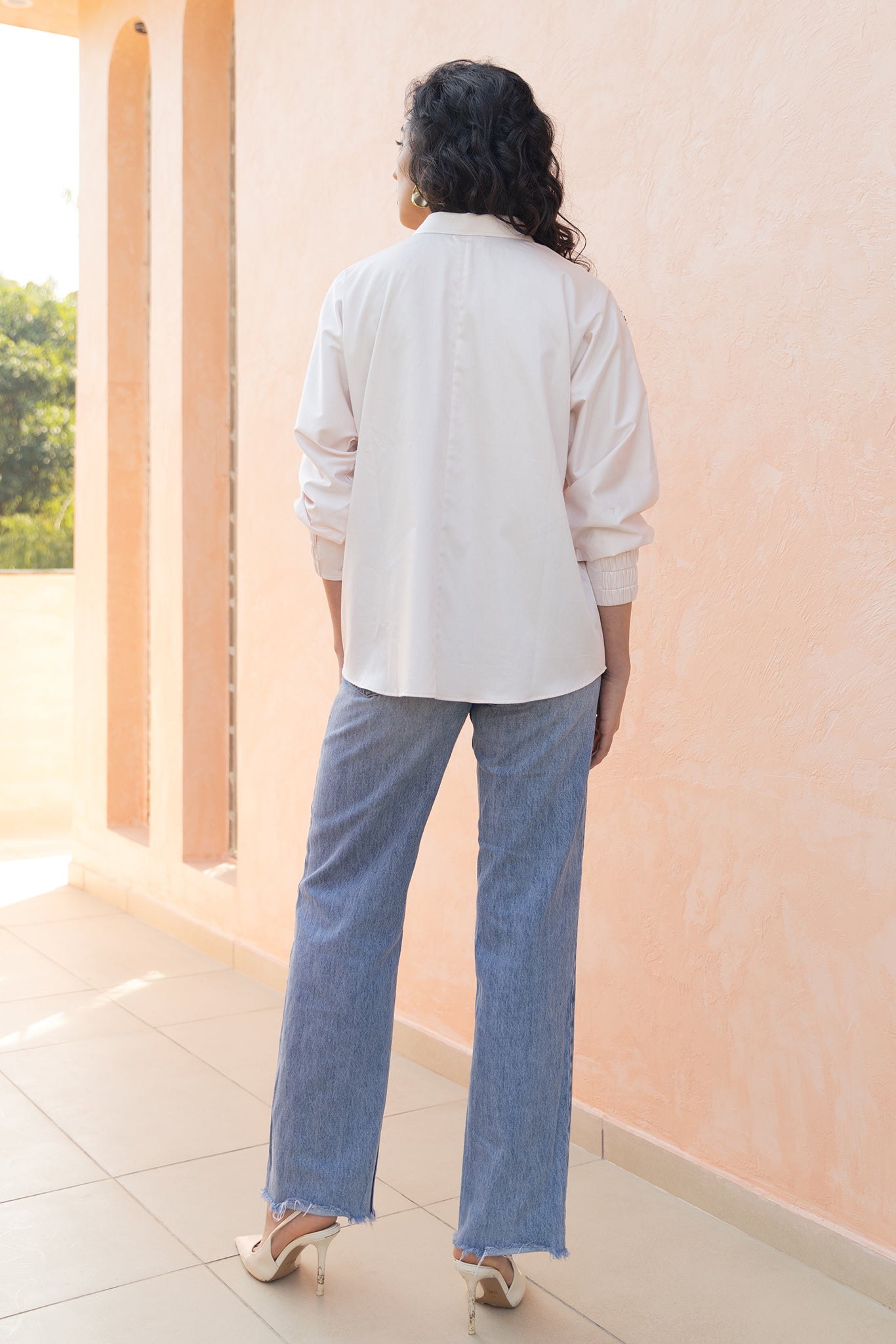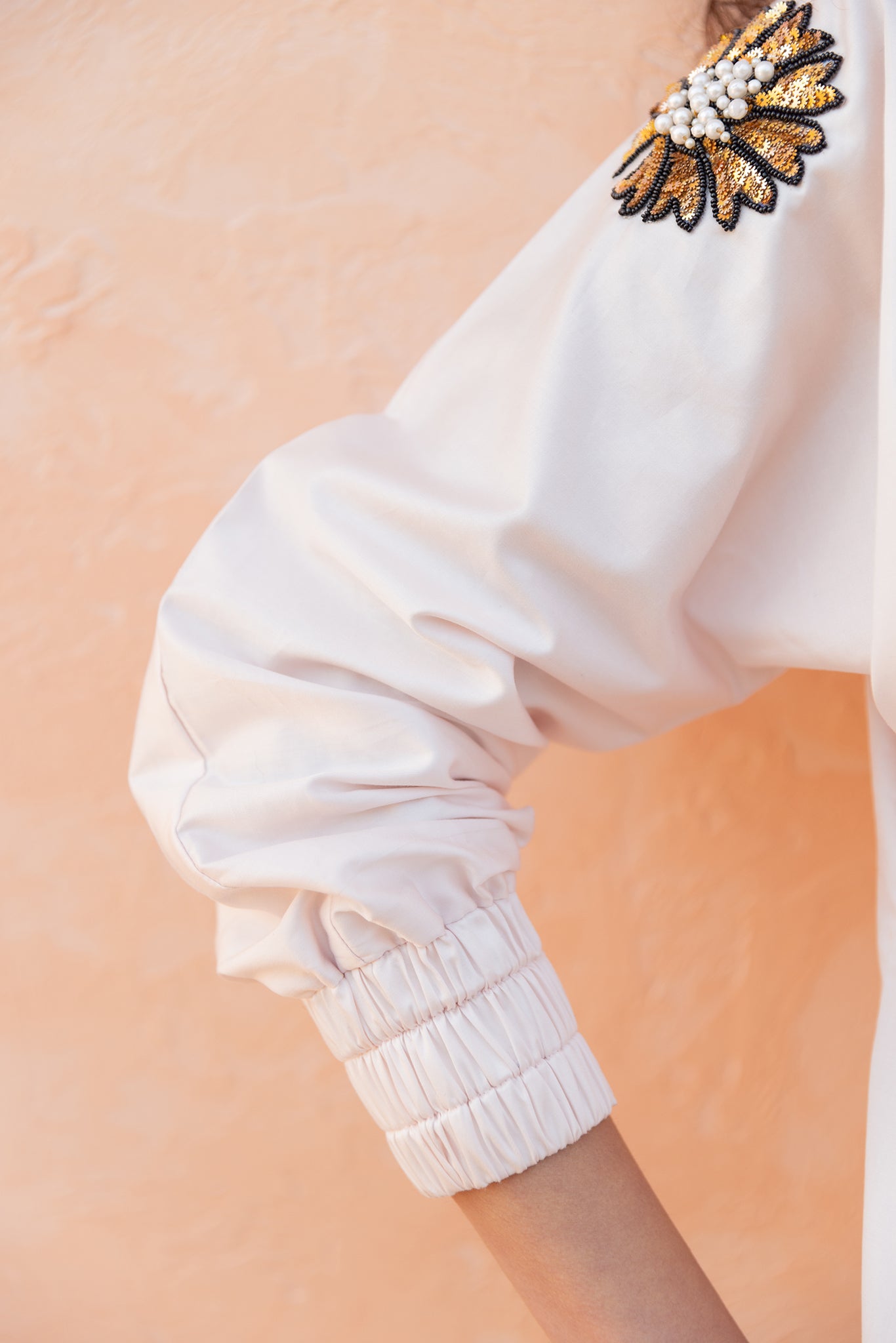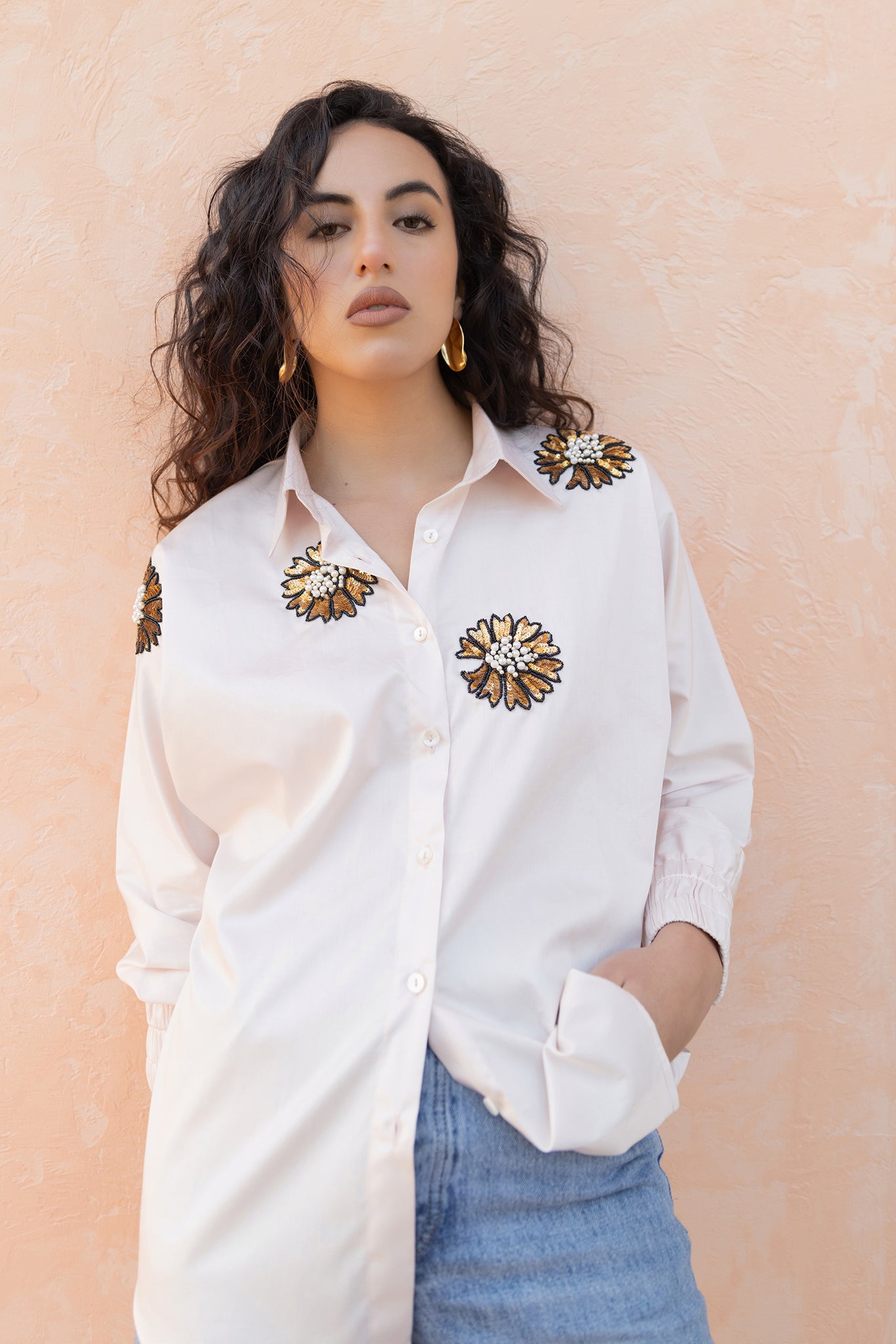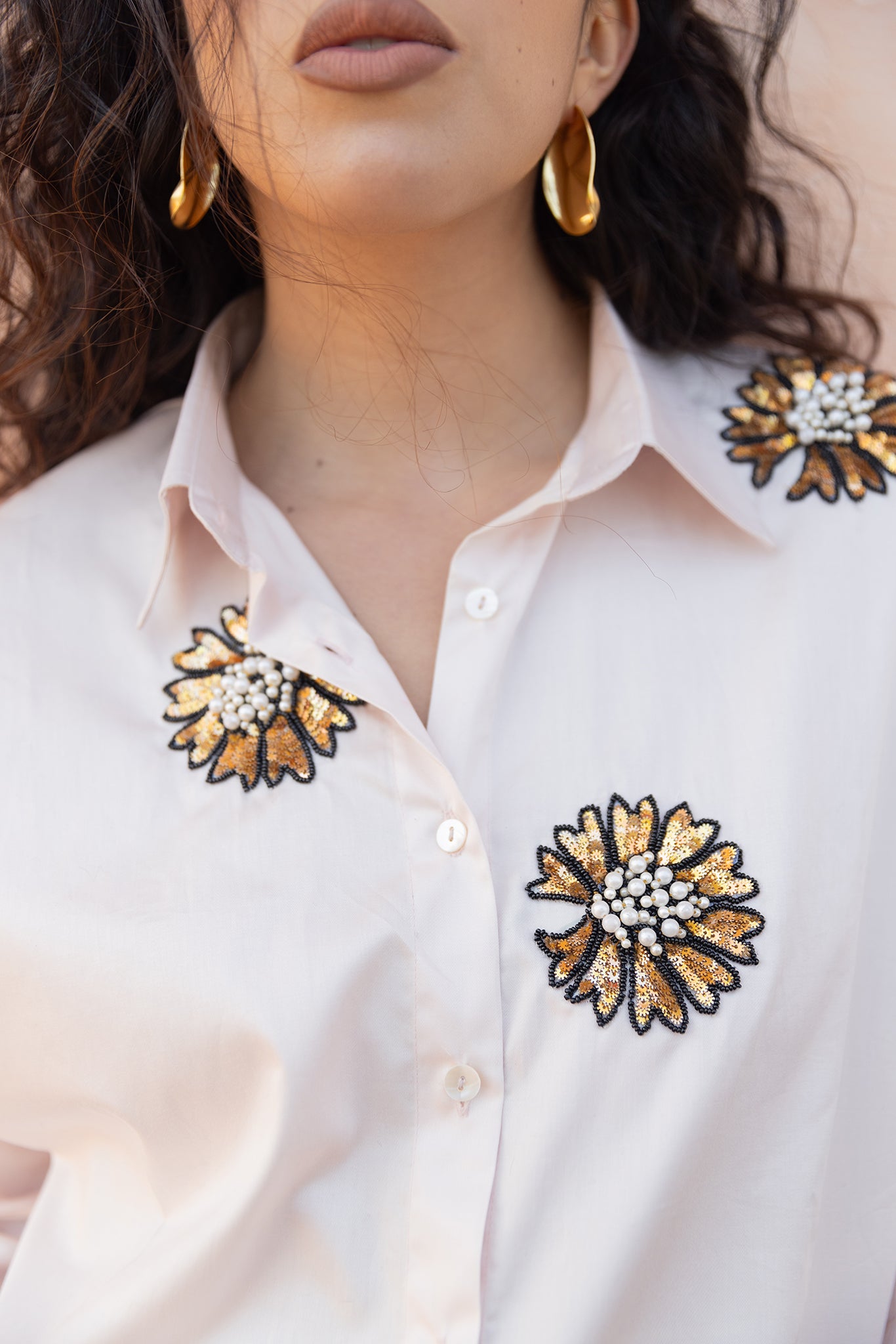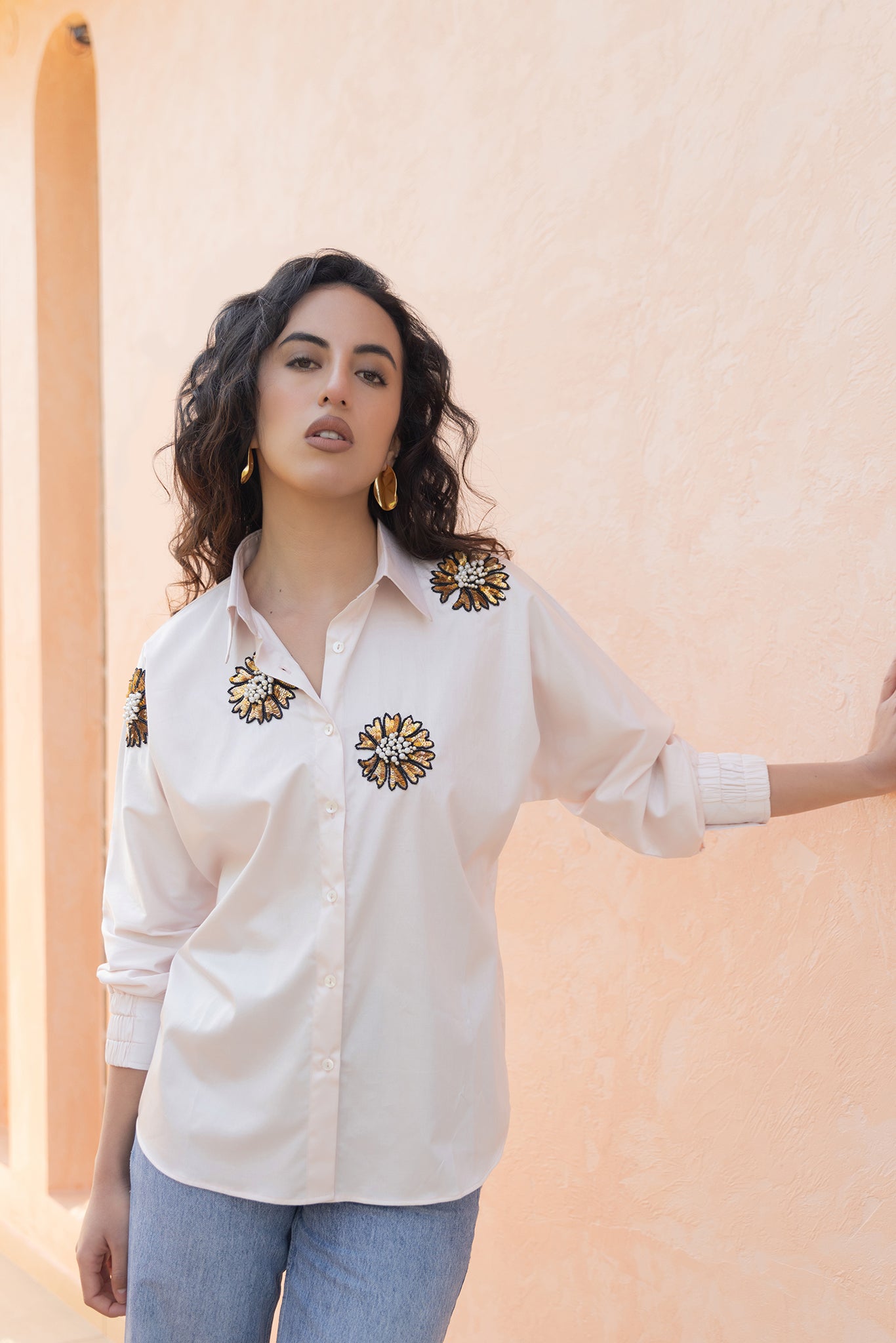 PINK SHIRT WITH GOLDEN FLOWER EMBROIDERY