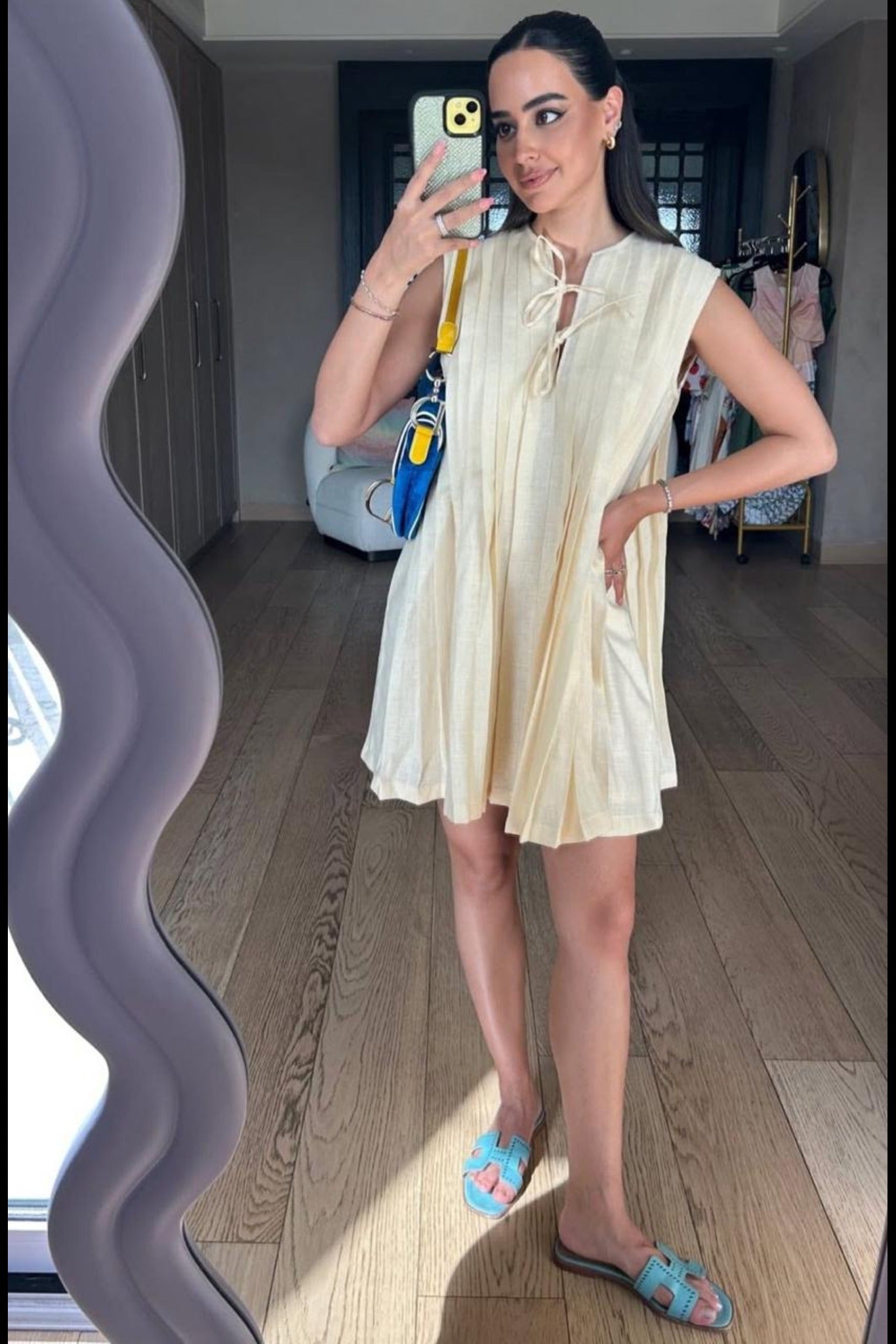 IVORY LINEN PLEATED DRESS
