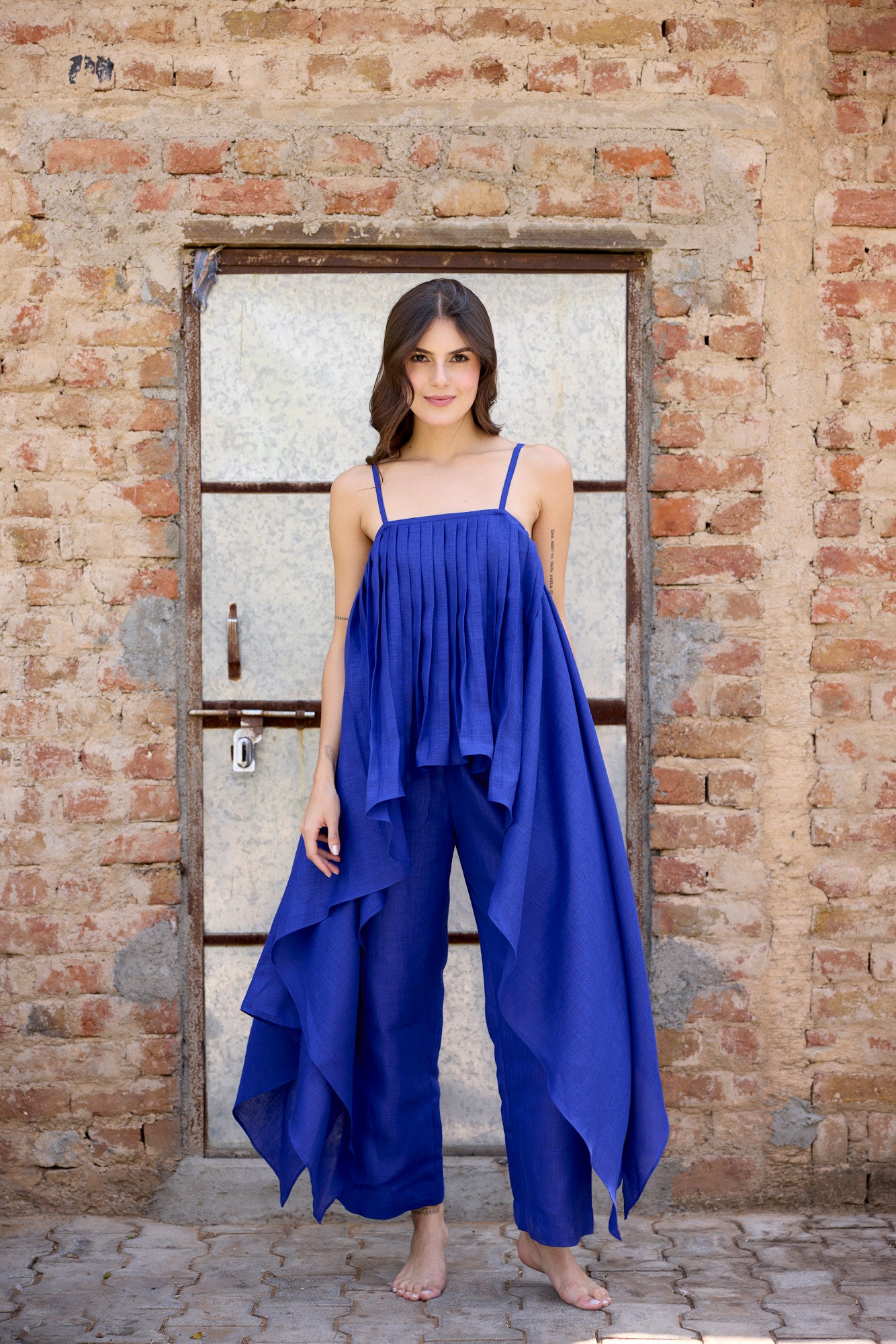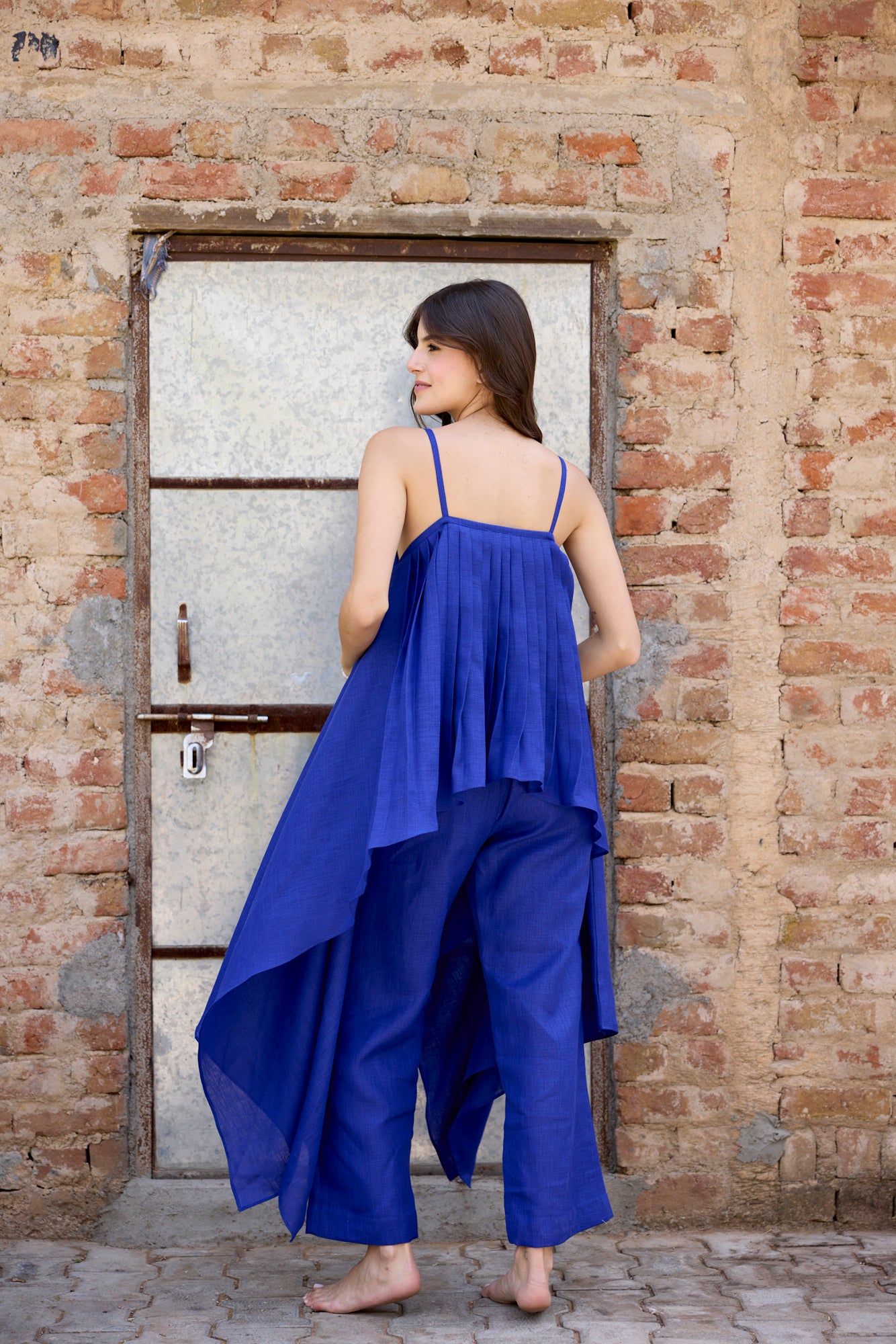 ROYAL BLUE LINEN PEATED CO-ORD SET WITH PANTS