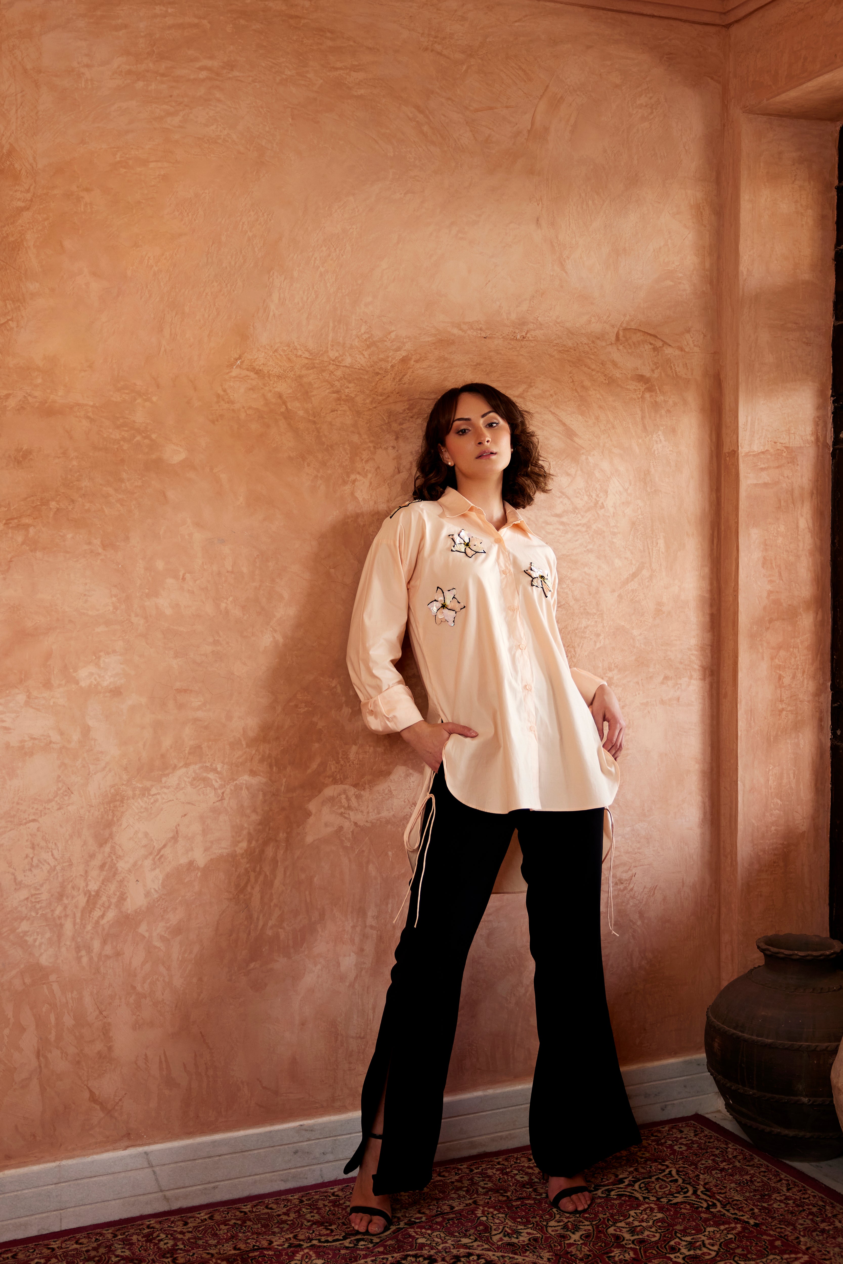 PEACH SHIRT WITH CHROME FLOWER PATCH