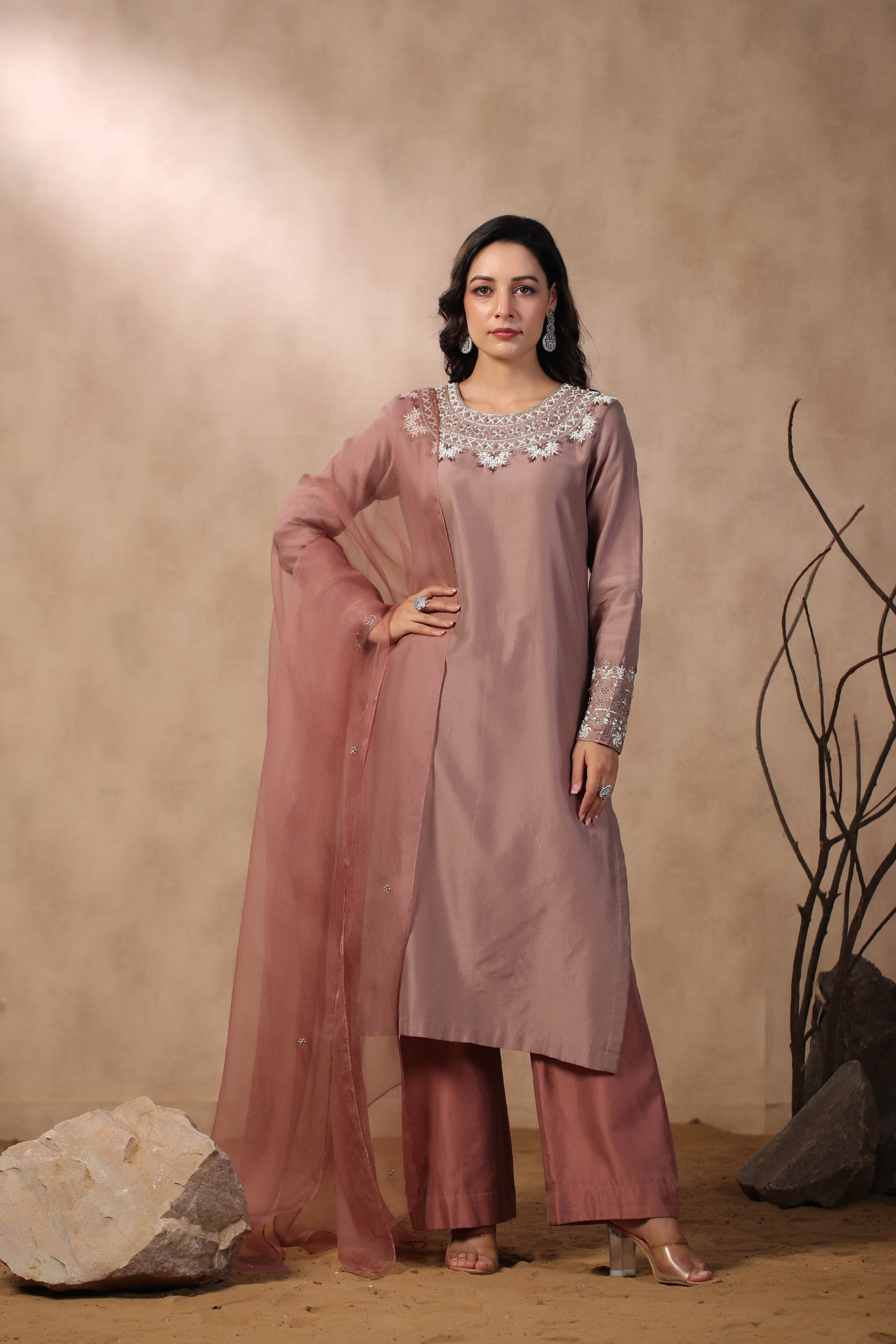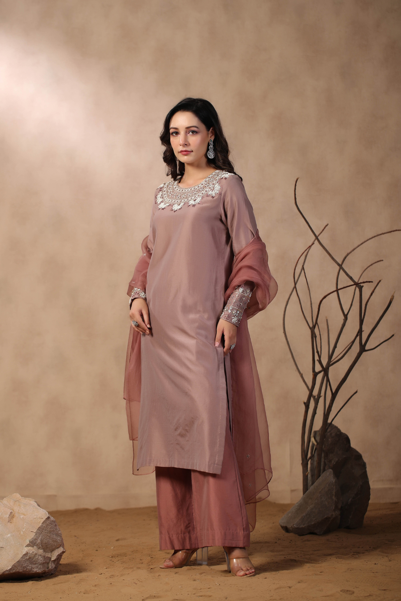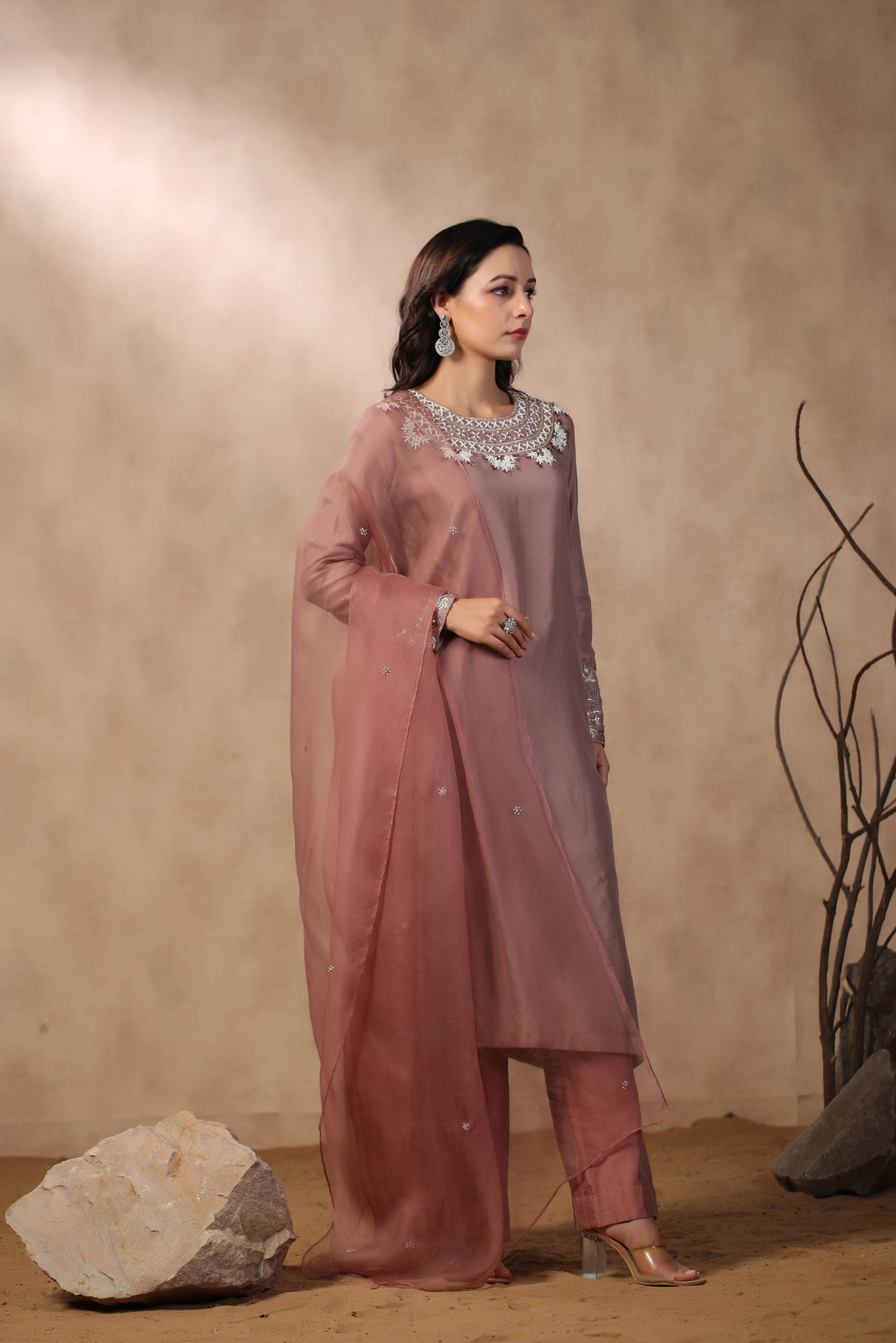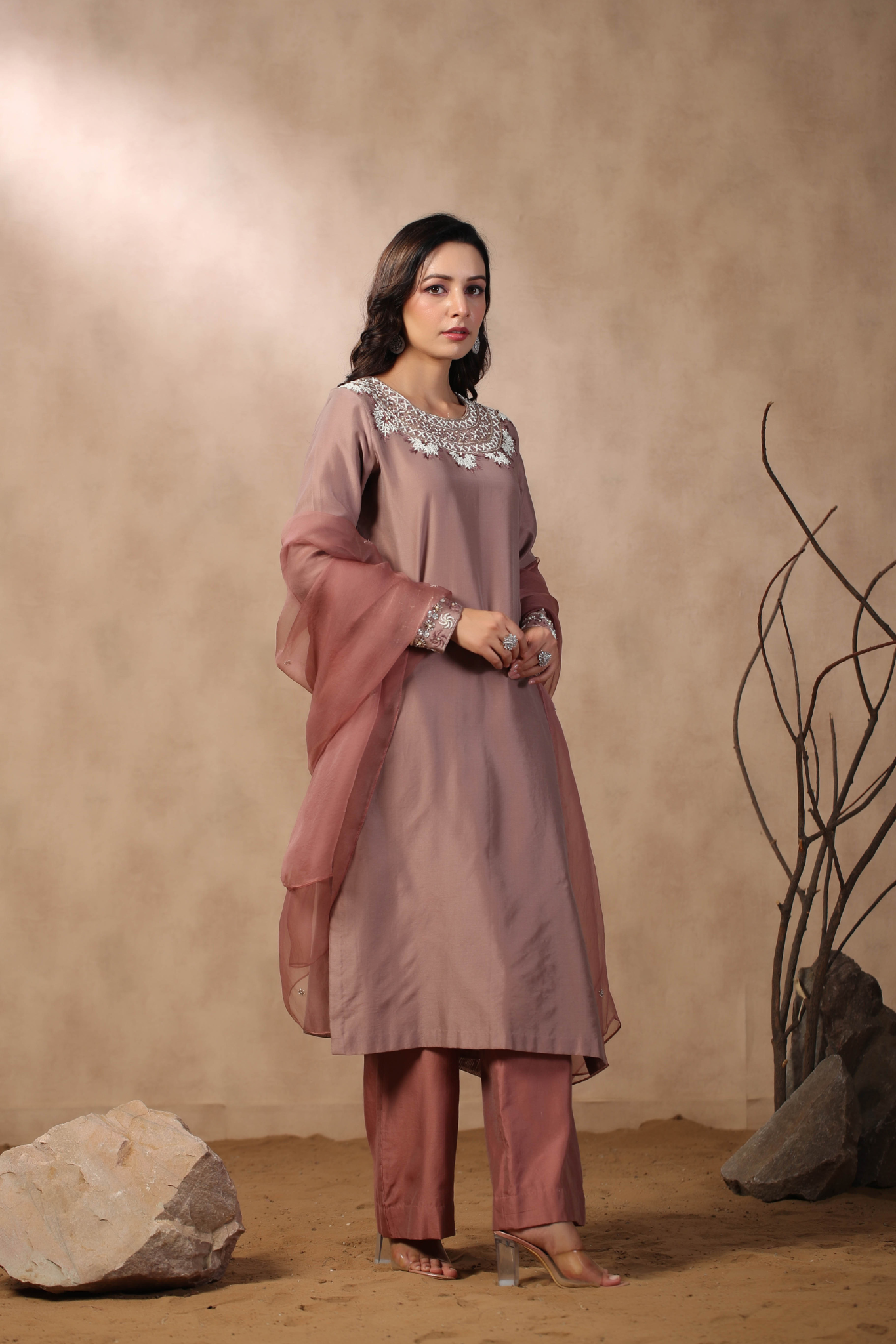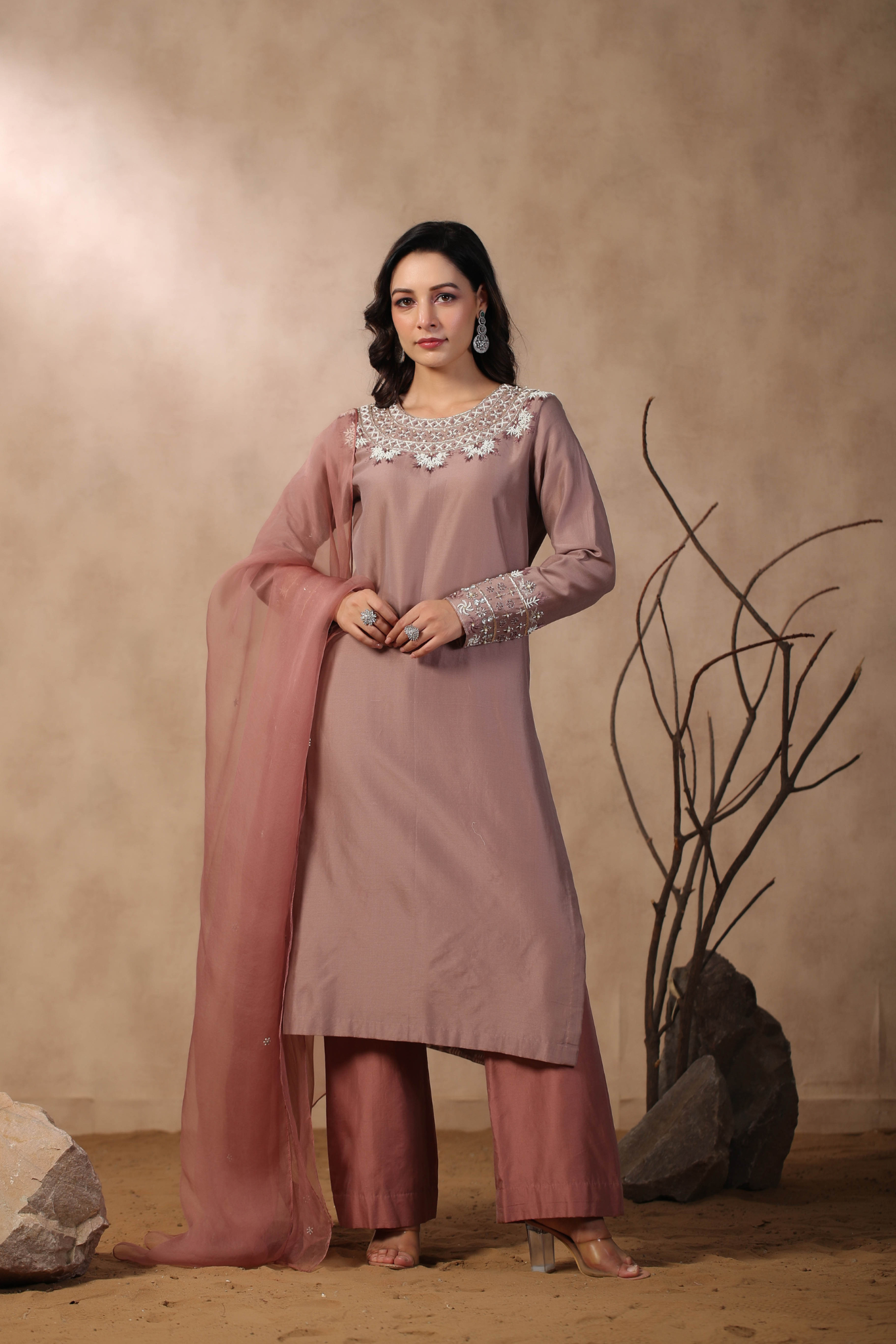 MAUVE KURTA PAIRED WITH PANTS AND DUPATTA