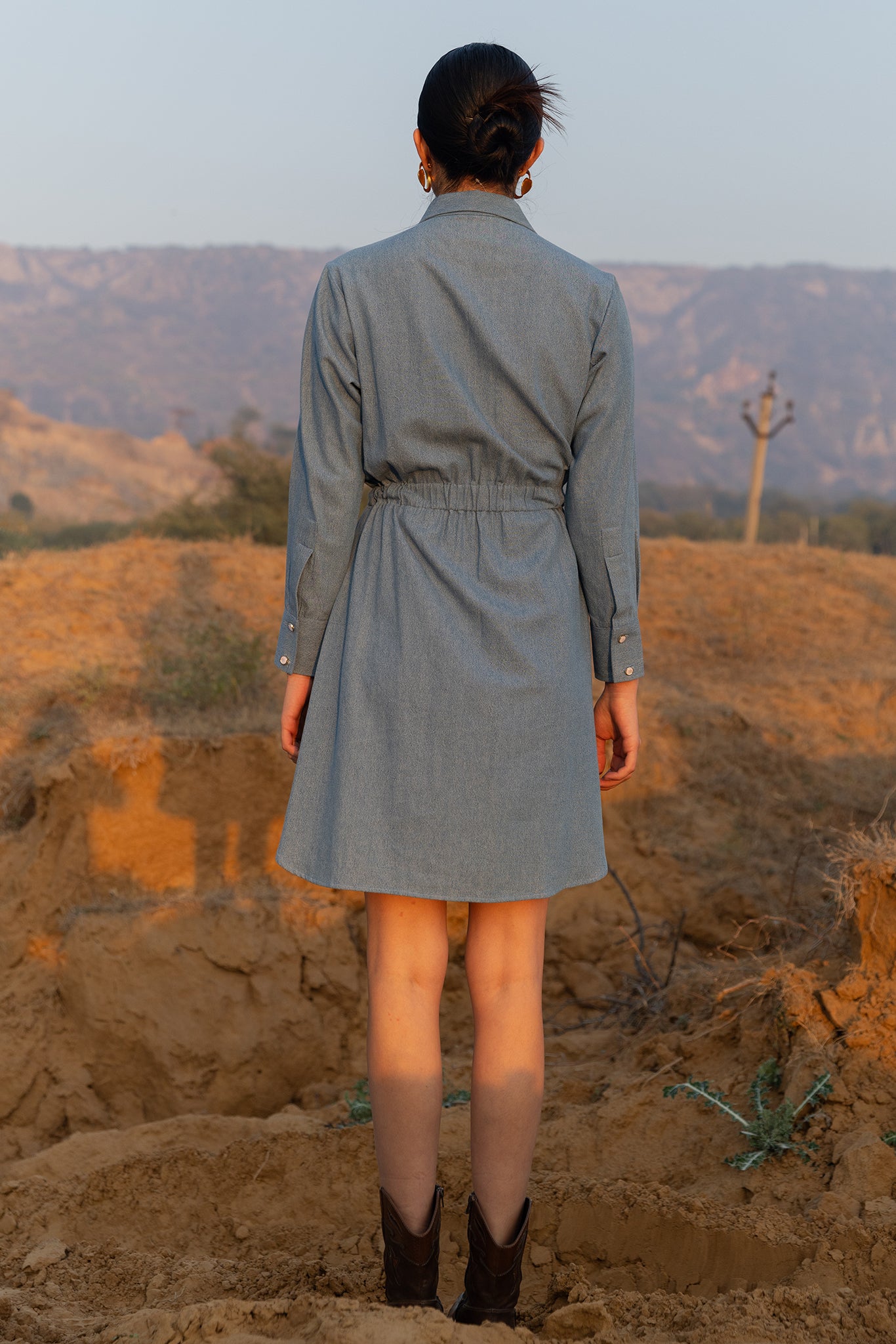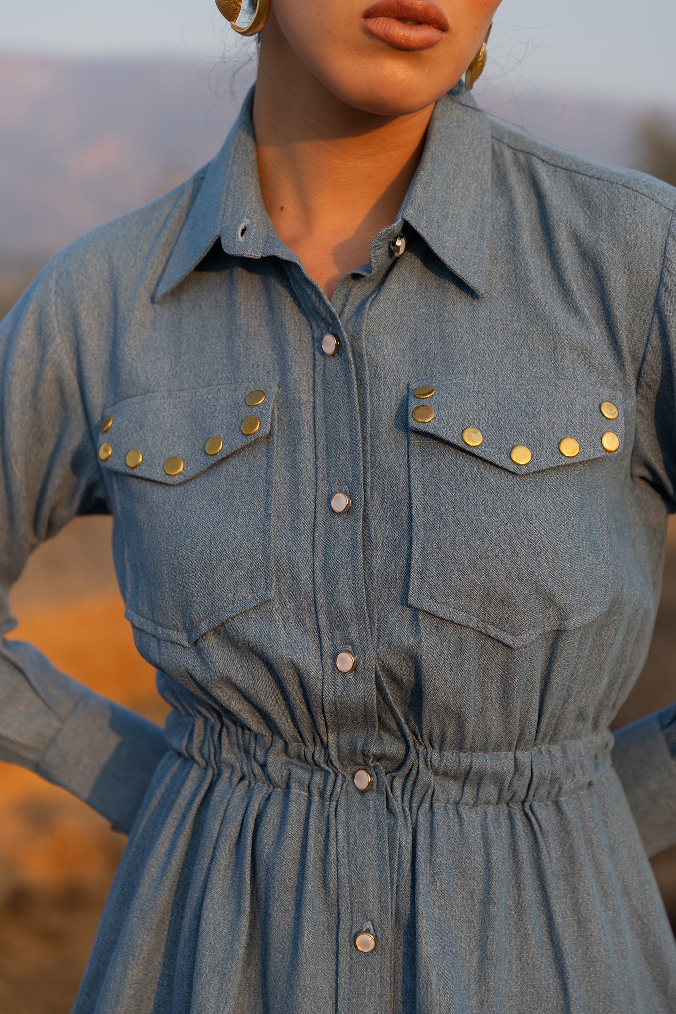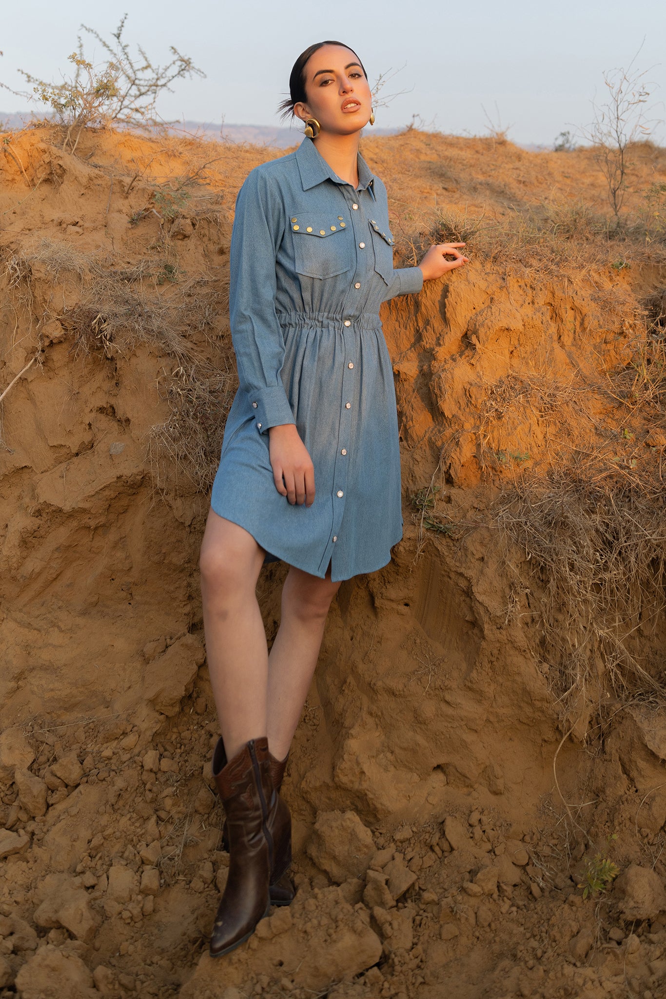 DENIM DRESS WITH ELASTICATED FIT FROM WAIST