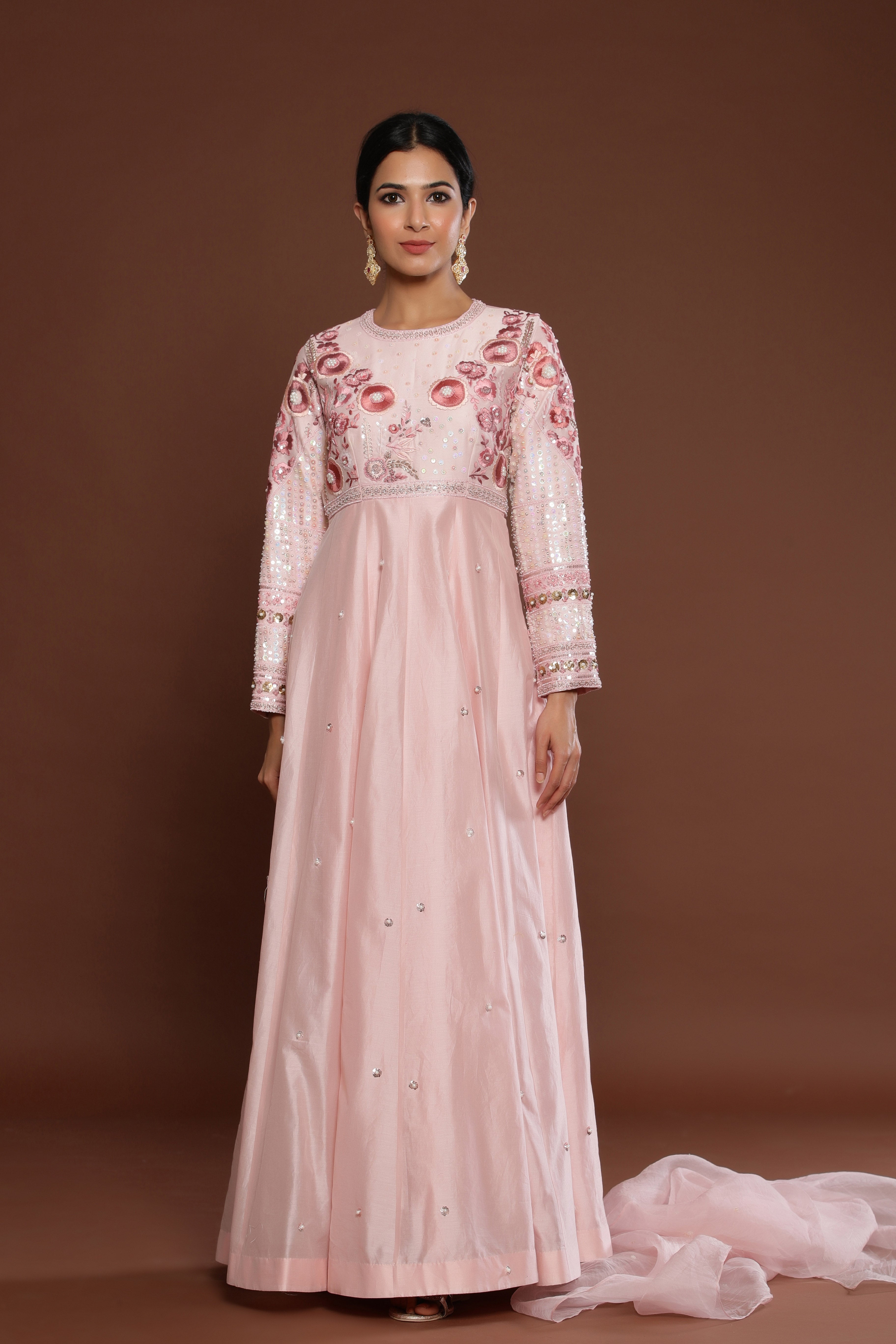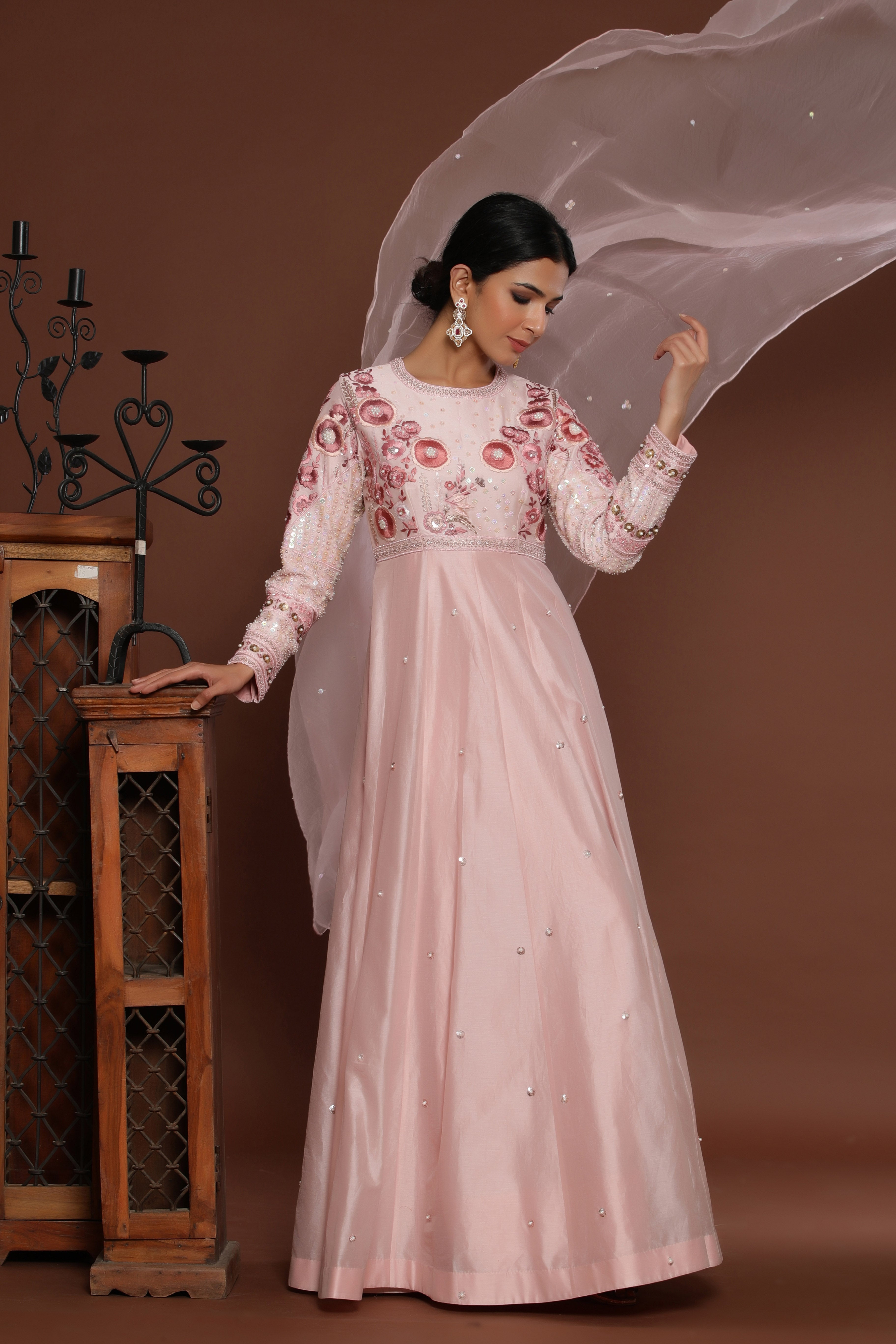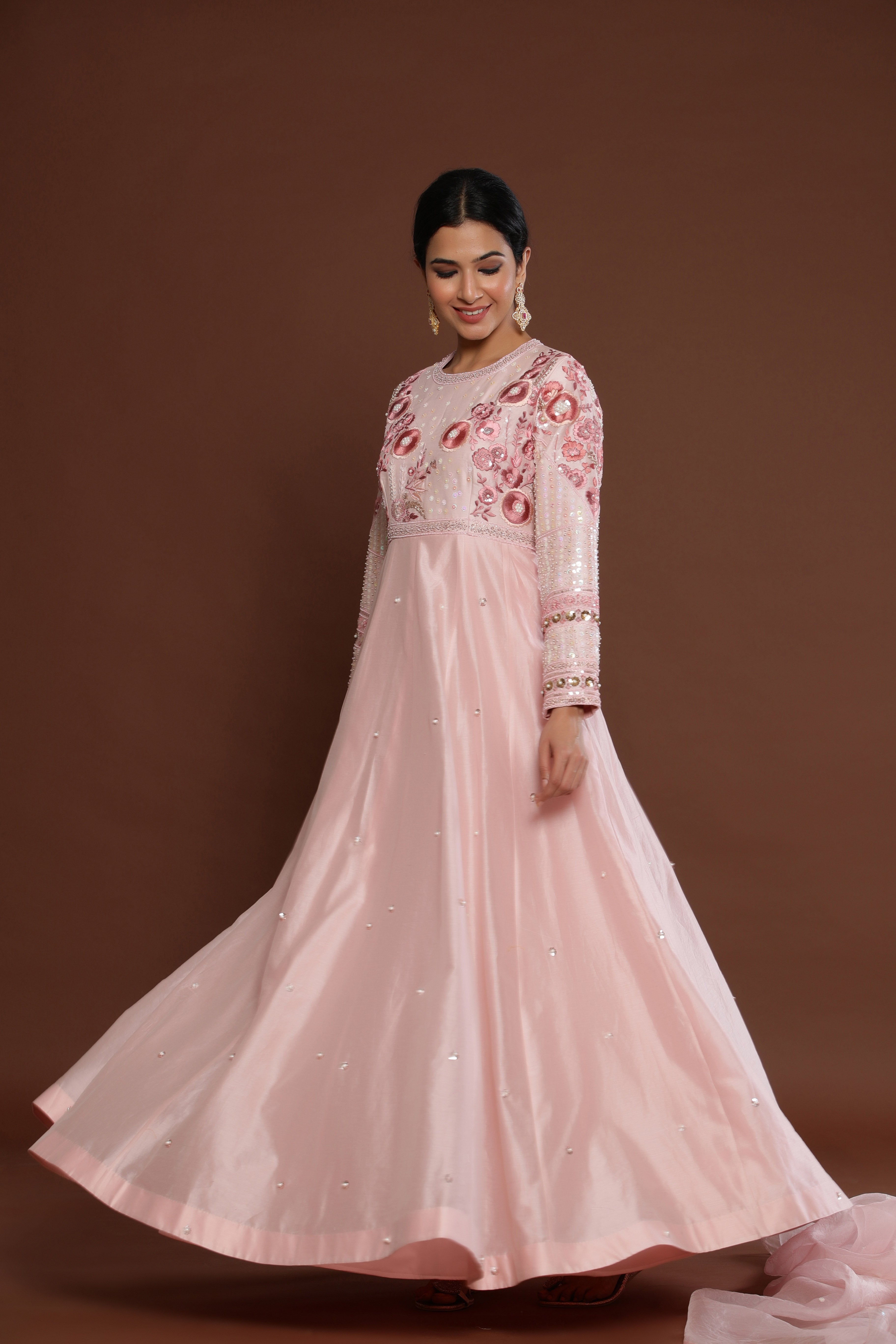 PINK CHANDERI ANARKALI HEAVY EMBELLISHED ON BODICE...