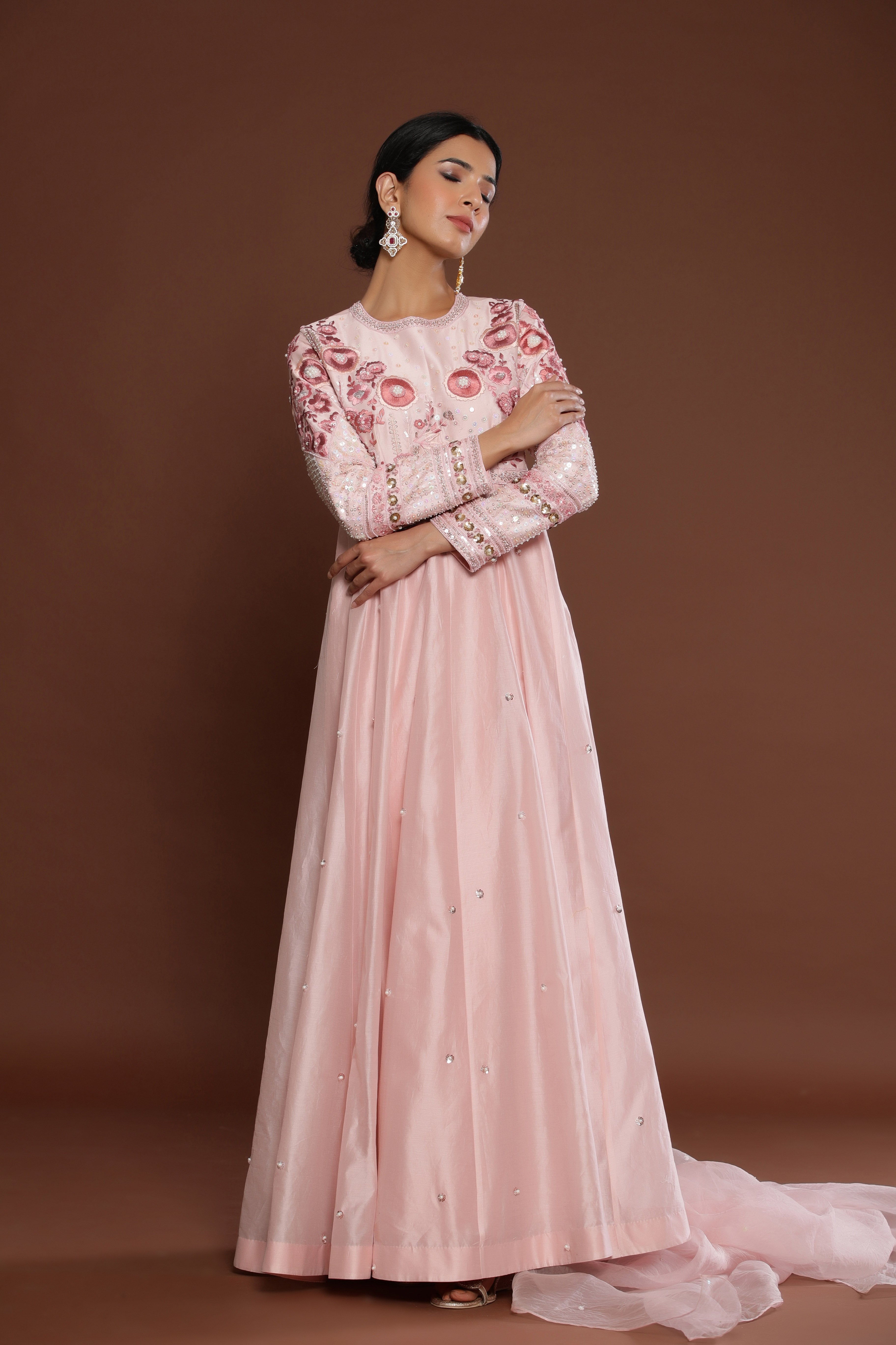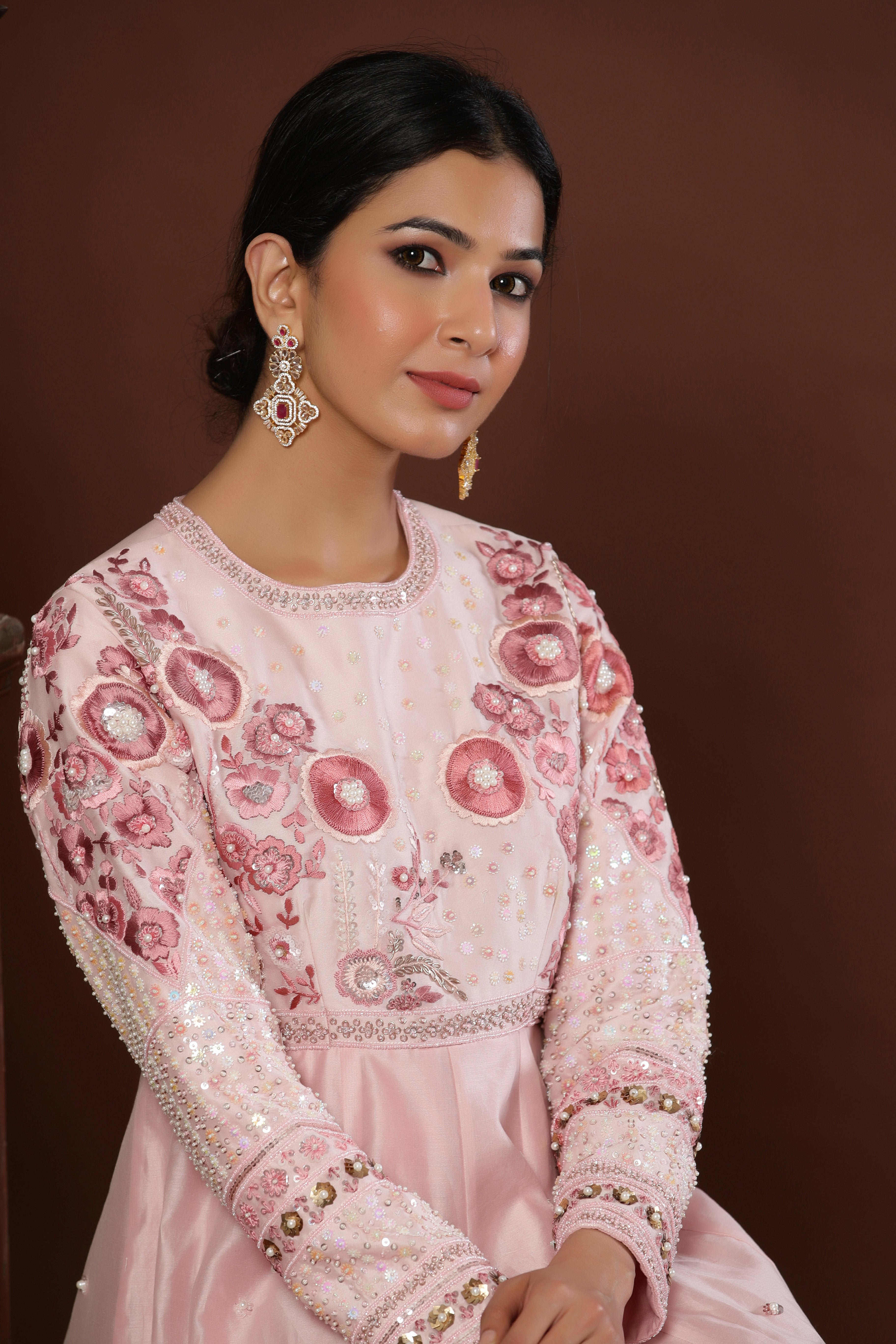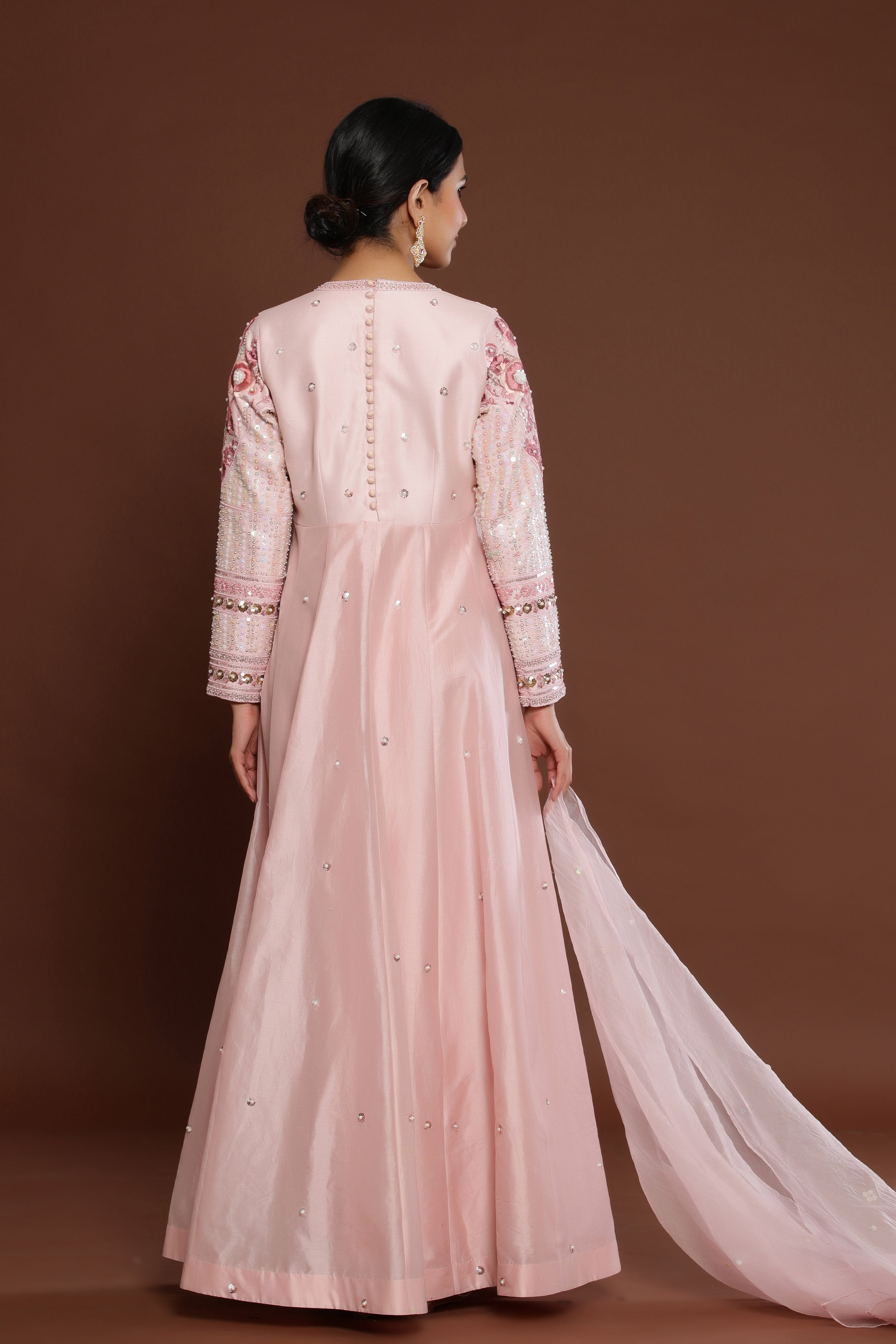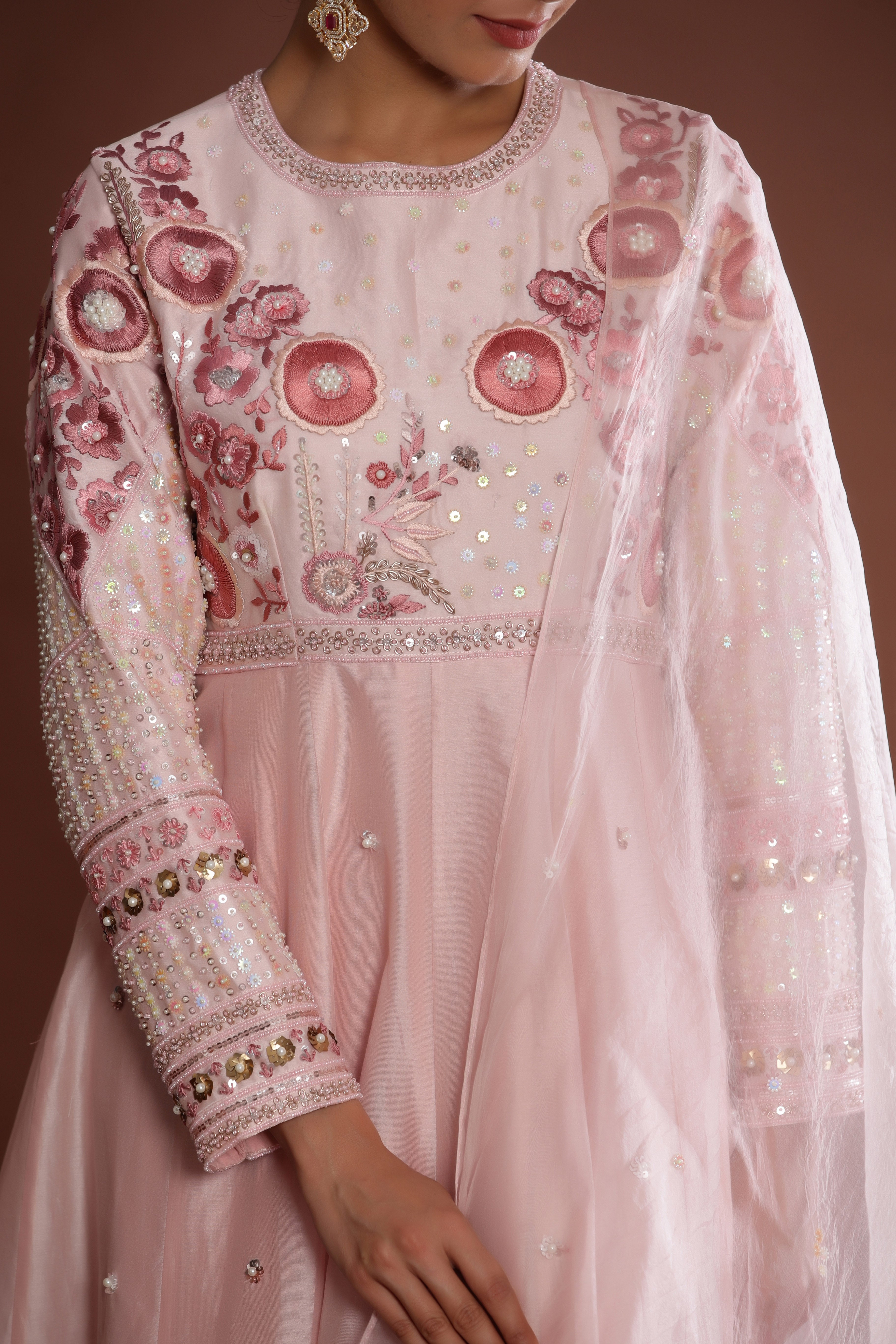 PINK CHANDERI ANARKALI HEAVY EMBELLISHED ON BODICE...