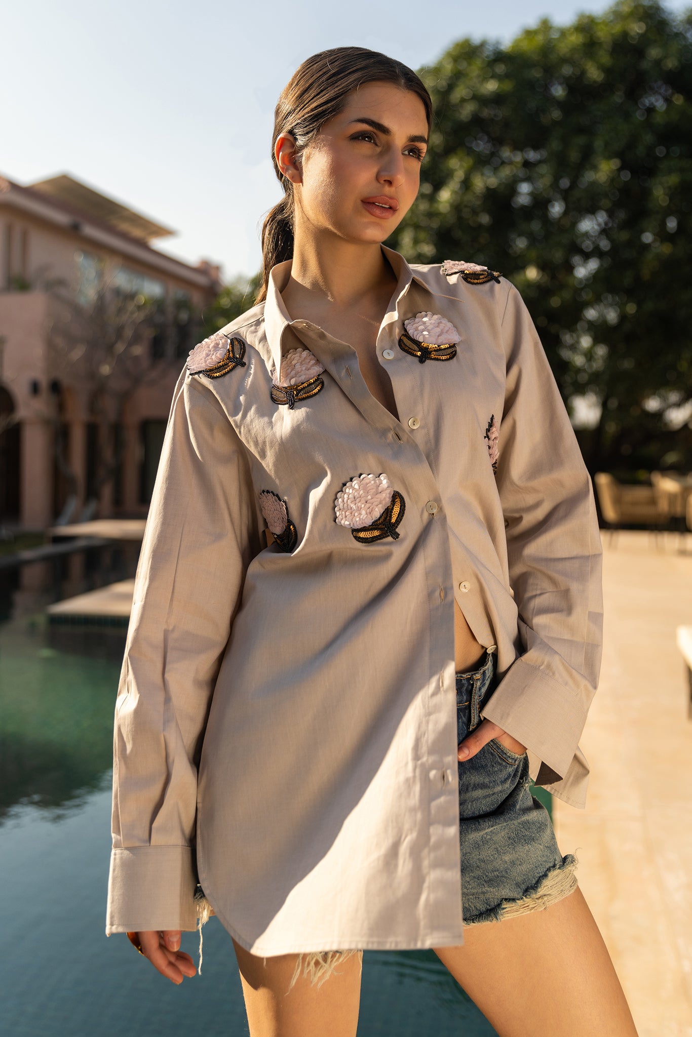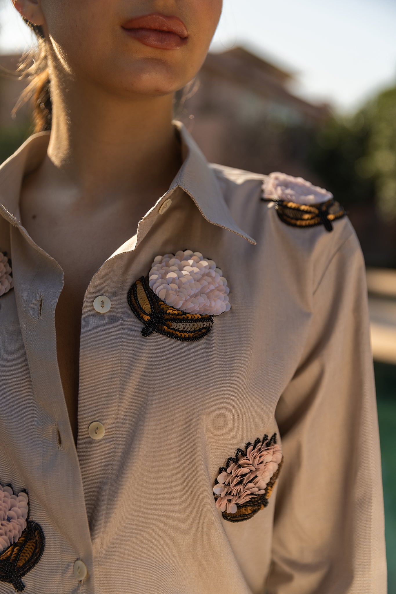 GREIGE COLOUR WITH PINK FLOWER EMBROIDERY