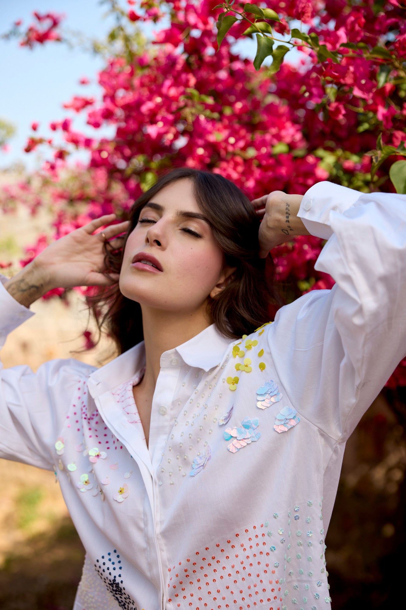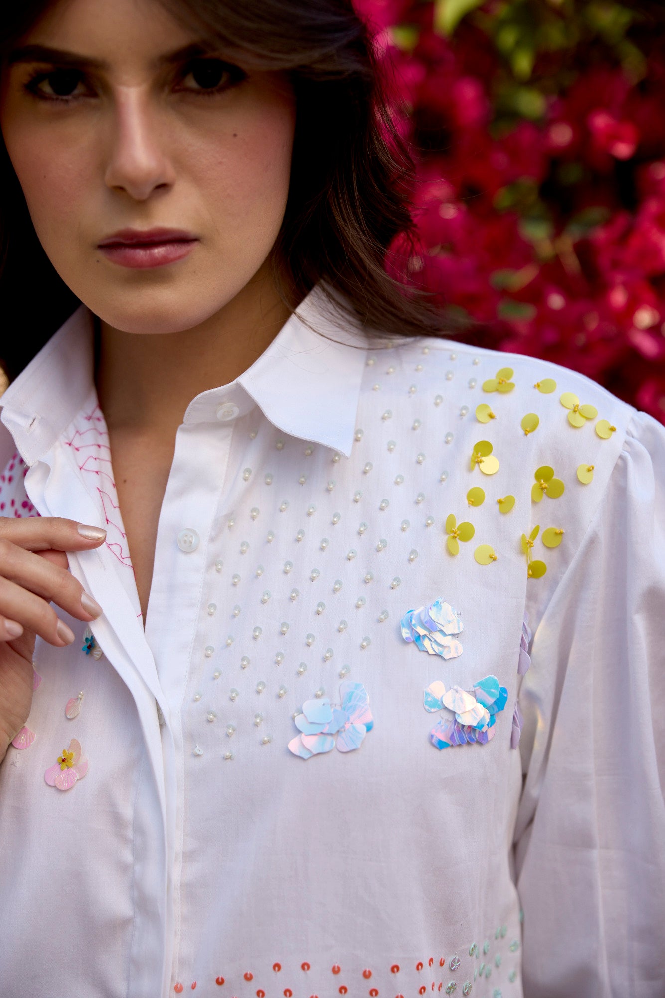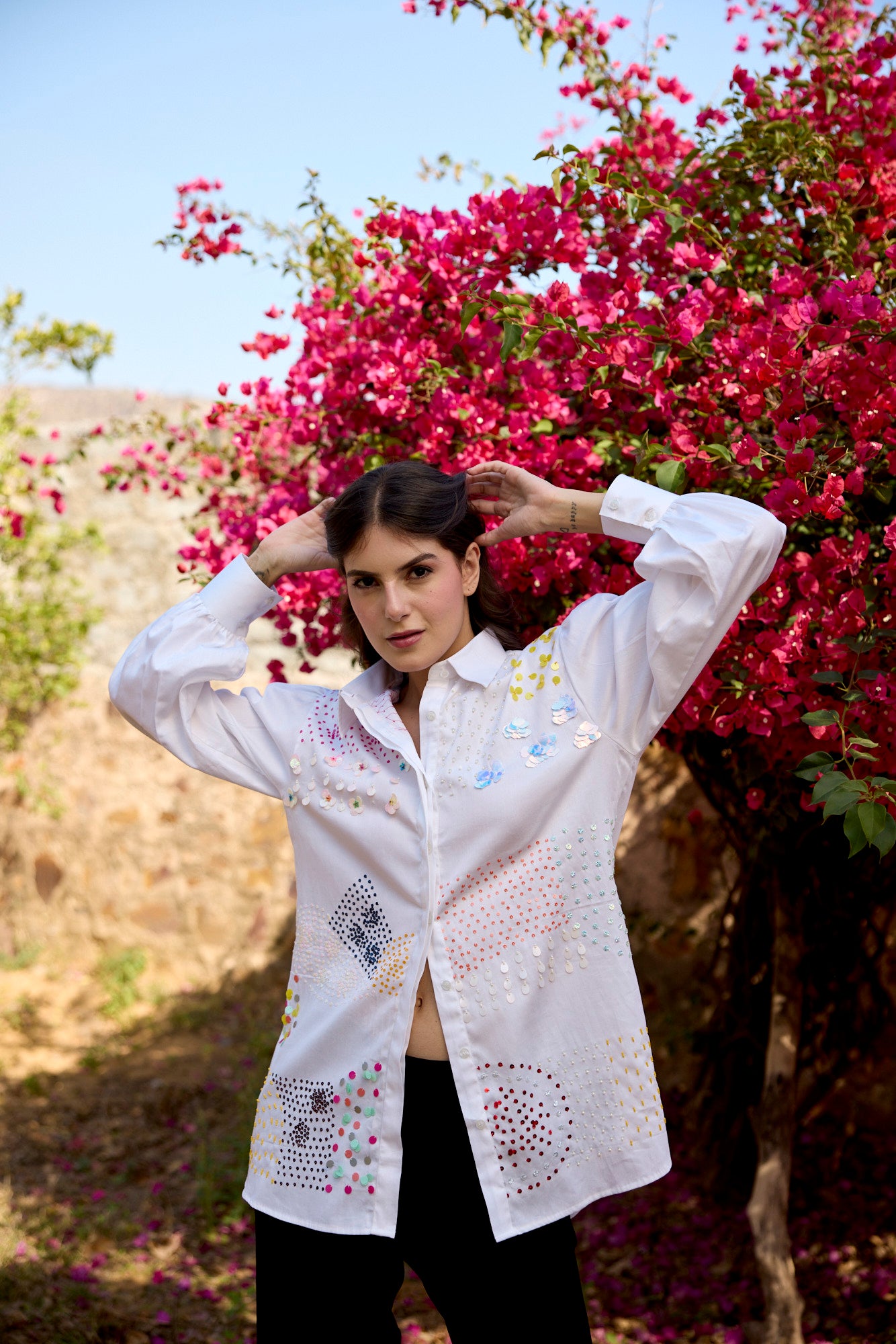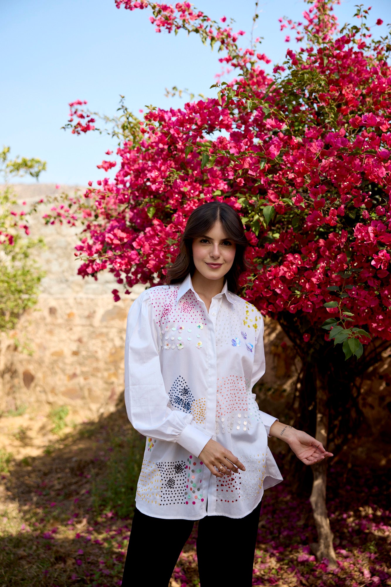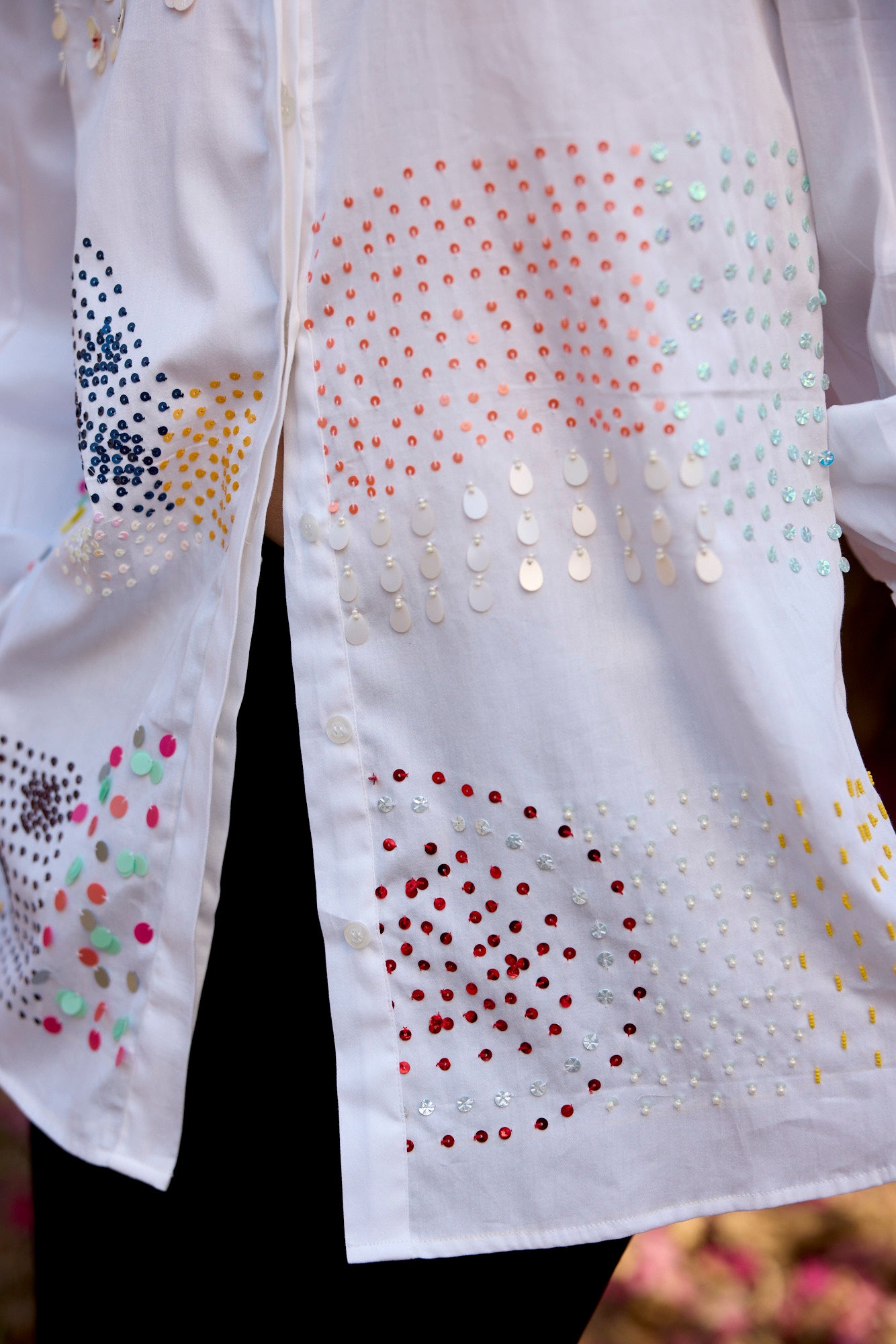 WHITE SHIRT WITH MULTI COLOUR ALL OVER SEQUIN EMBROIDERY