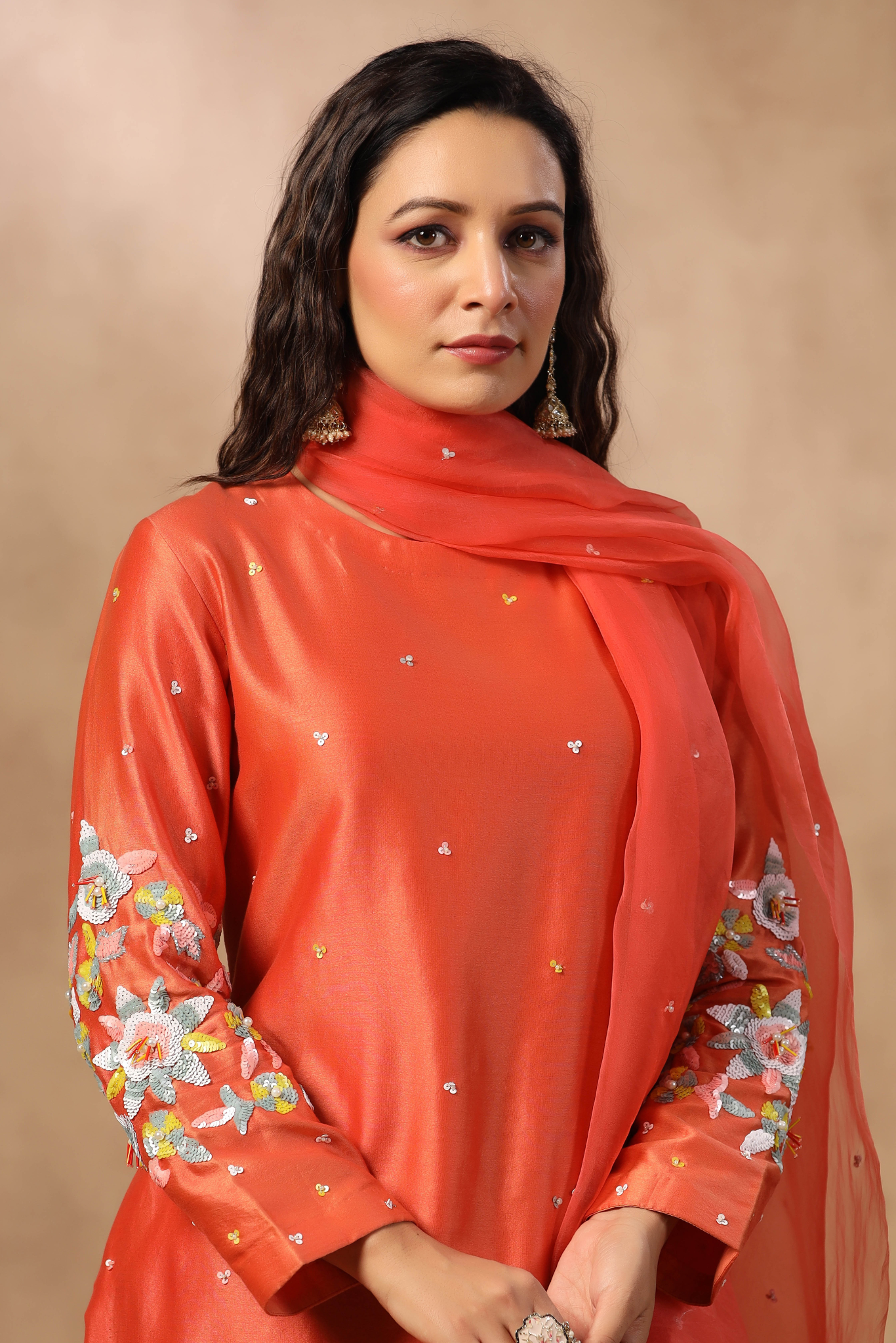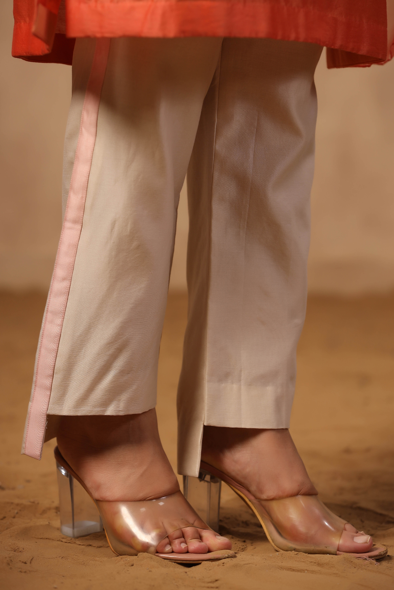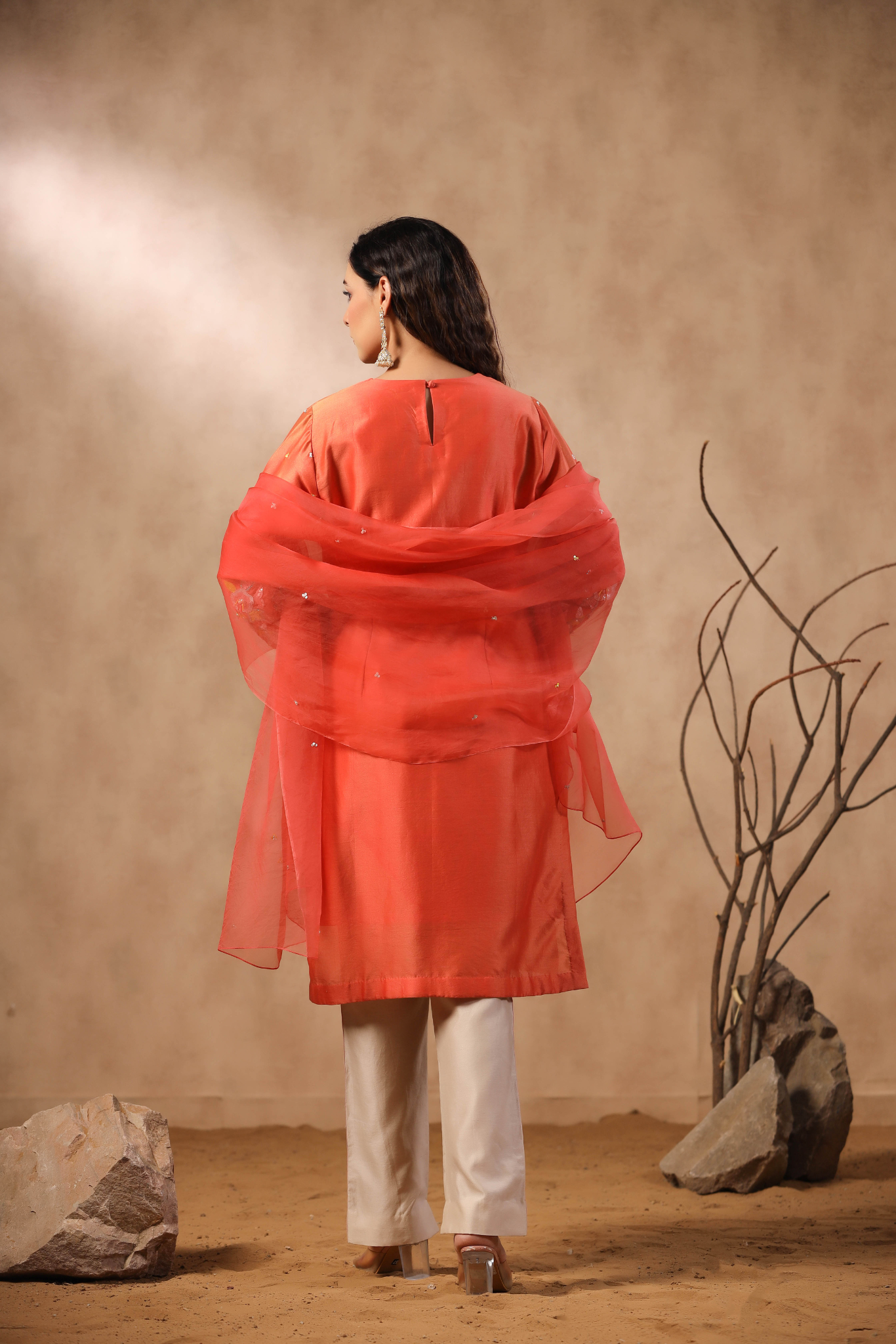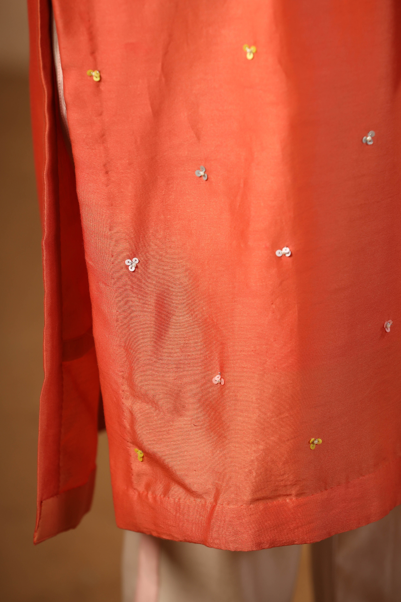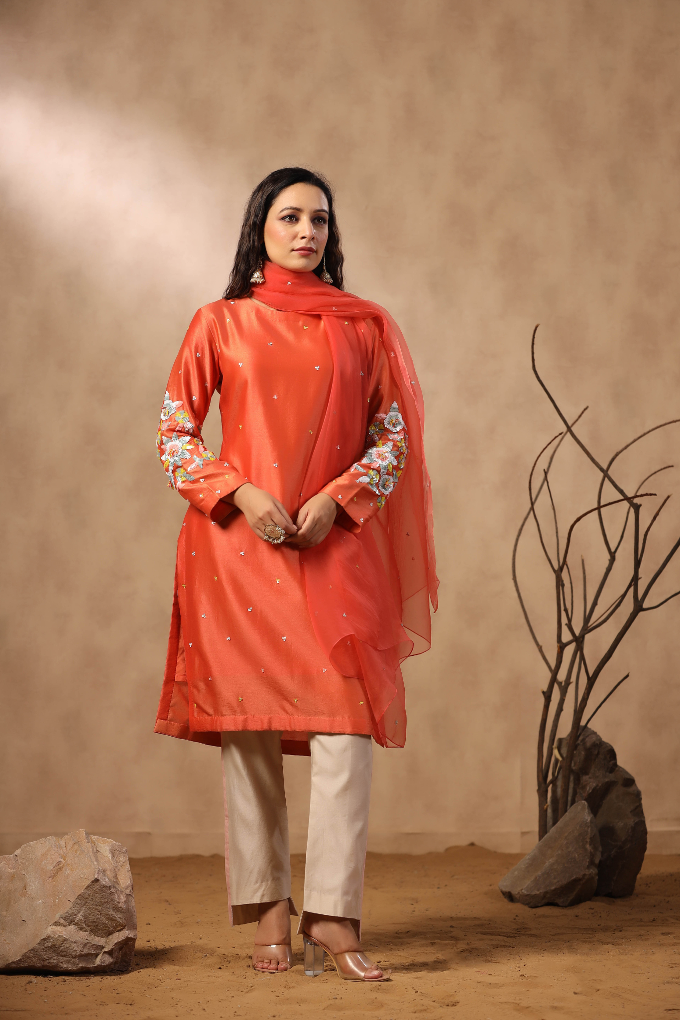 PAPAYA ORANGE KURTA WITH CONTRAST PANTS AND...