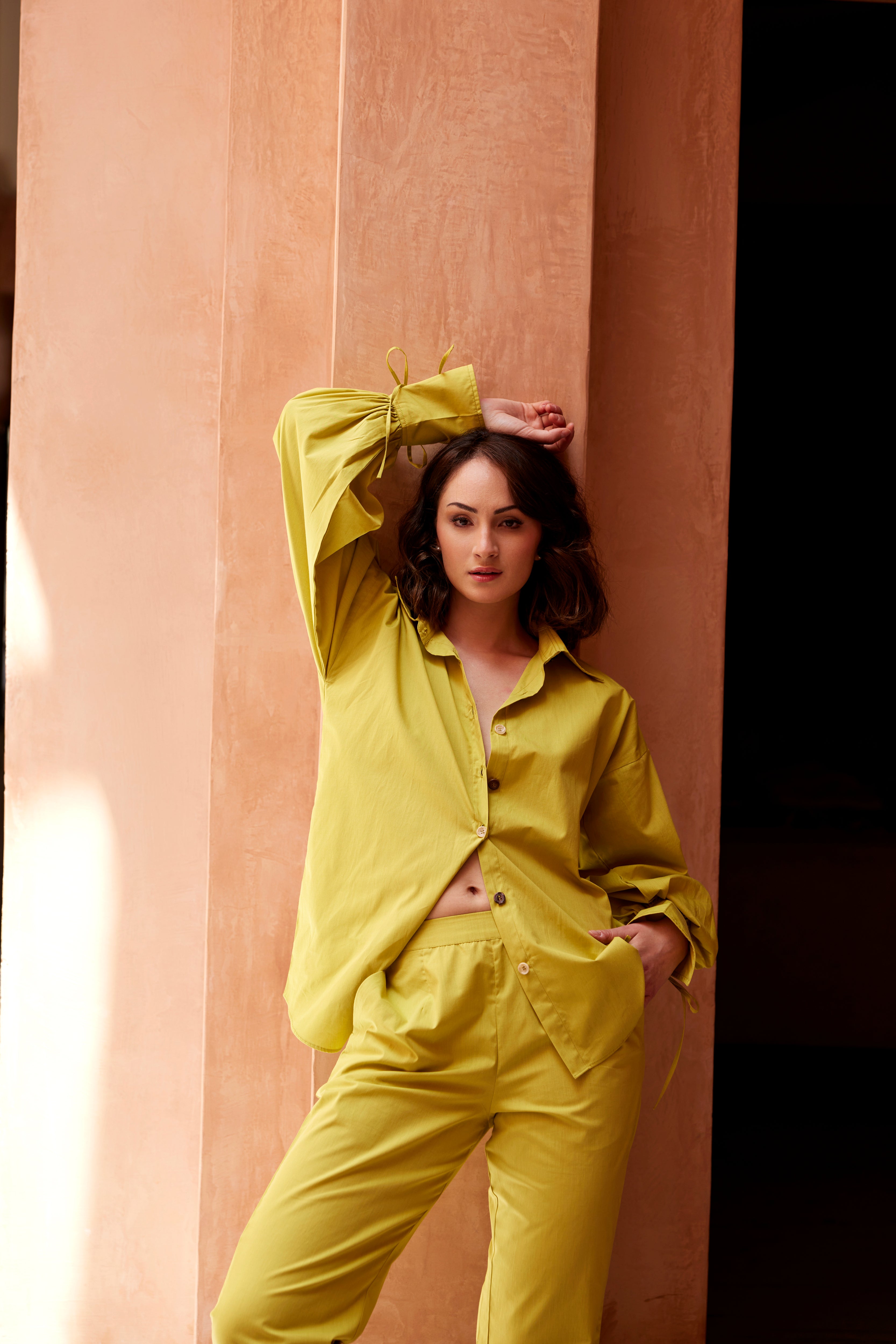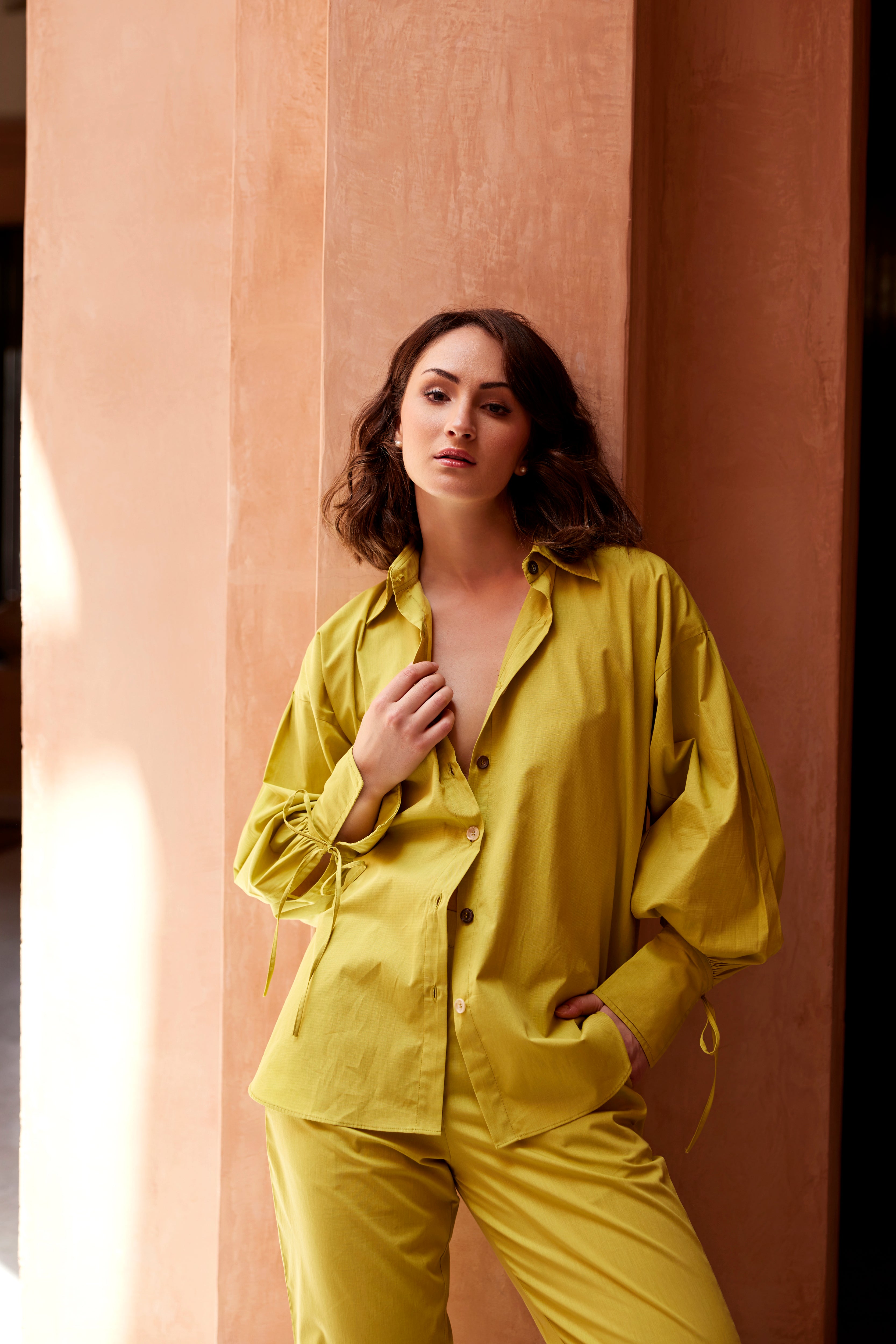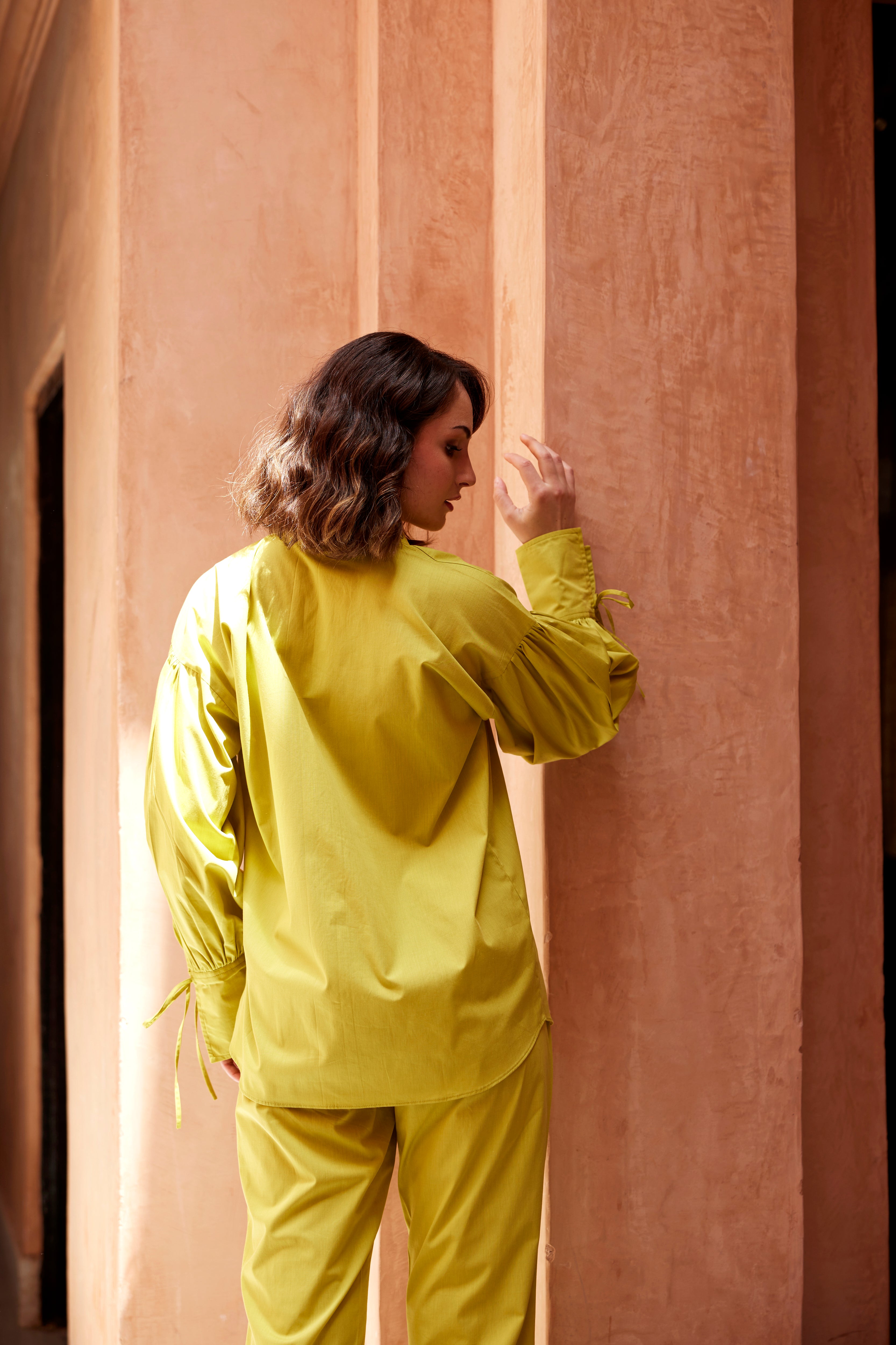 GREEN COORD SET WITH DRAWSTRING CUFF SLEEVES