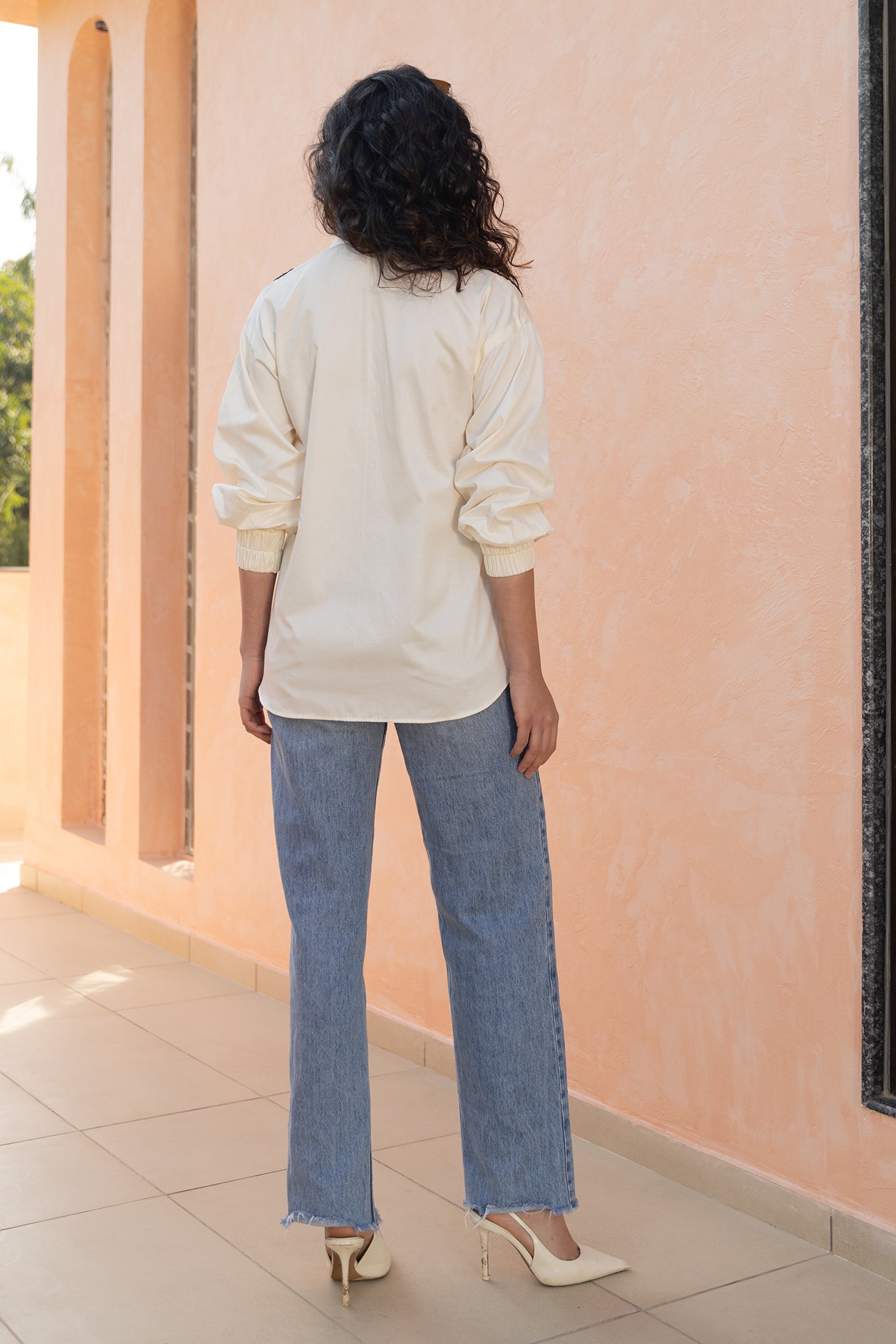 VANILLA SHIRT WITH GOLDEN FLOWER EMBROIDERY