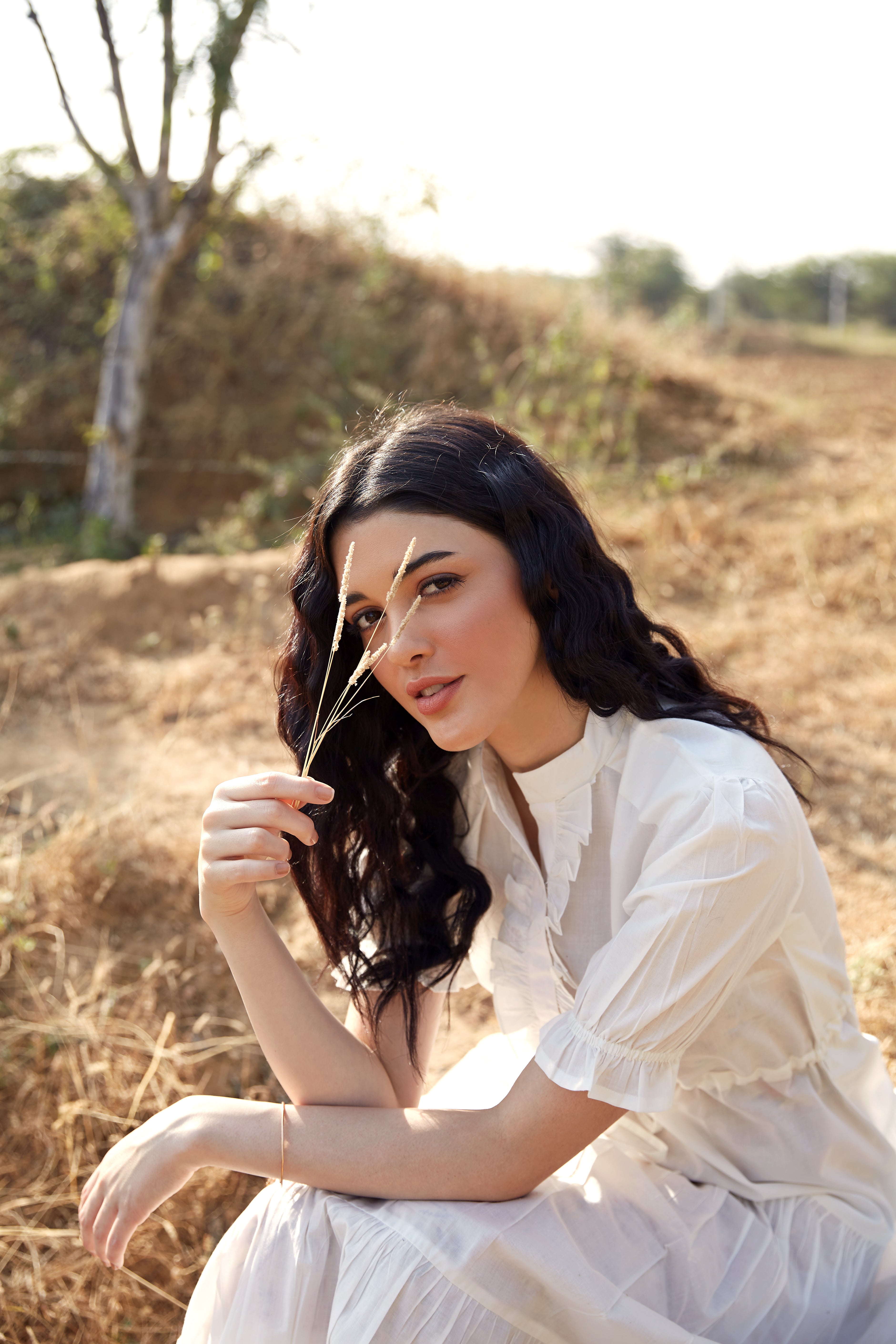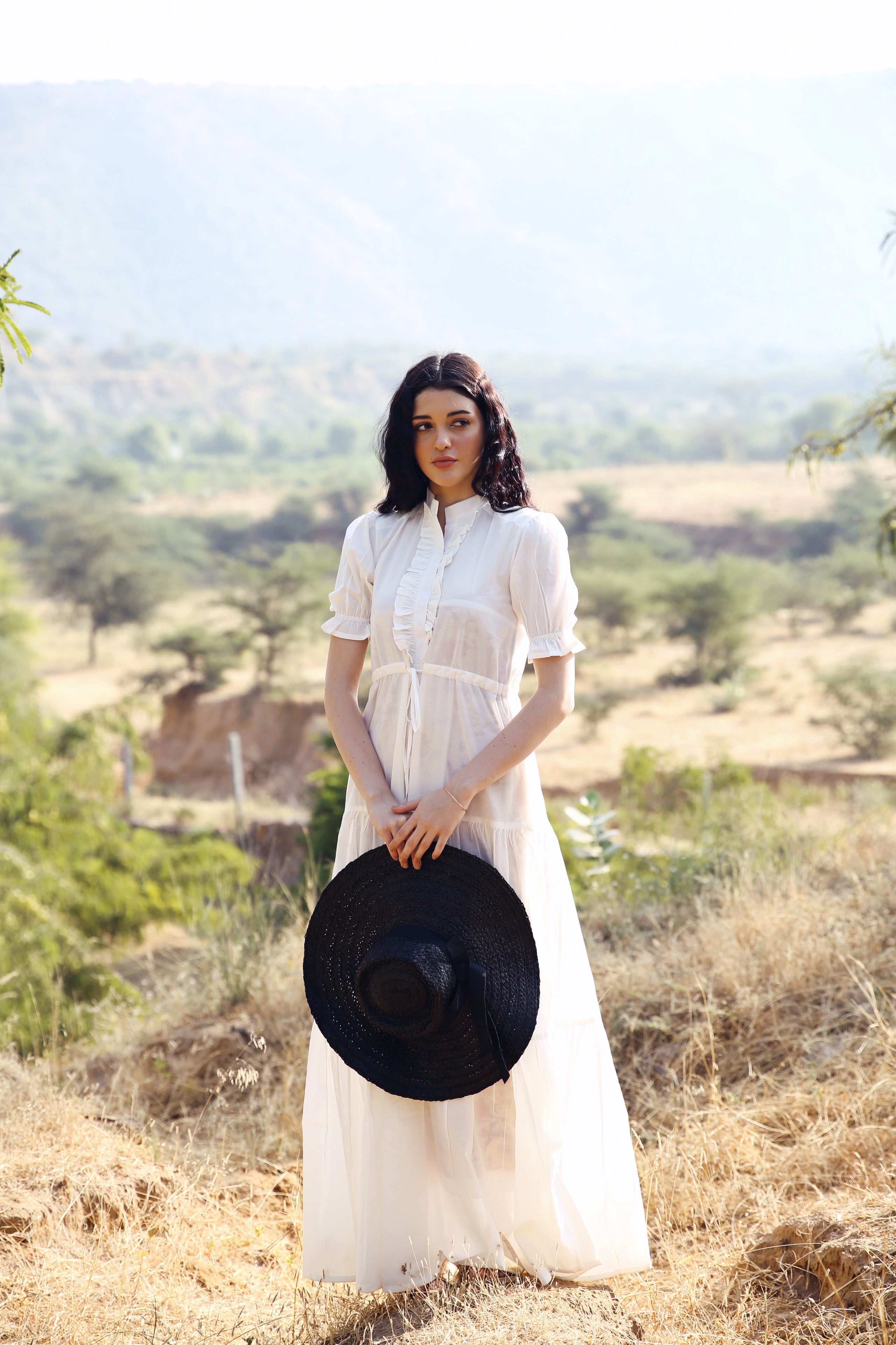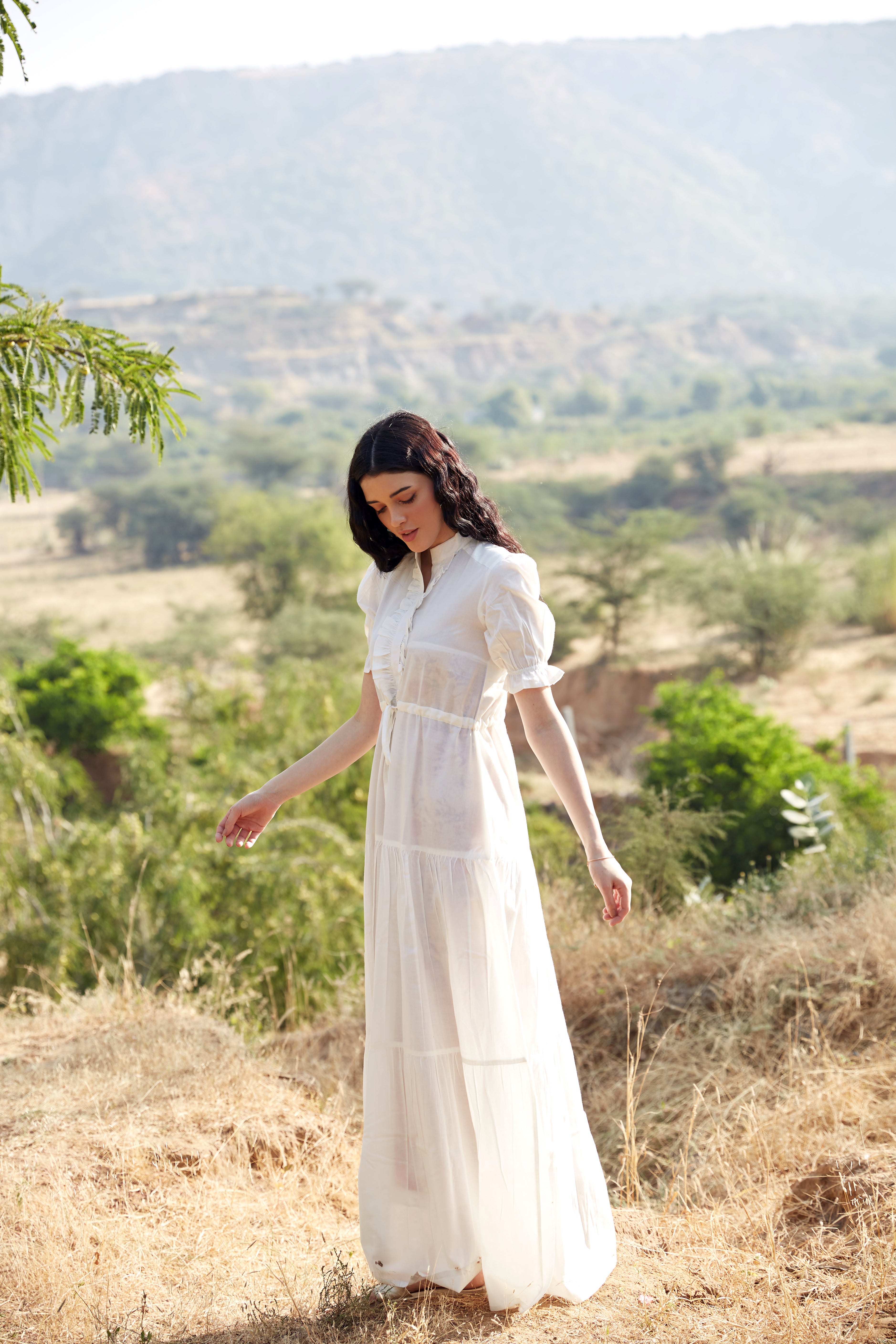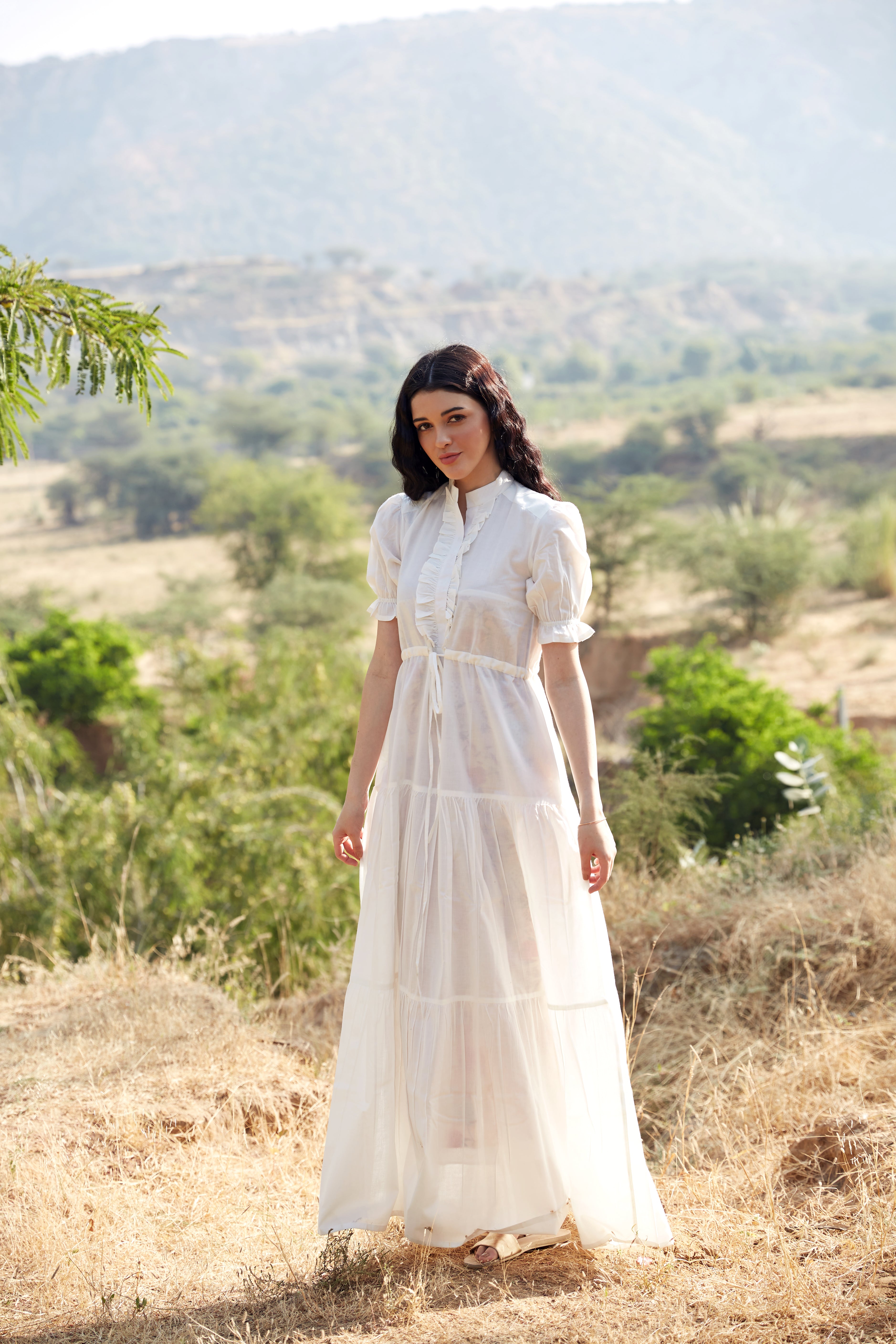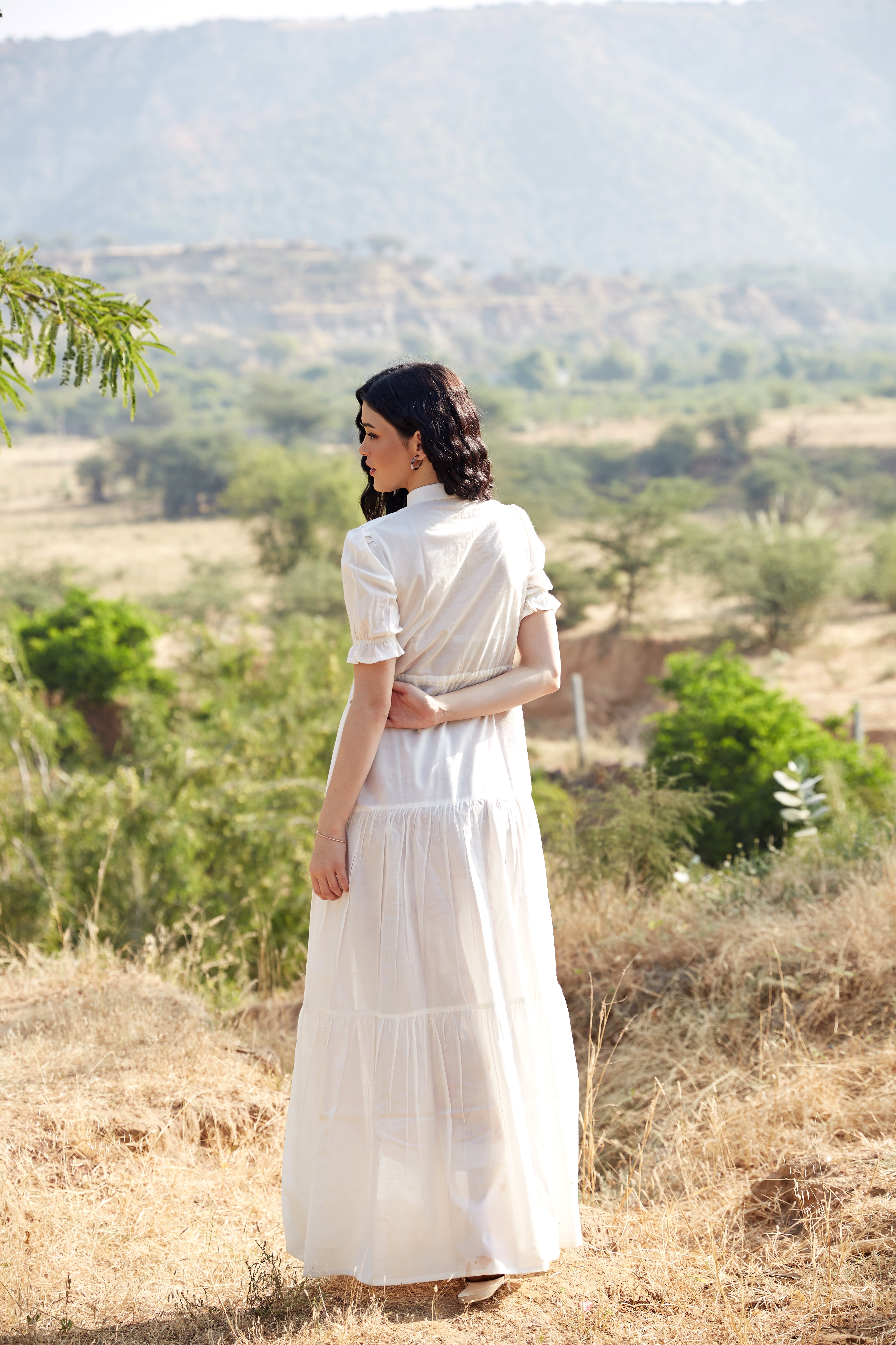WHITE COTTON TIERED DRESS