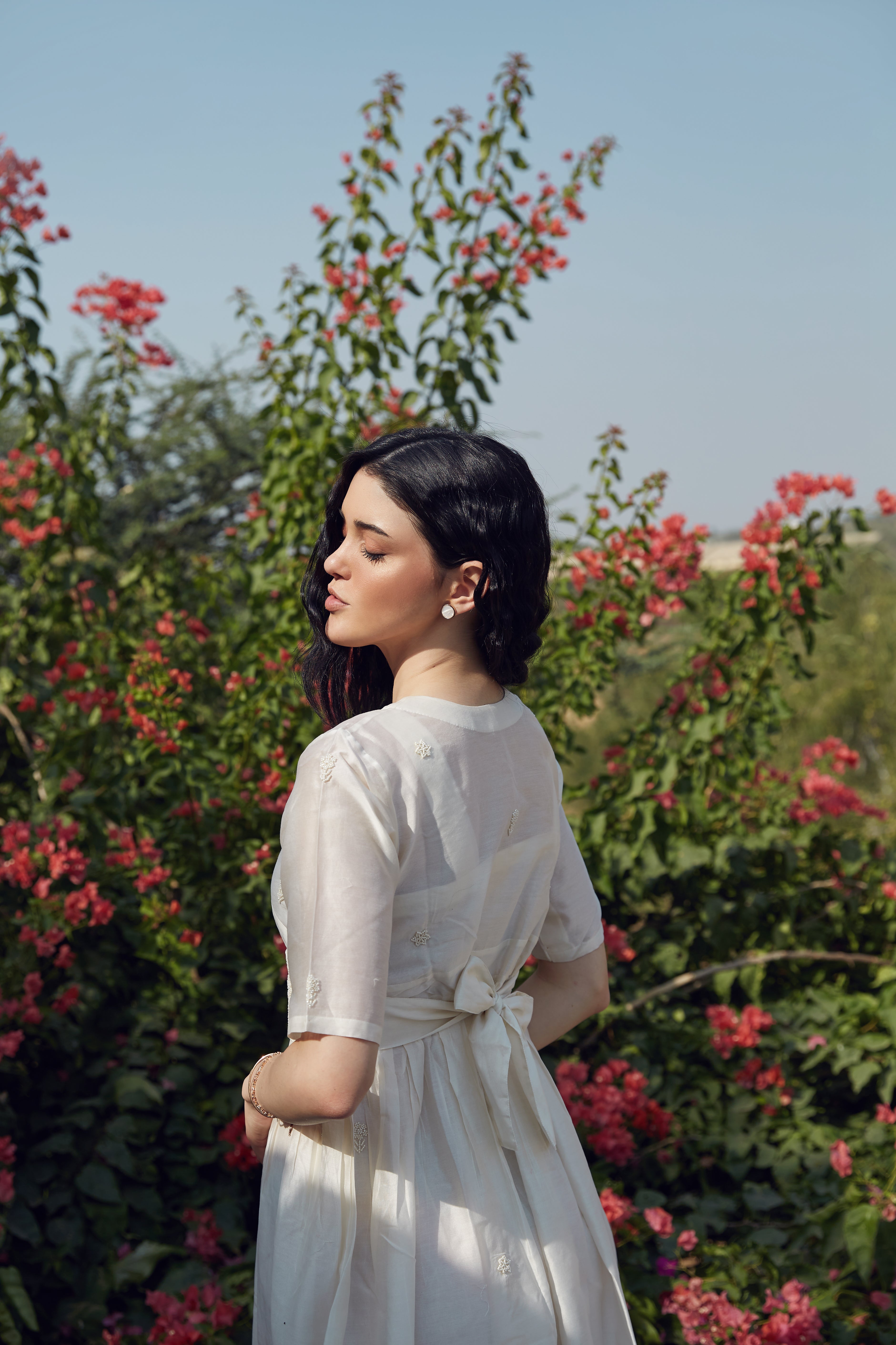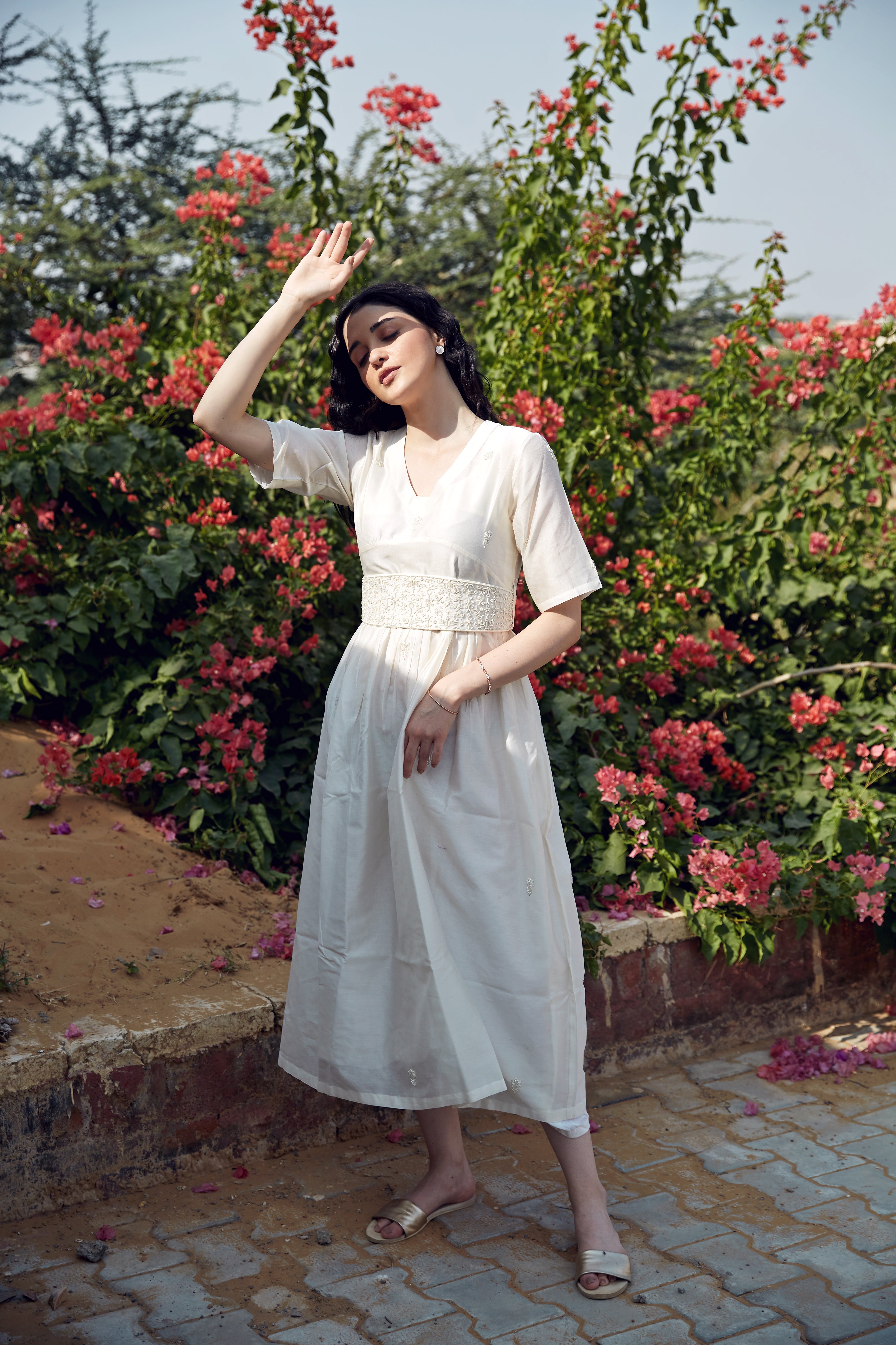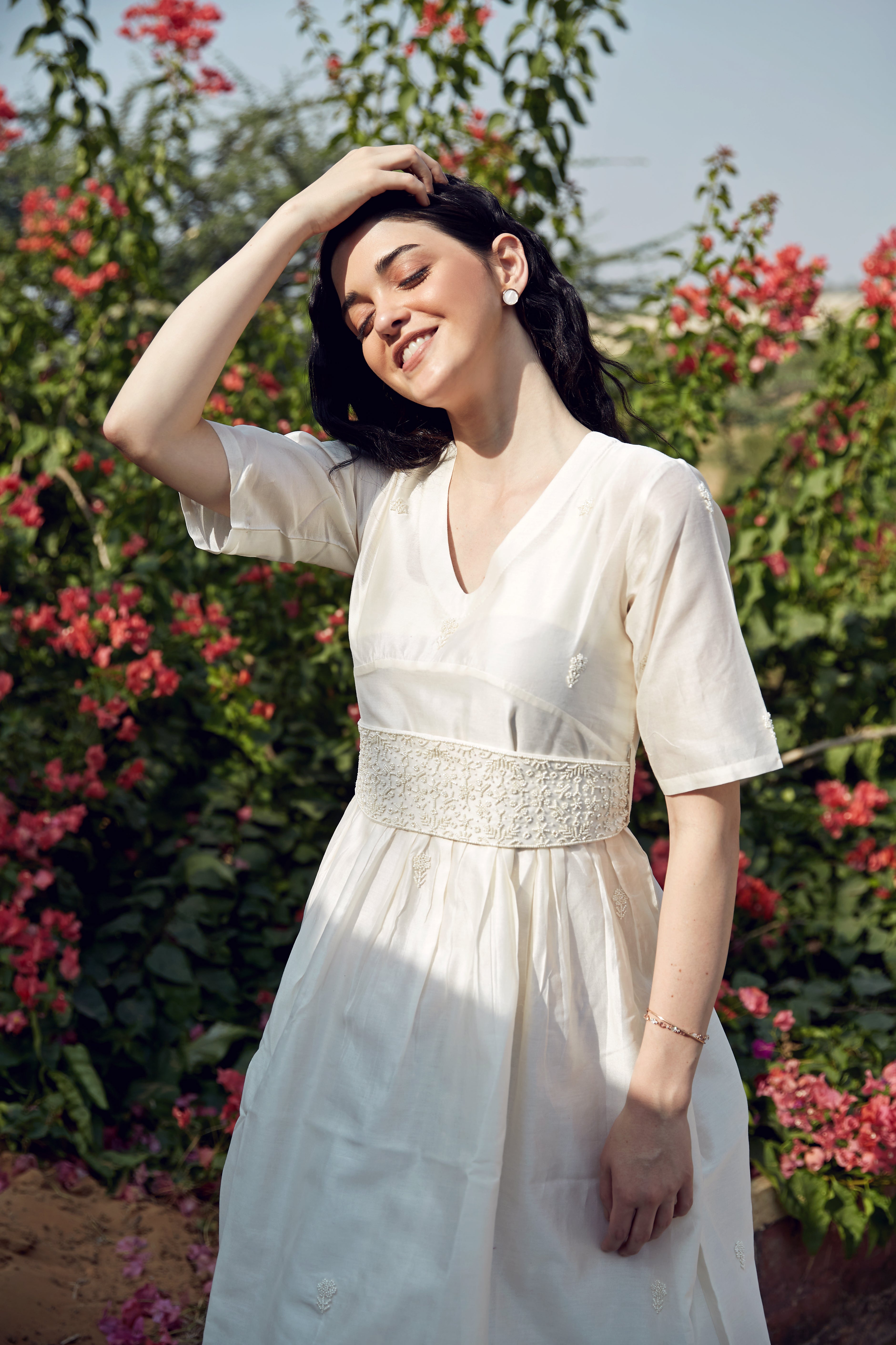 IVORY DRESS WITH PEARL WORK AND HAND...