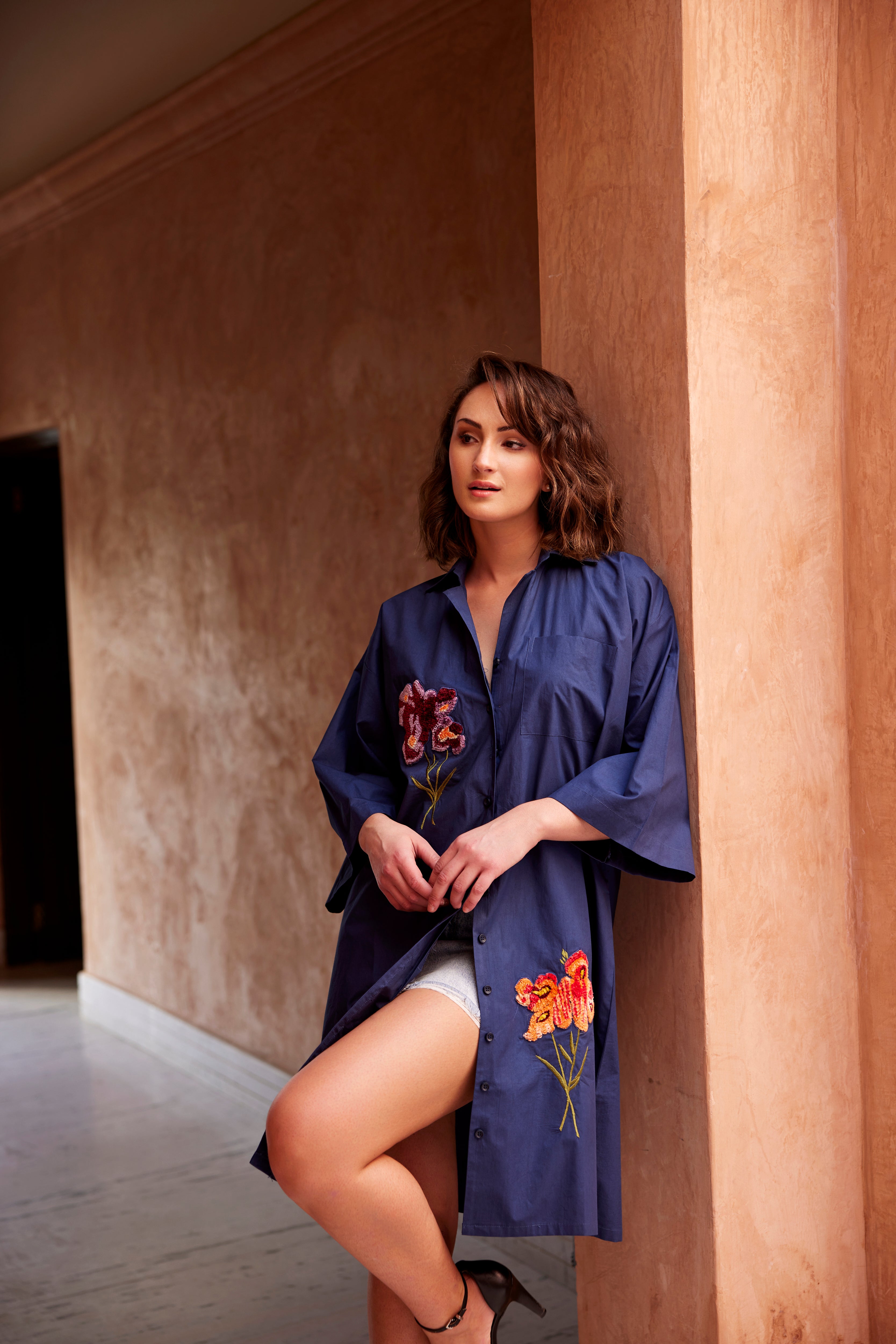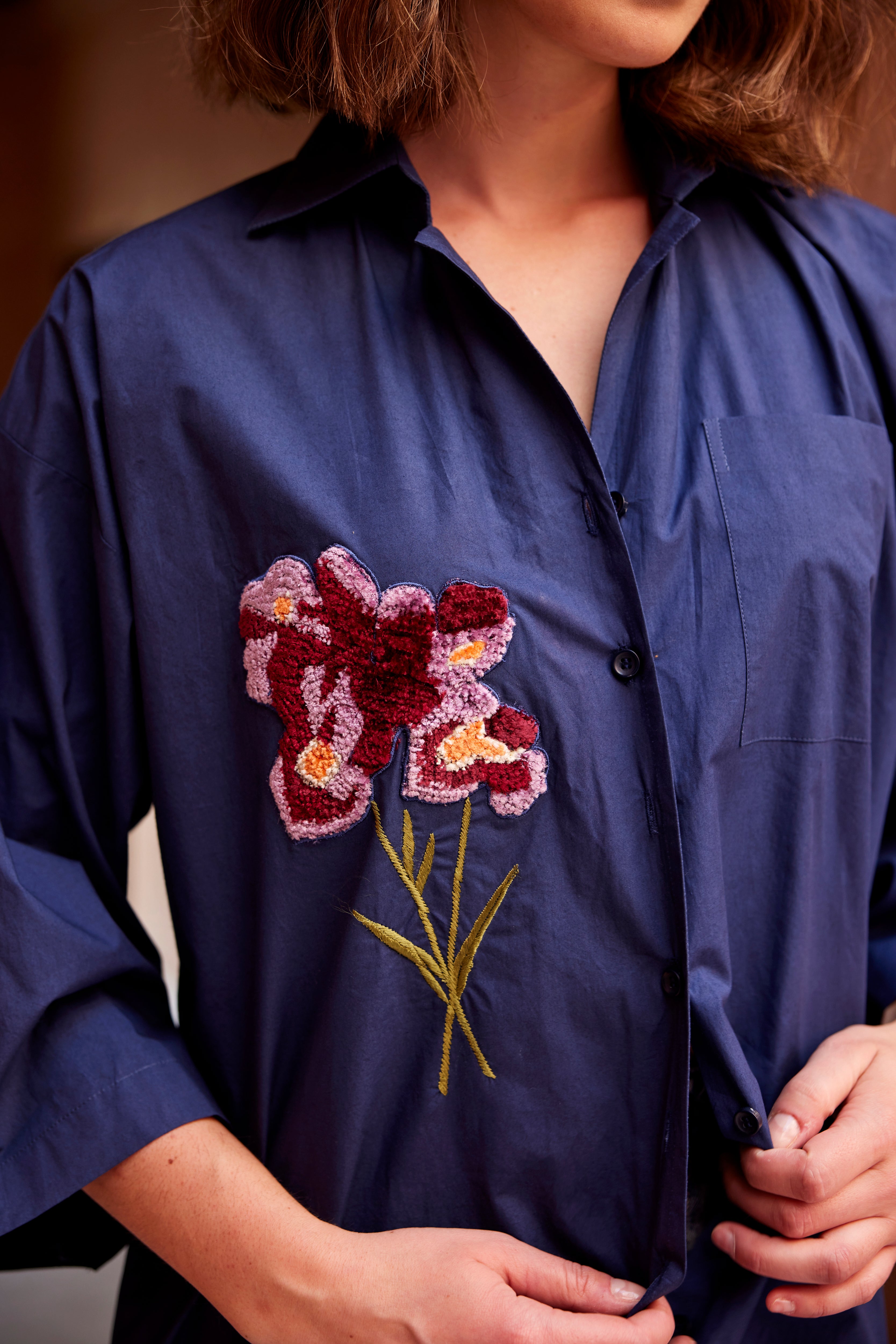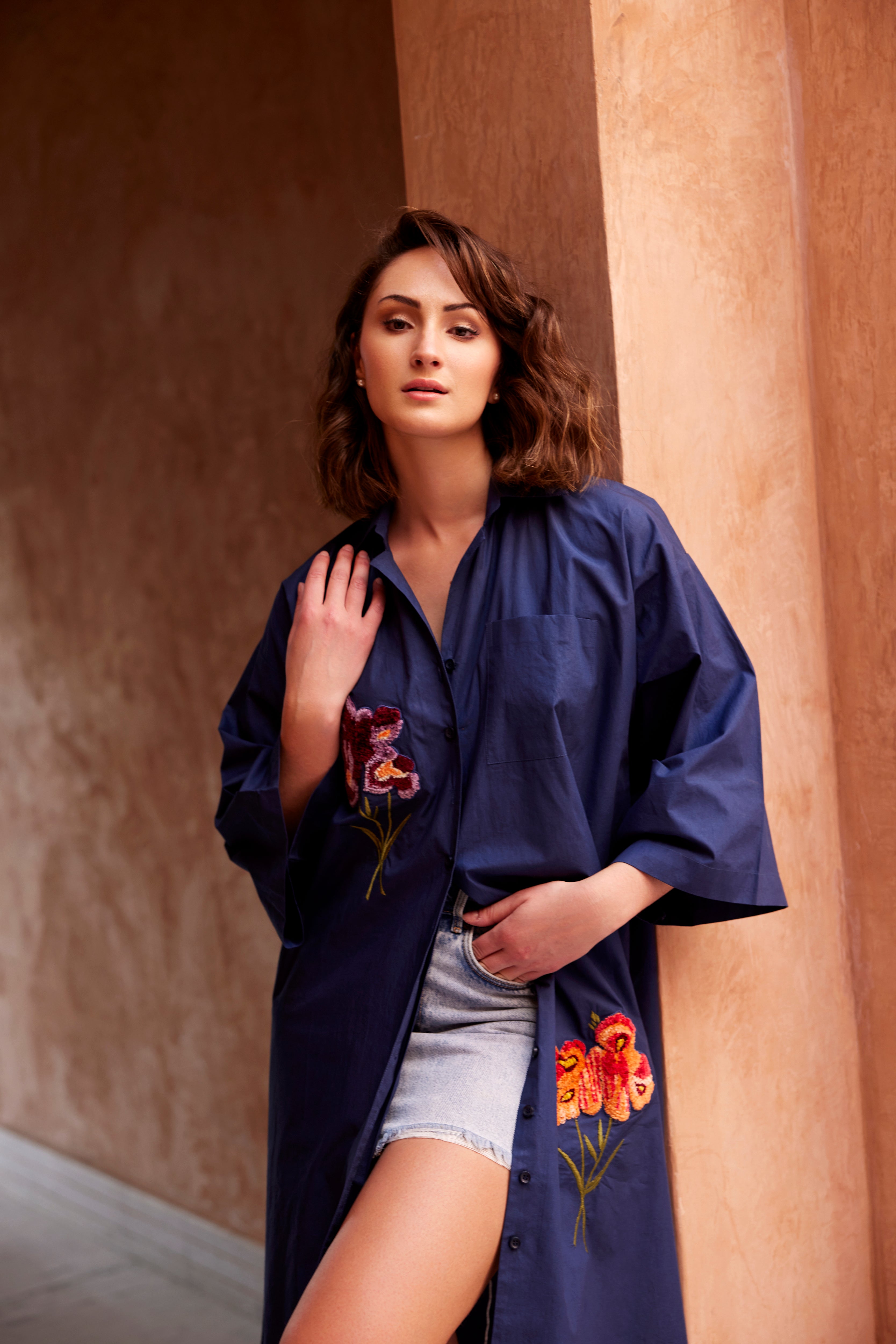 NAVY BLUE LONG SHIRT WITH MULTI COLOUR...