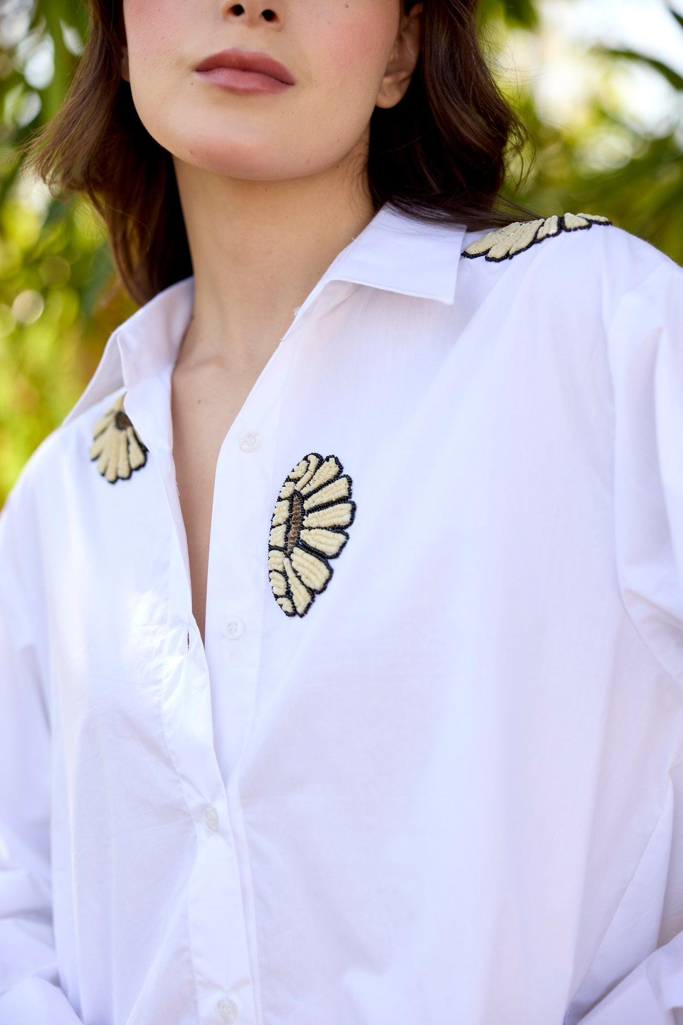WHITE SHIRT WITH IVORY OVAL SEQUIN PATCH