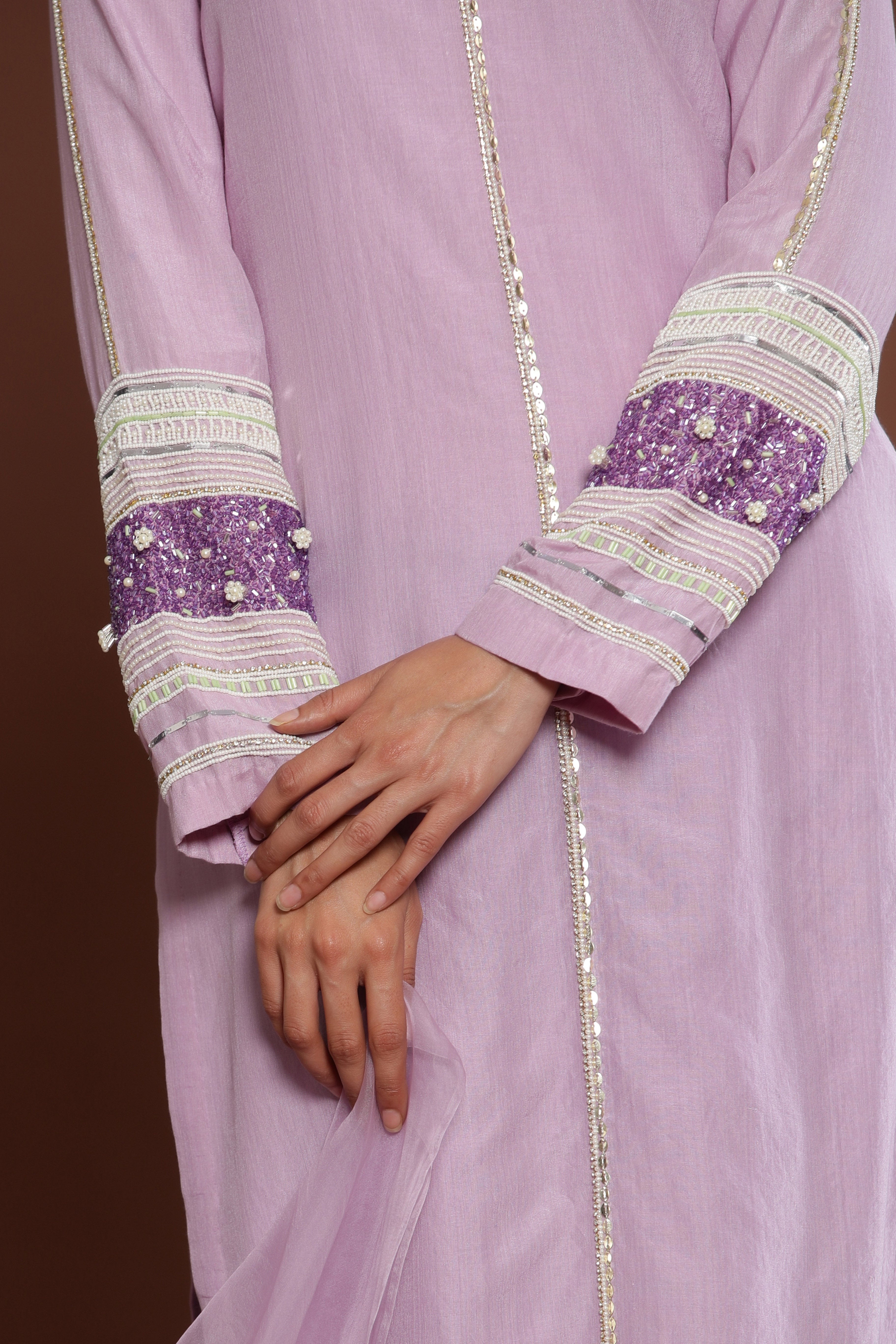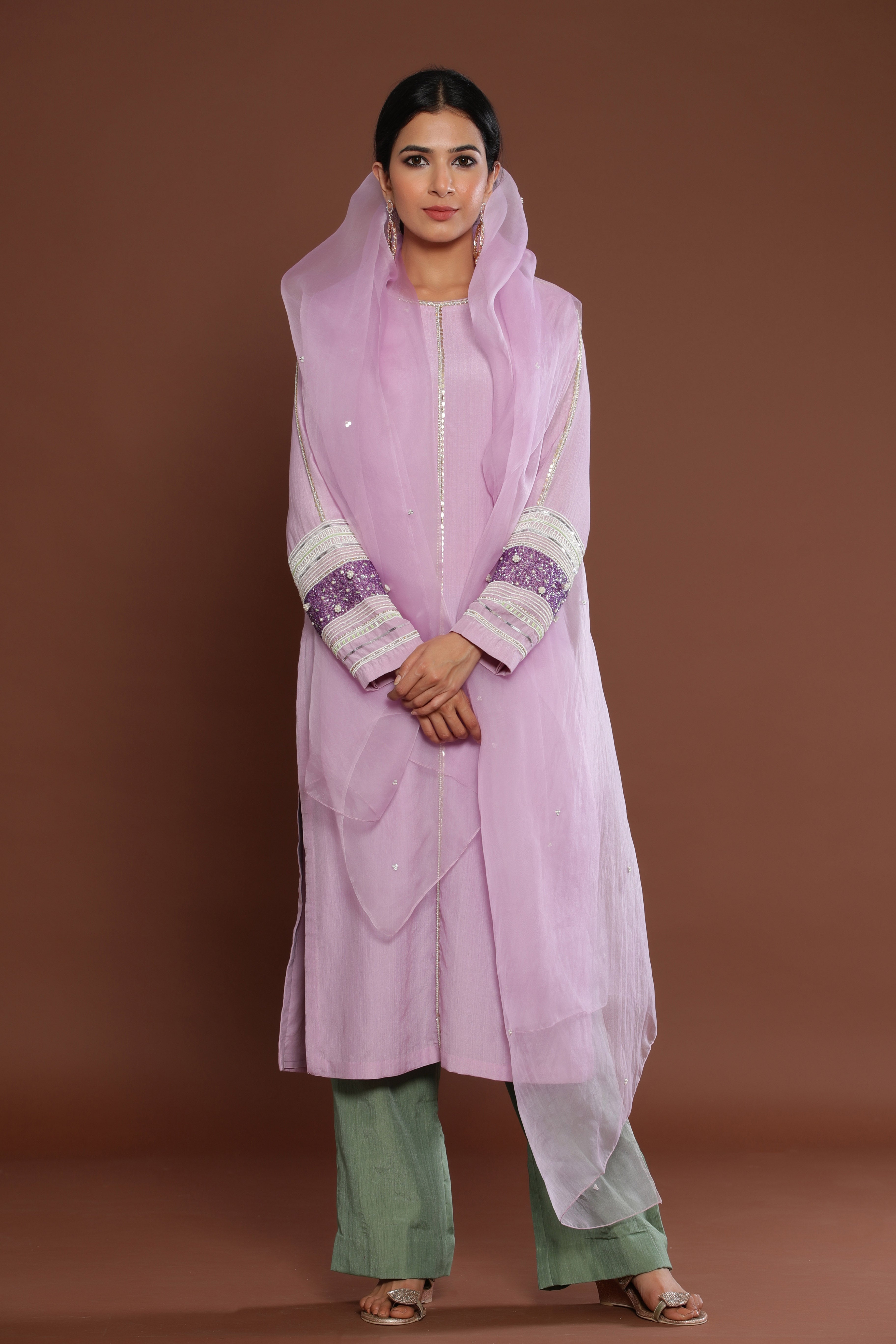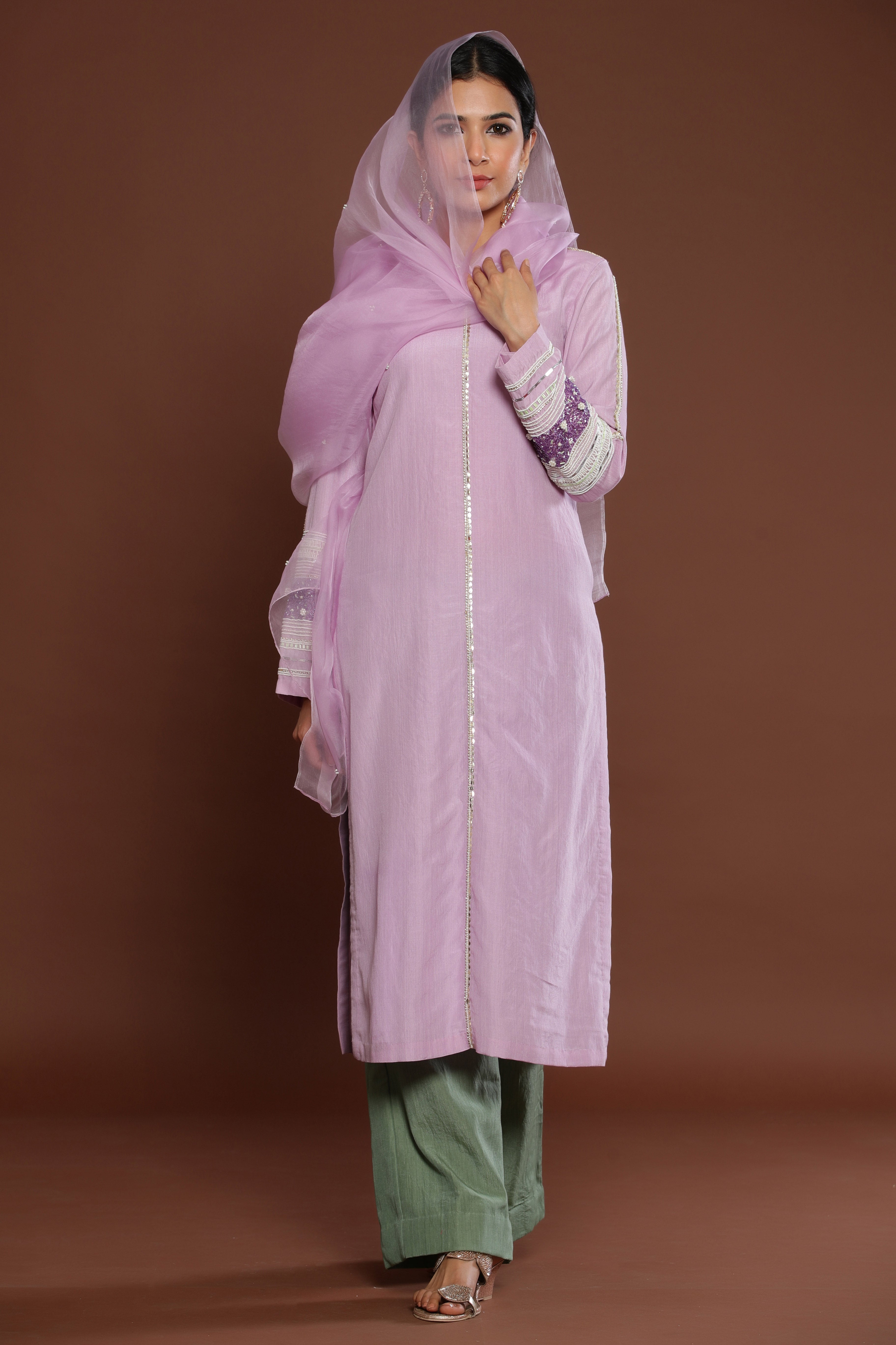 LONG STRAIGHT KURTA WITH EMBELLISHED SLEEVES AND...