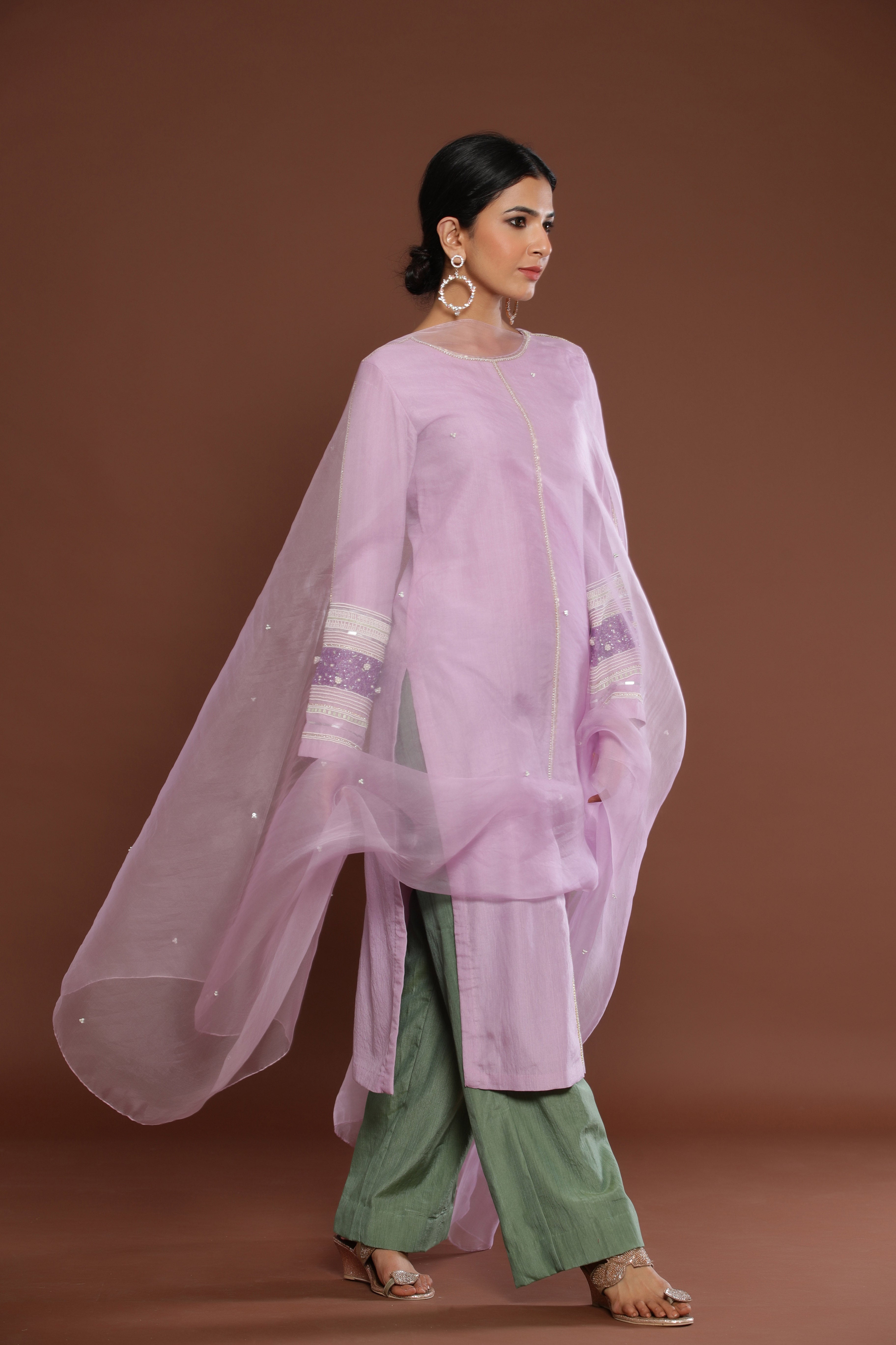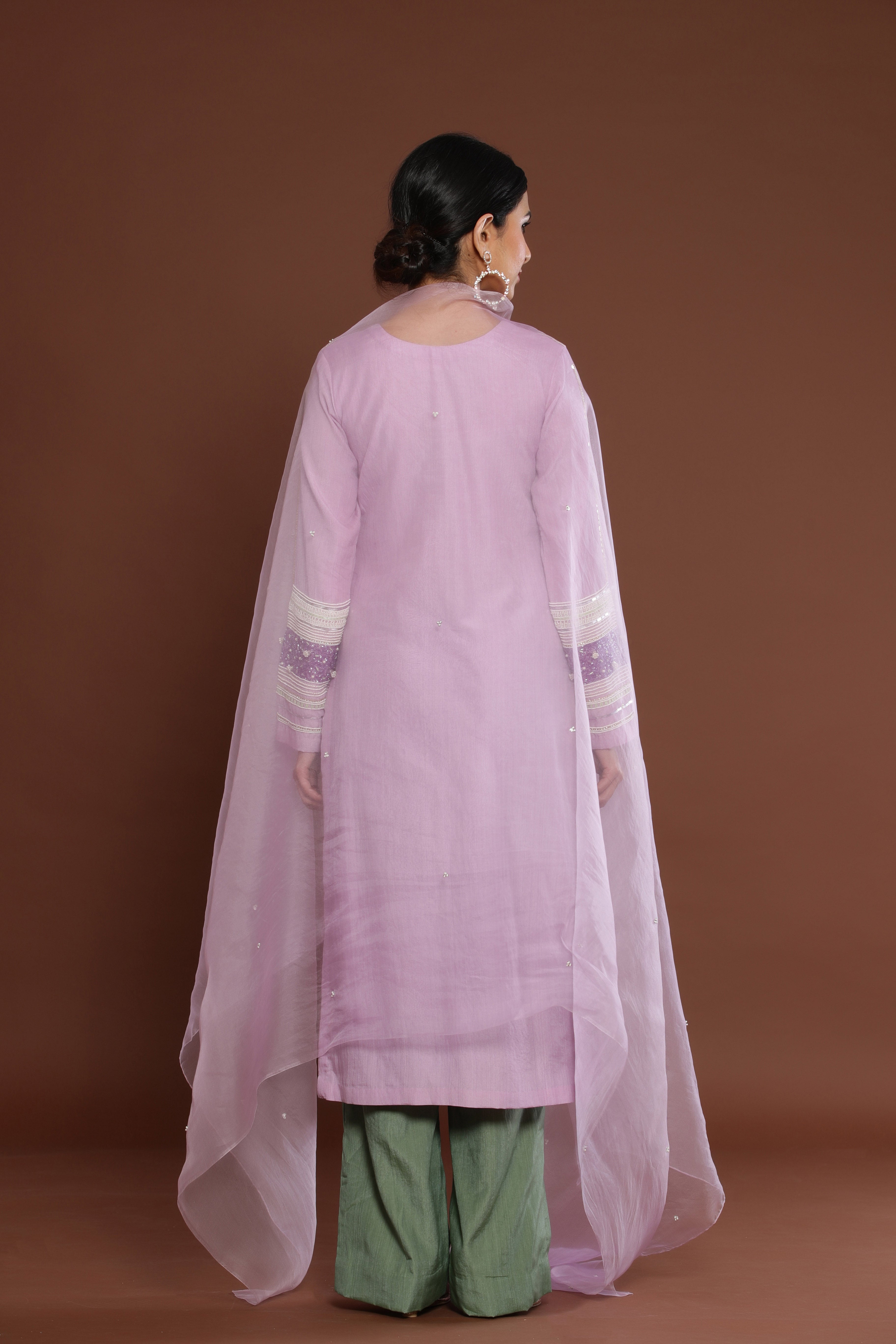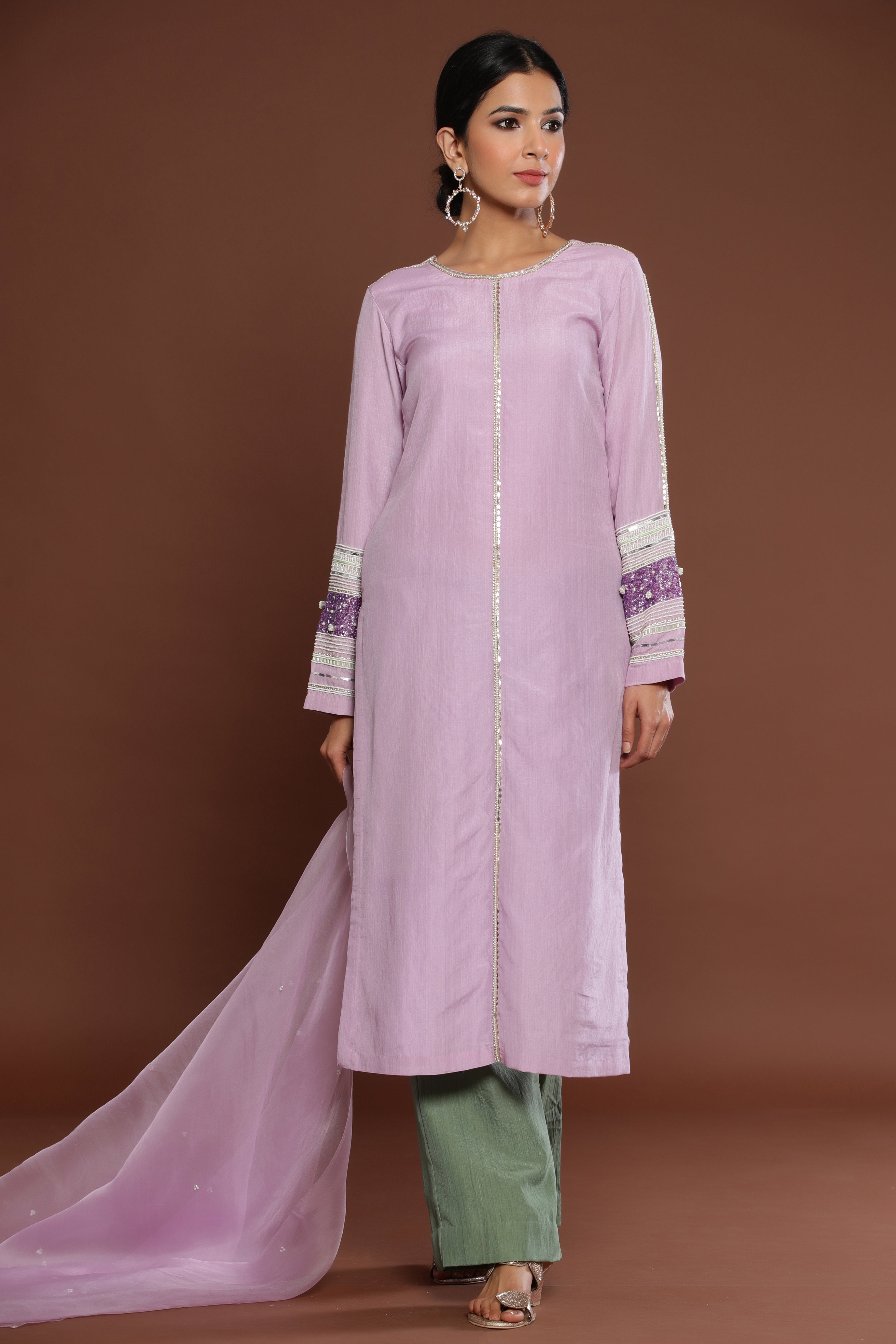 LONG STRAIGHT KURTA WITH EMBELLISHED SLEEVES AND...